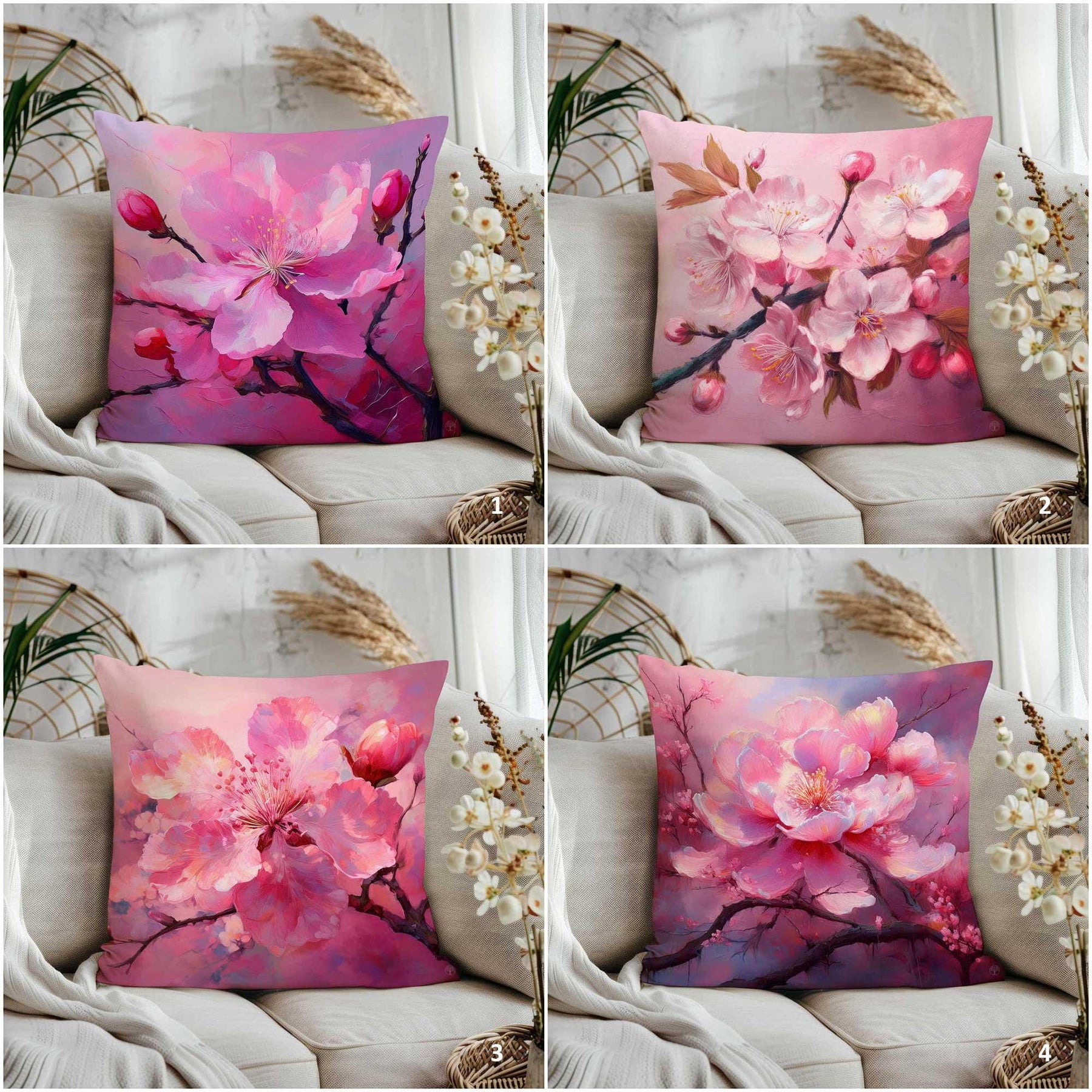 Cherry Blossom Cushion Cover|Pink Floral Porch Pillow Cover|Summer Trend Throw Pillowcase|Pastel Botanical Home Decor|Decorative Pillowtop