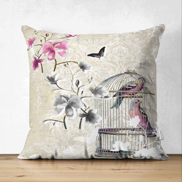 These elegant stylish and high quality suede square floral pillow covers with birds;