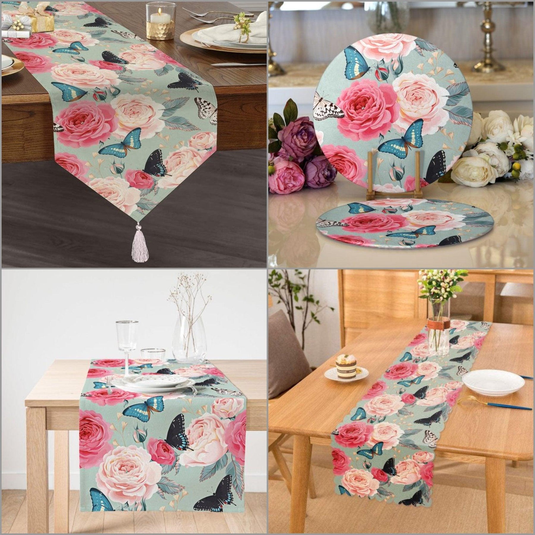 Imagine these elegant "Floral Butterfly Table Runners" and "Set of 2 Floral Butterfly Placemats" on your table to welcome your family and friends!