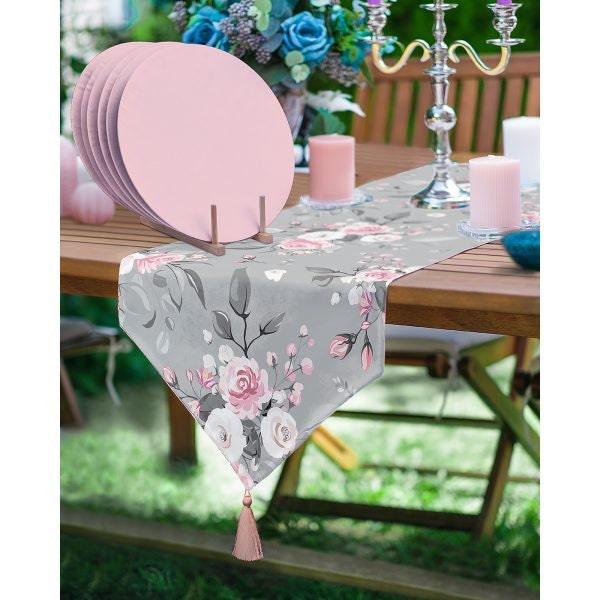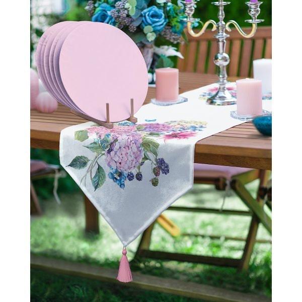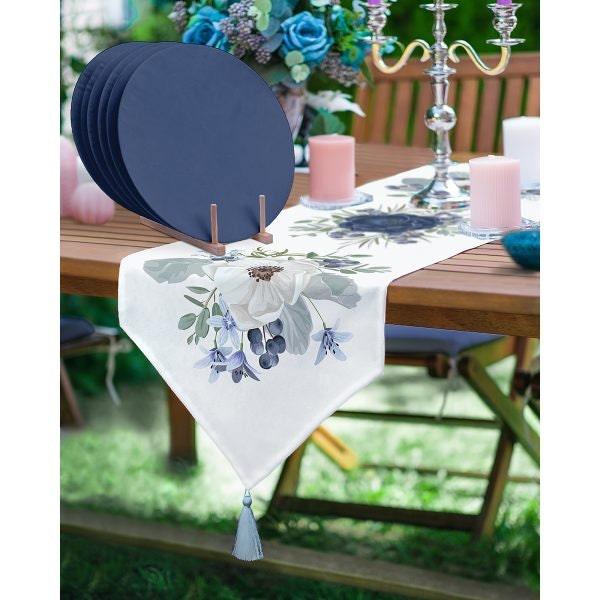 Floral Table Runner & Placemat Set|Summer Tabletop|Set of 6 Supla Table Mat|Triangle Runner with Flowers and American Service Underplate
