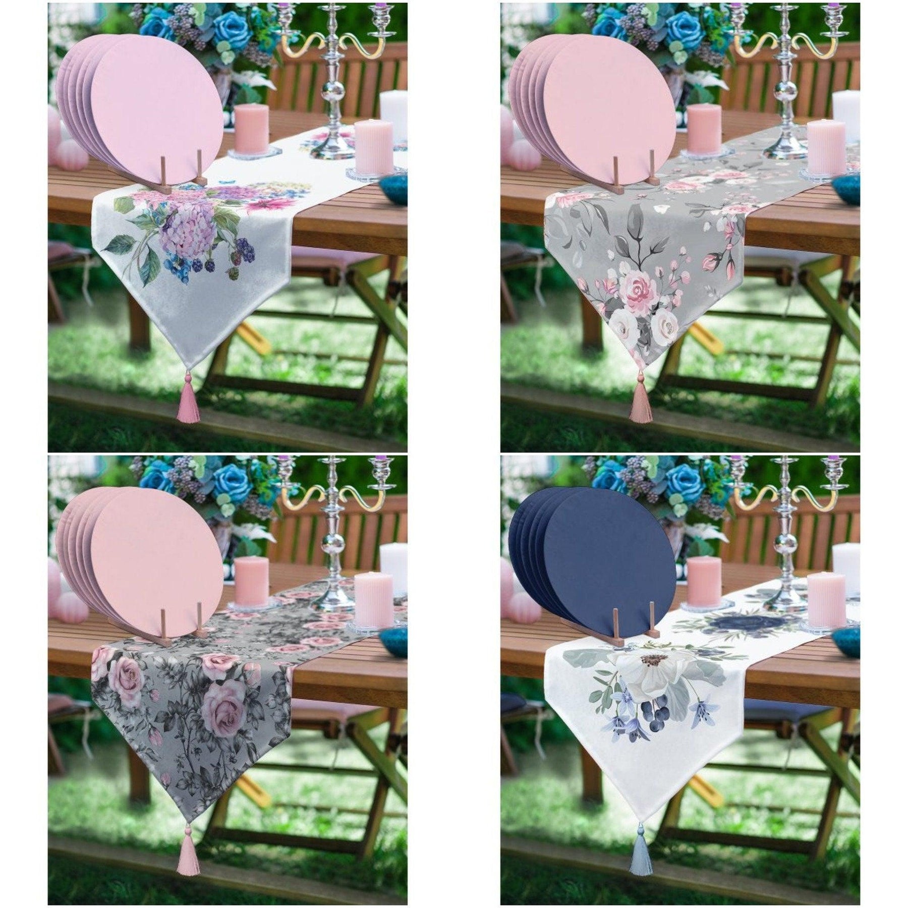 Imagine these elegant "Floral Table Runners" and "Set of 6 Matching Color Placemats" on your table to welcome your family and friends!