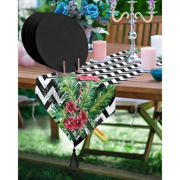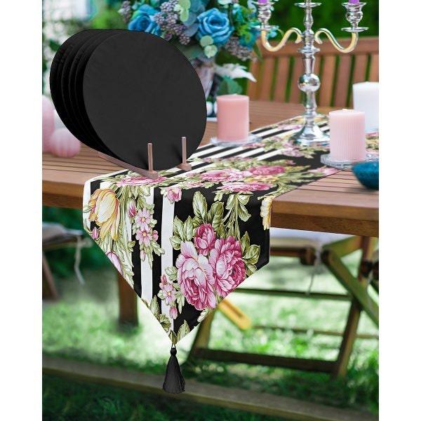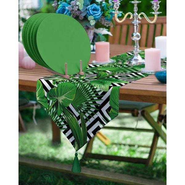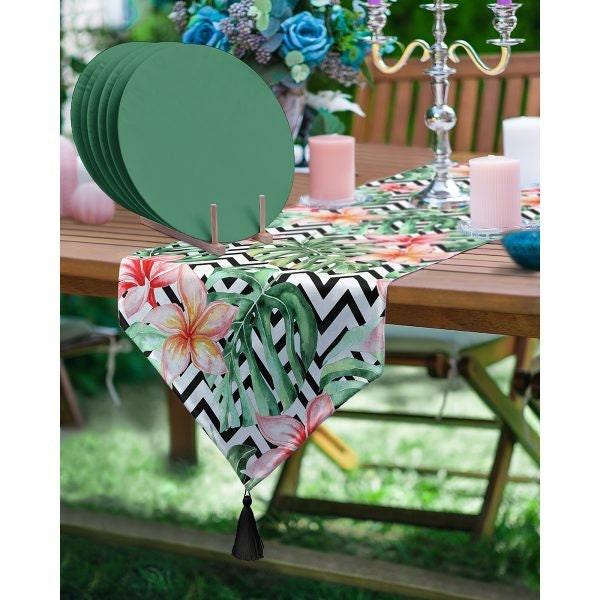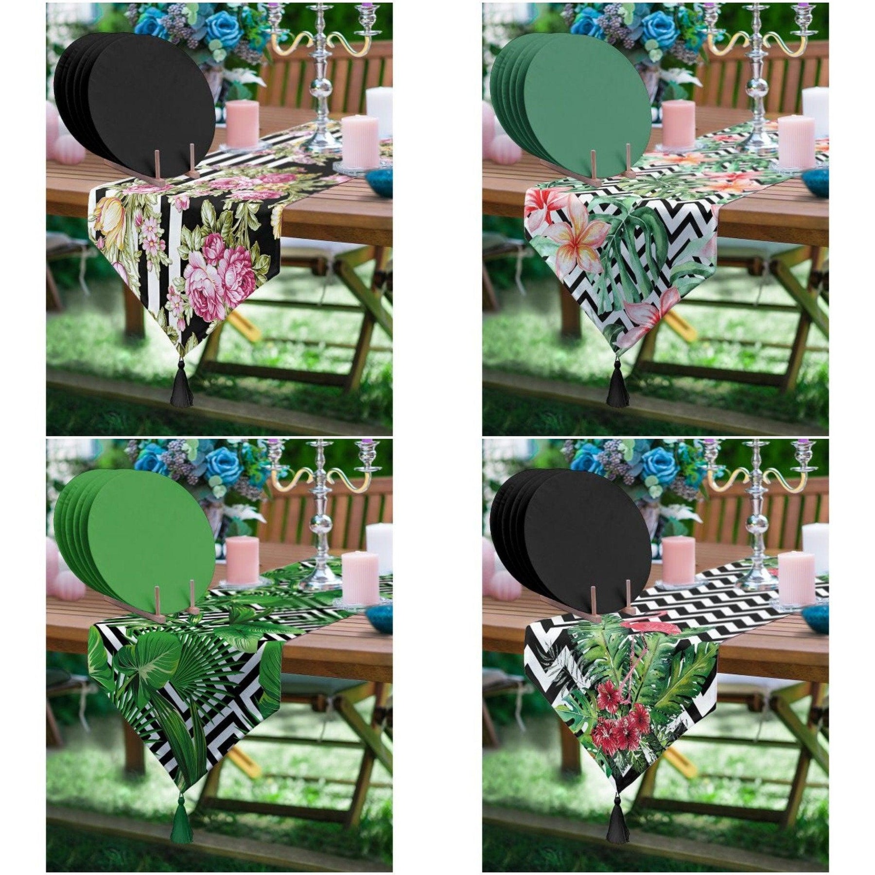 Floral Table Runner & Placemat Set|Summer Tabletop|Set of 6 Supla Table Mat|Flowers with Green Leaves Runner and American Service Underplate