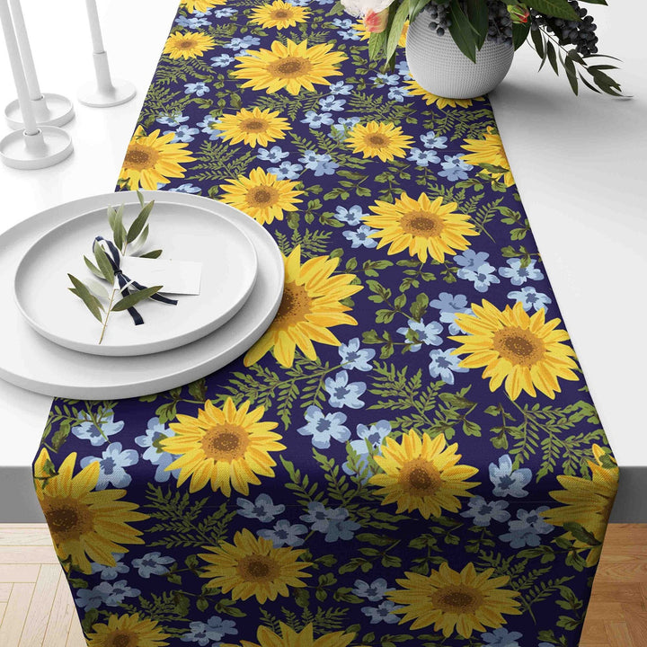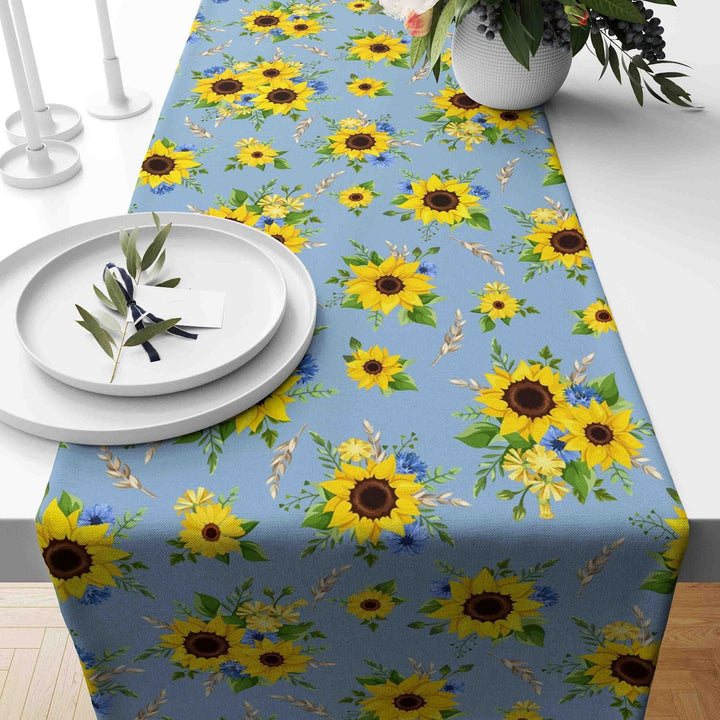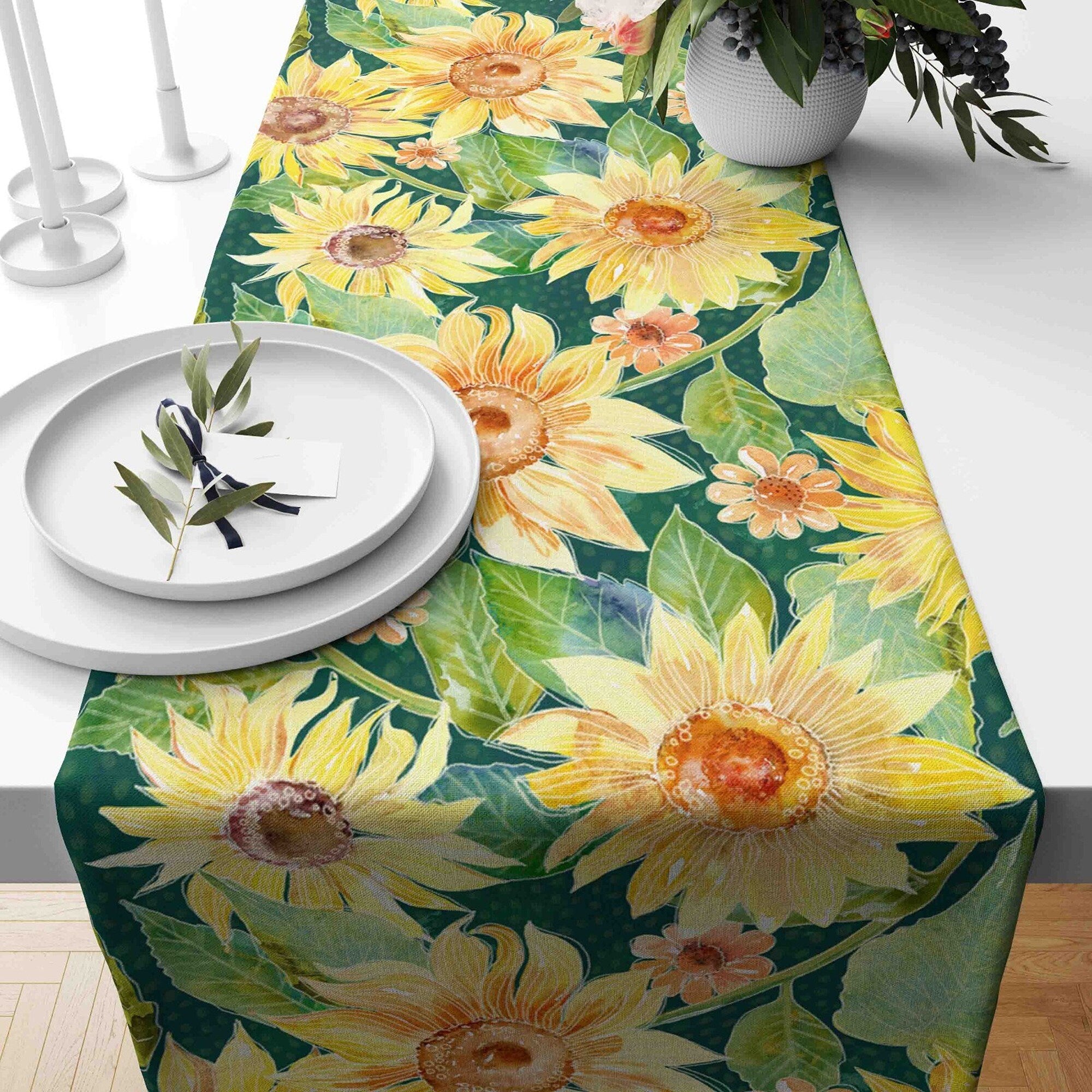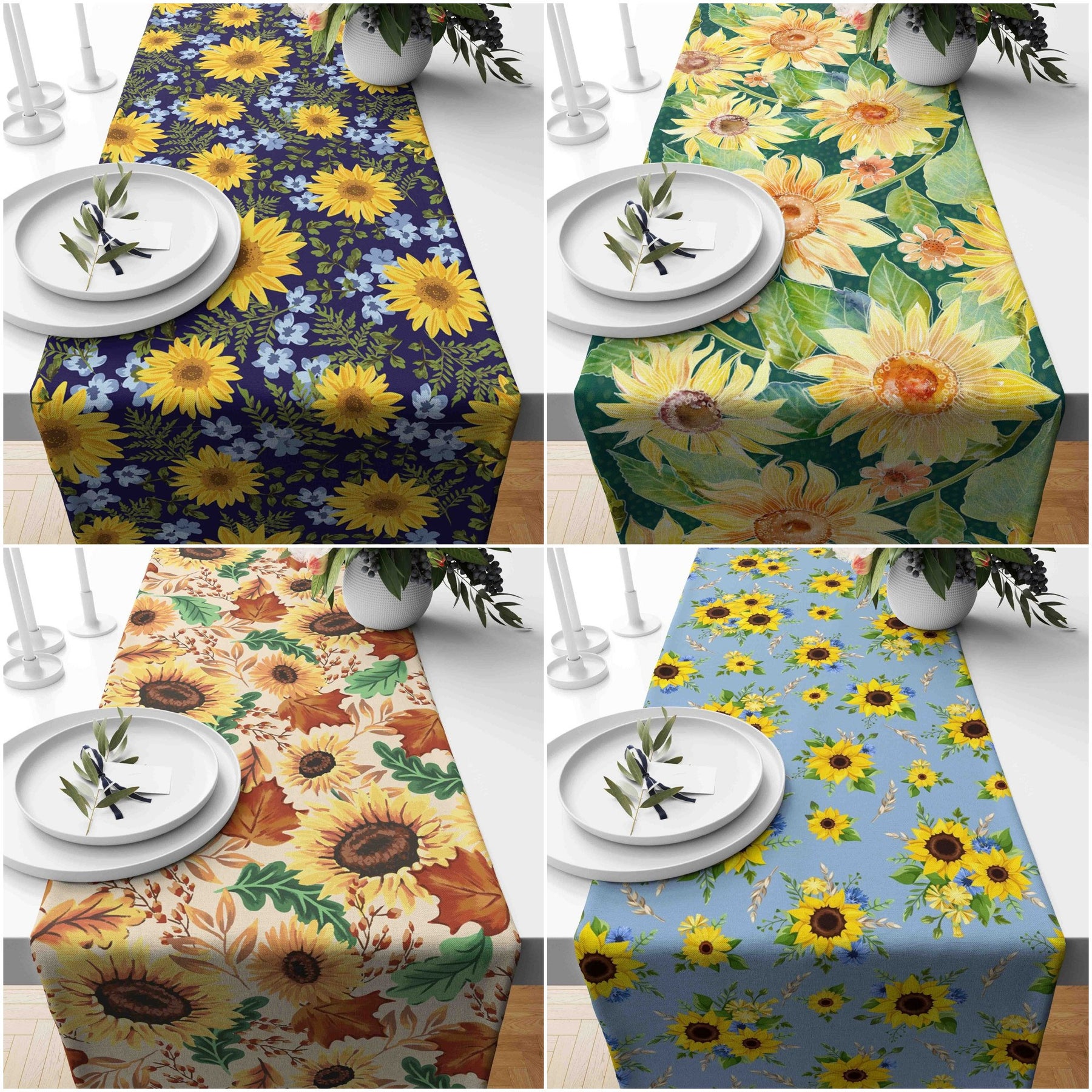 This high quality, rustic farmhouse style floral/summer trend table decor with Sunflower print;