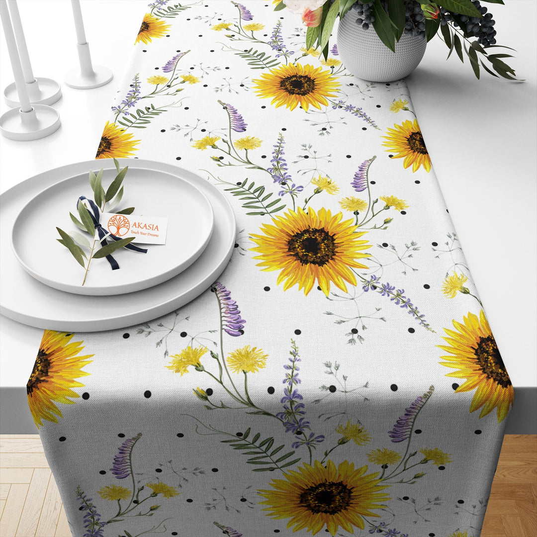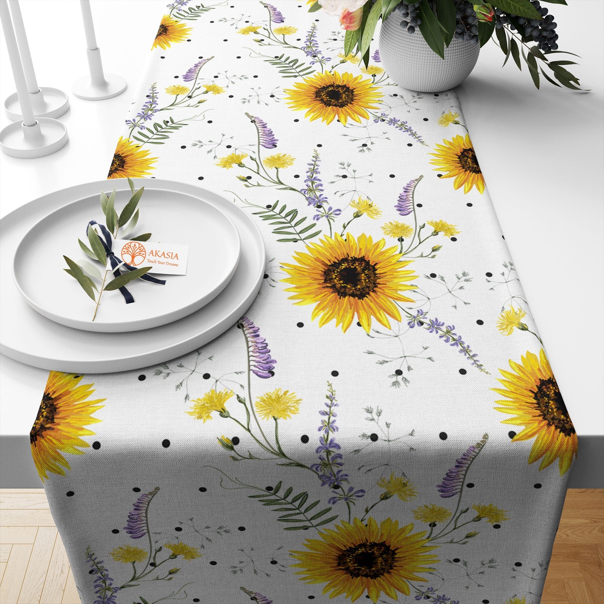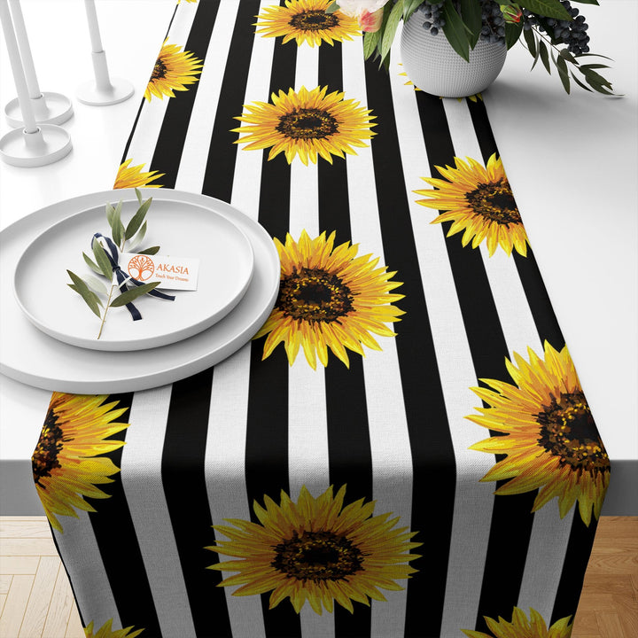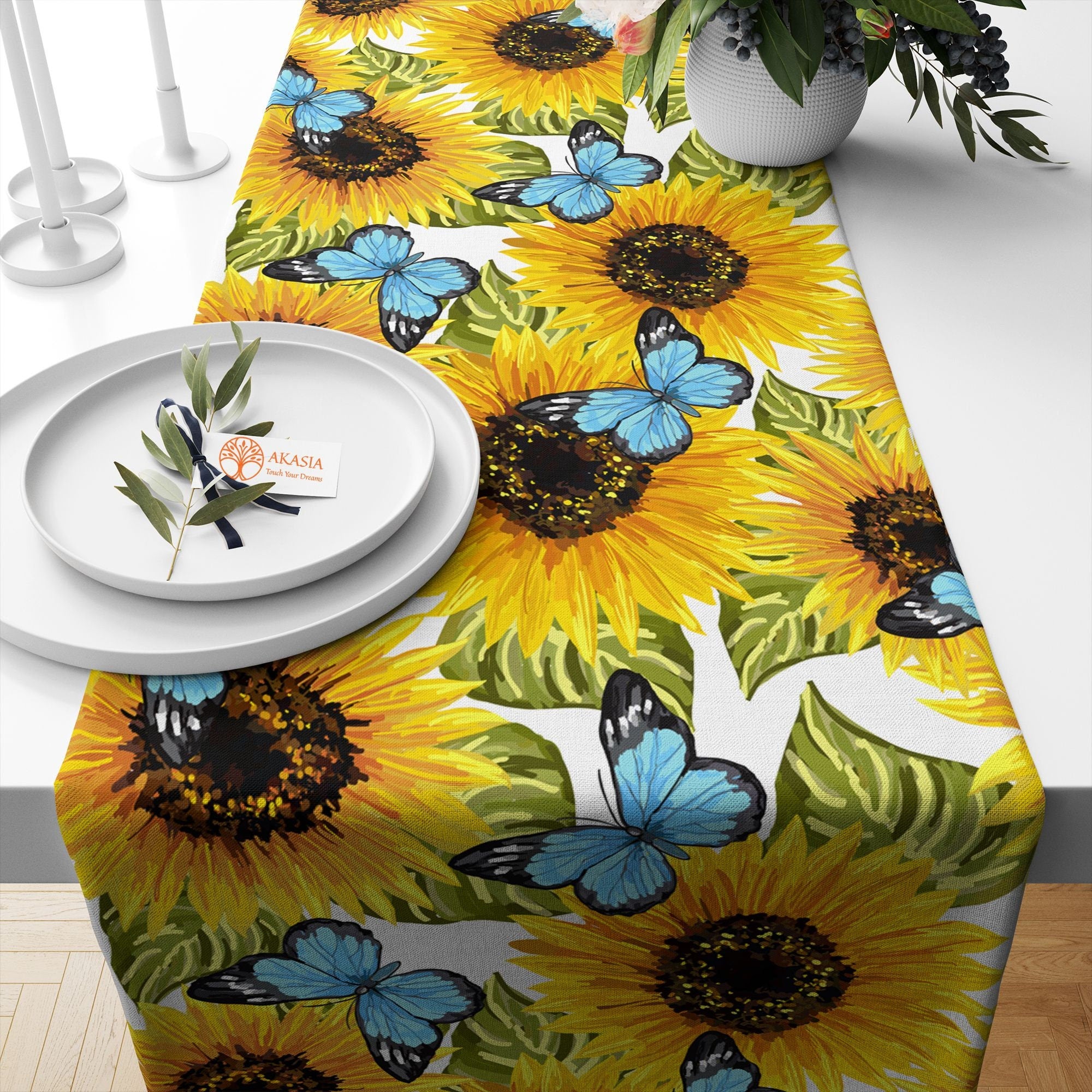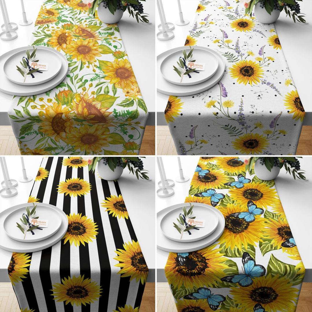 This high quality, rustic farmhouse style table decor with sunflower and butterfly prints and striped design;