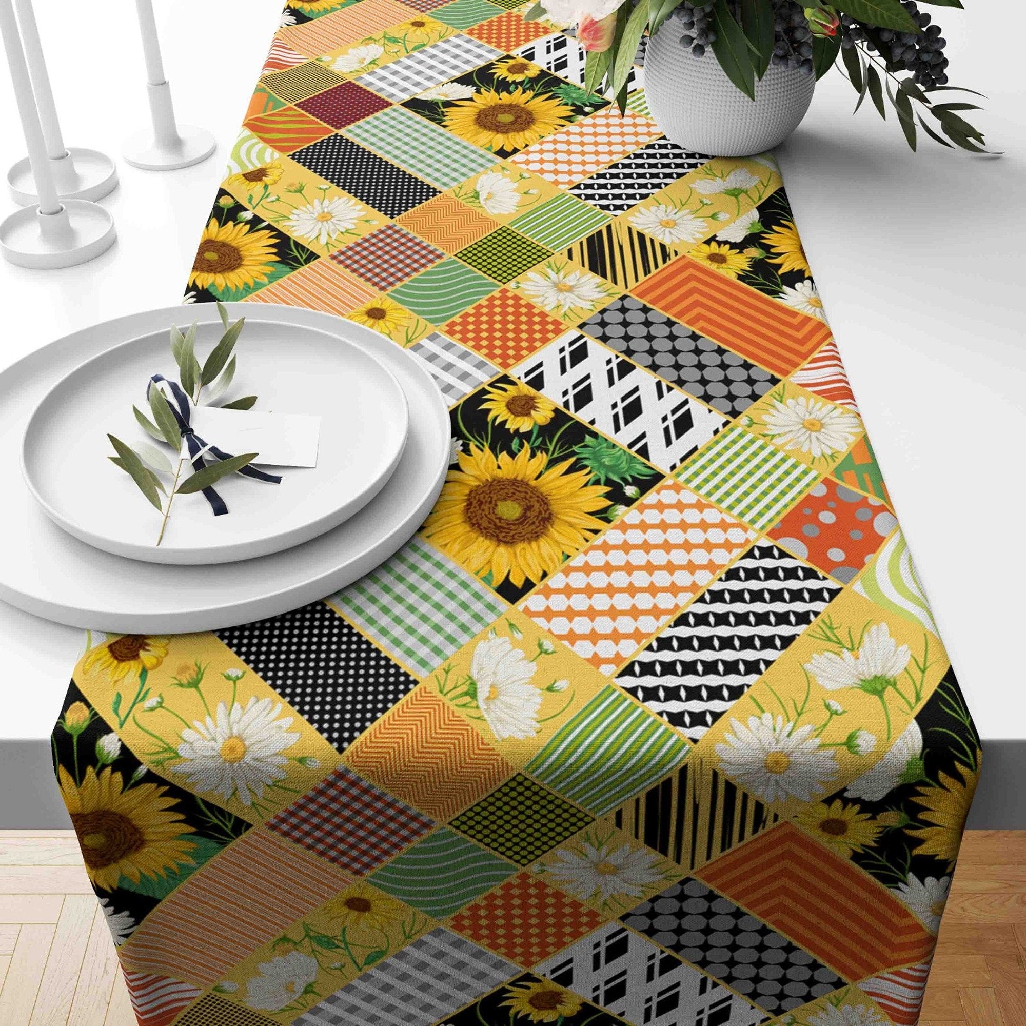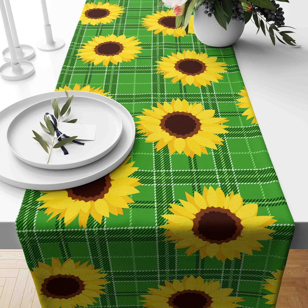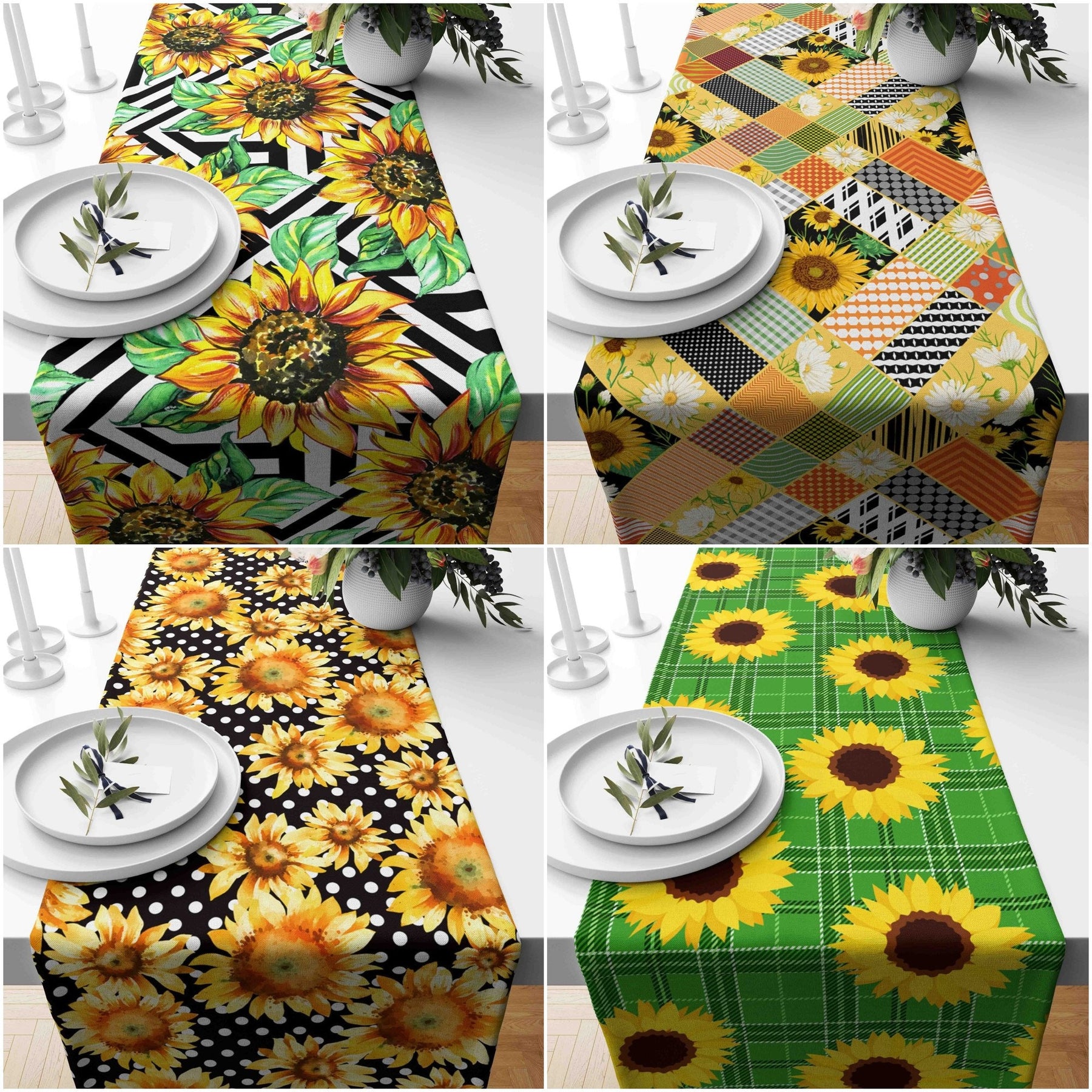 This high quality, rustic farmhouse style floral/summer trend table decor with Sunflower print;