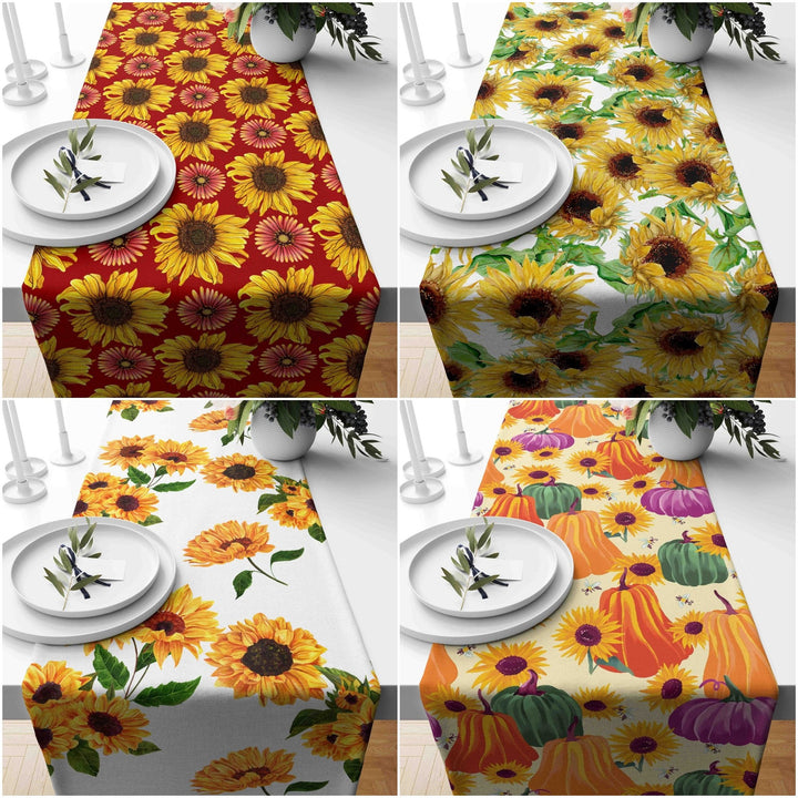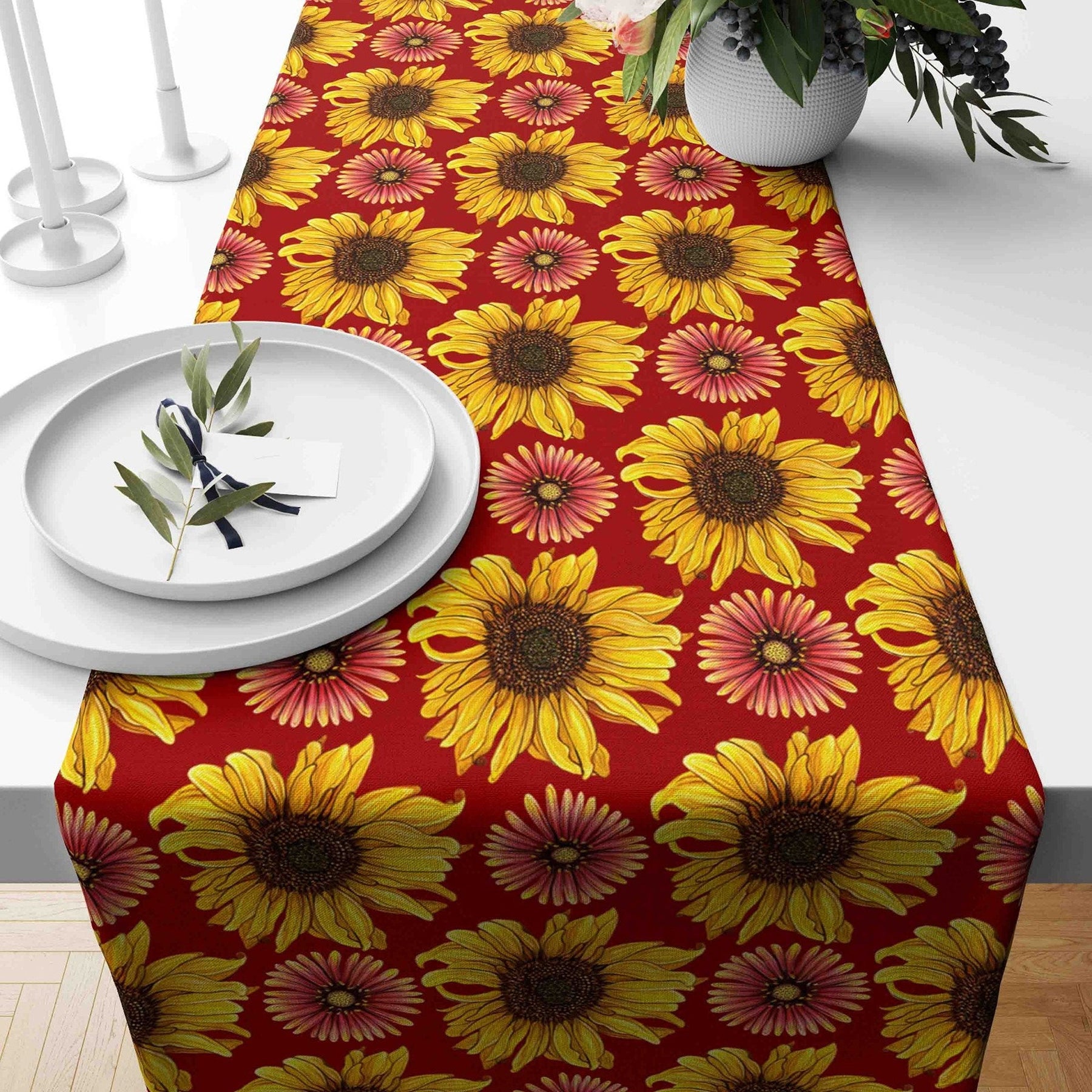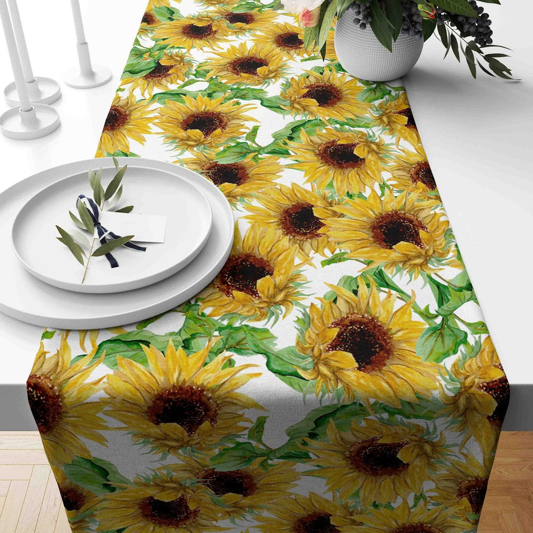 This high quality, rustic farmhouse style floral/summer trend table decor with Sunflower print;