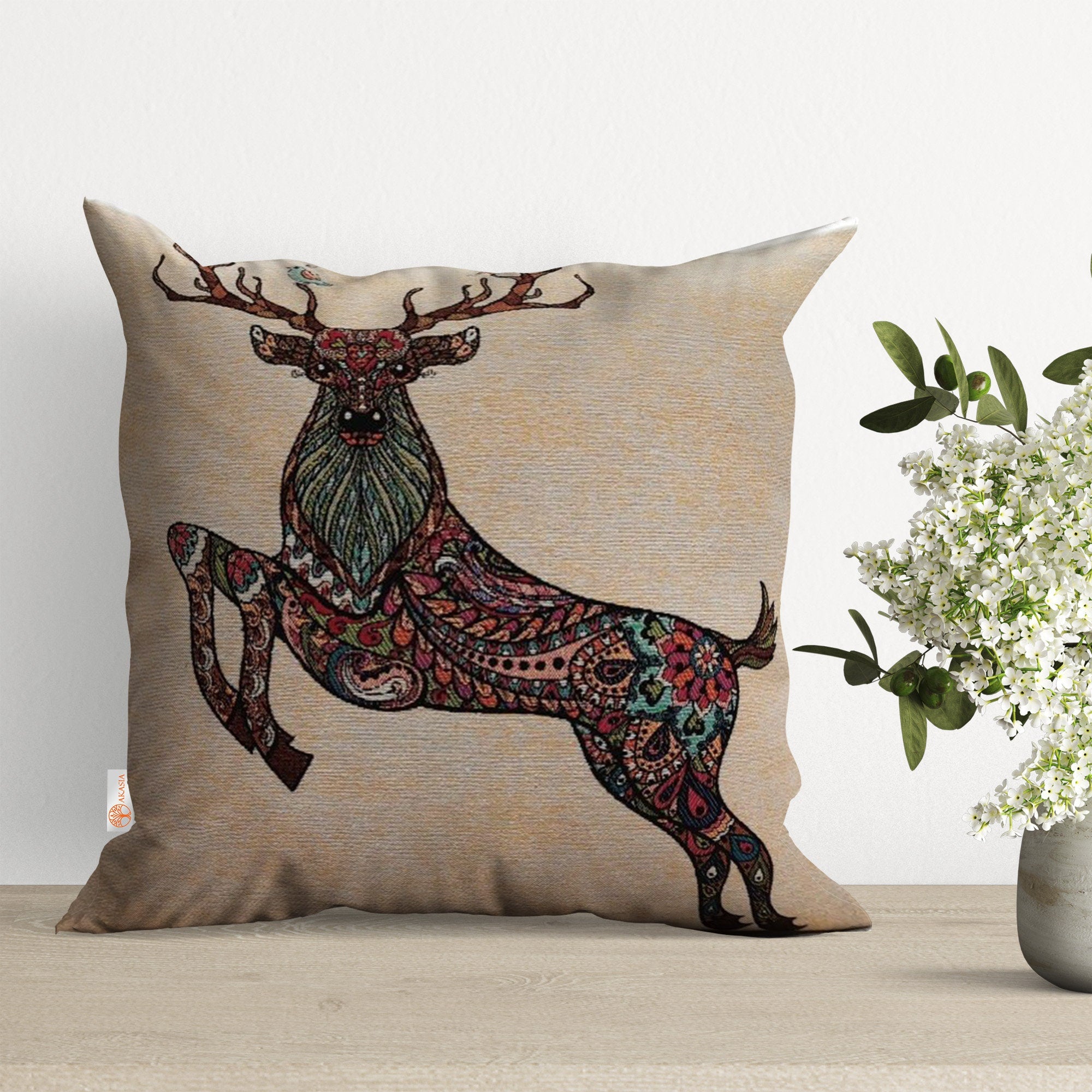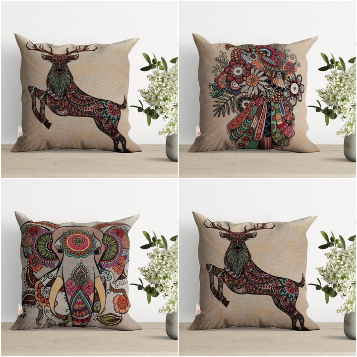 These elegant square throw pillow covers with Deer, Elephant and Bird prints;