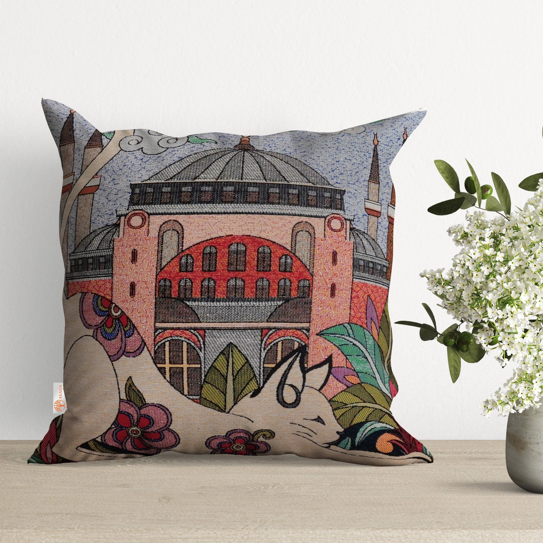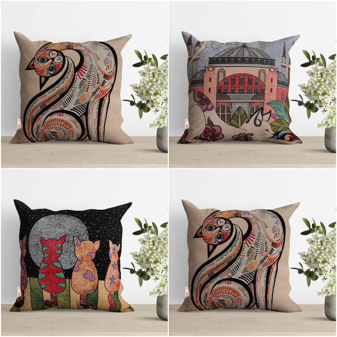 These elegant square throw/lumbar pillow covers with cute cats Saint Sophia in İstanbul/Turkey;