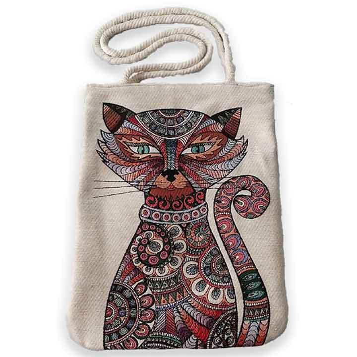 Cute Cats Tapestry Shoulder Bag|Fabric Handmade Bag|Woven Shoulder Bag|Aztec Print Tote Bag|Carpet Bag|Gobelin Fabric Bag|Southwest Tapestry - Akasia