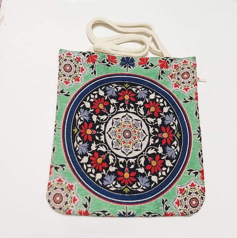 Imagine this handmade "Gobelin Tapestry Tile Pattern Shoulder Bag" on your shoulders and greeting your friends!