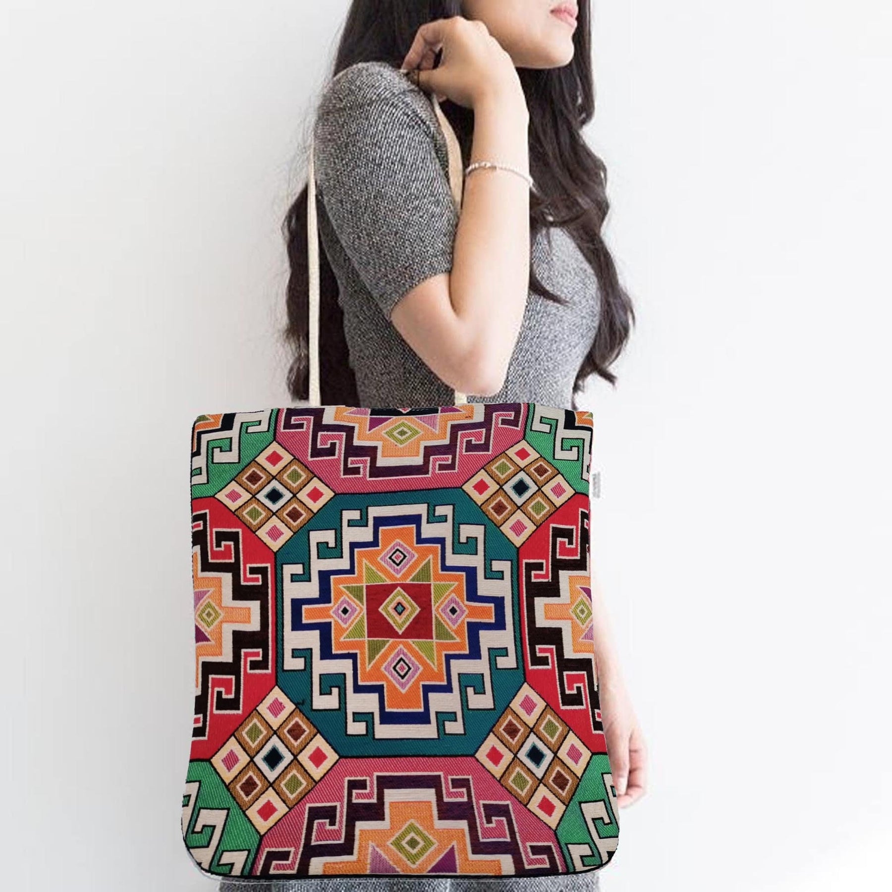 This elegant woven tapestry fabric, ethnic carpet large bag/tote bag;