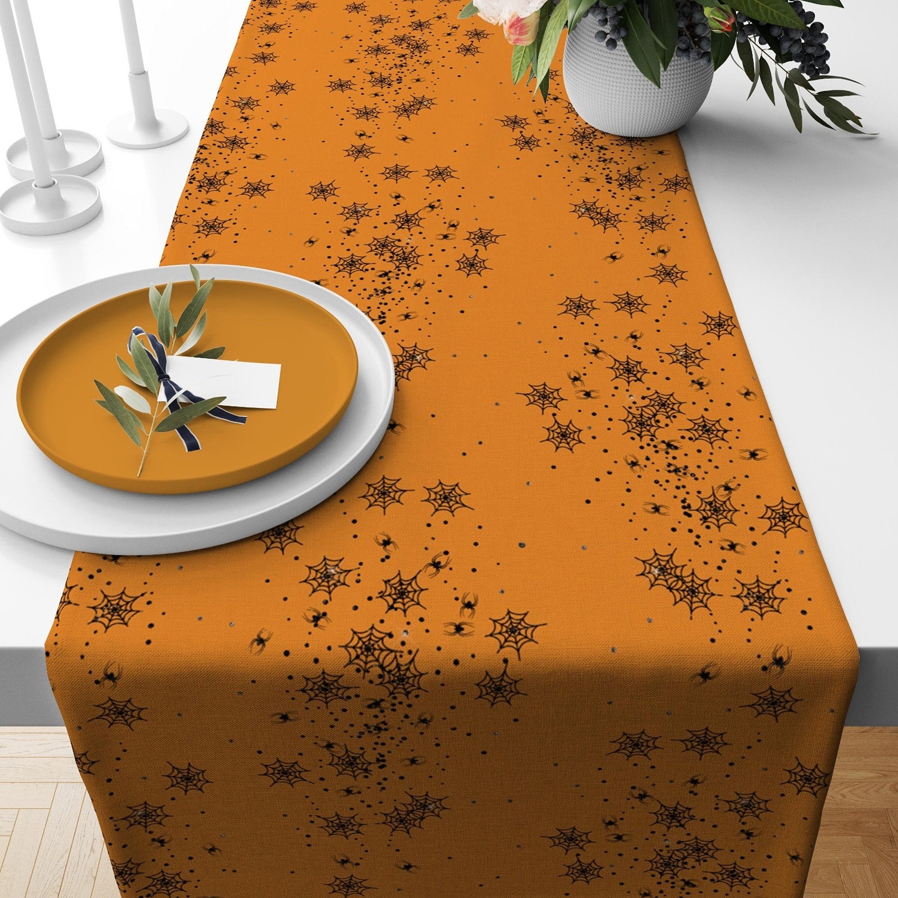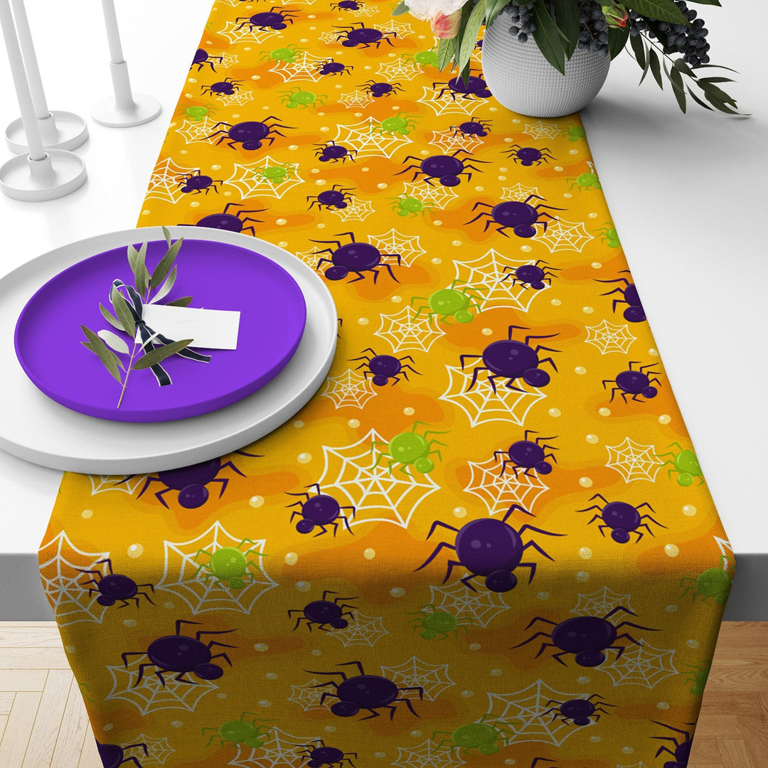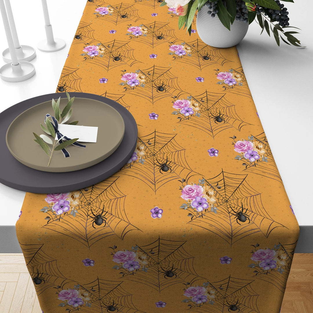 This high quality, farmhouse style rectangle table decor with spider and spider web;
