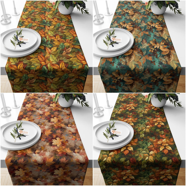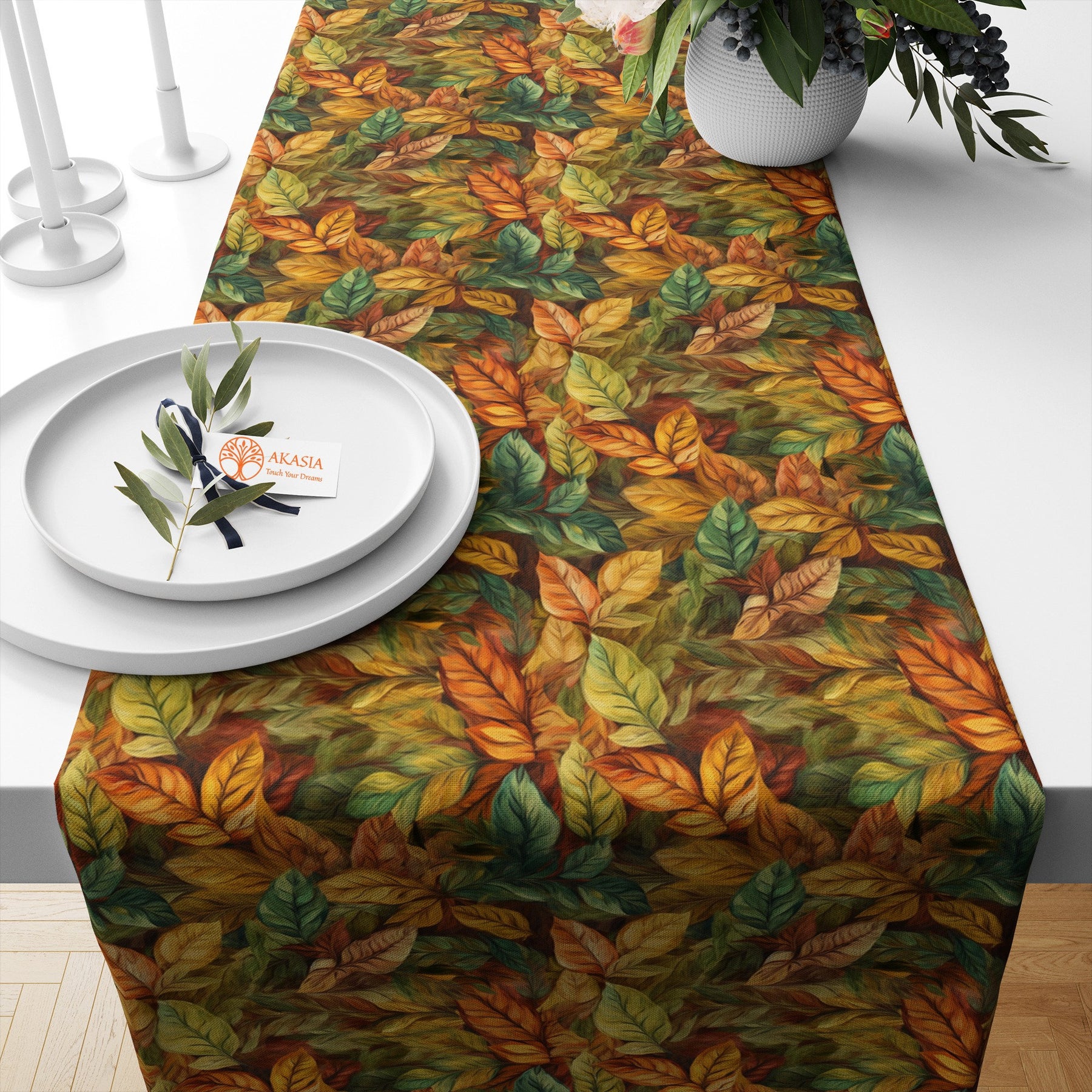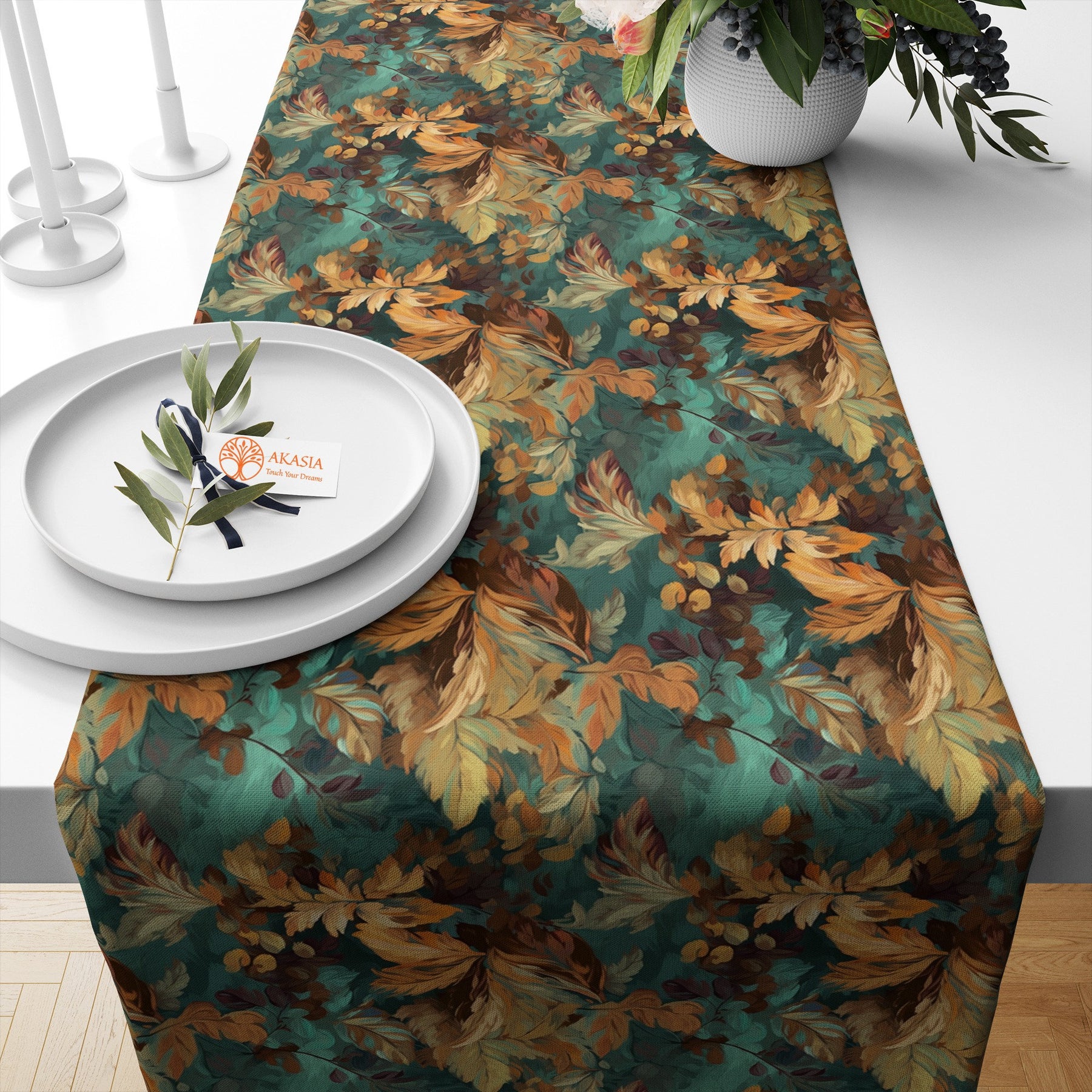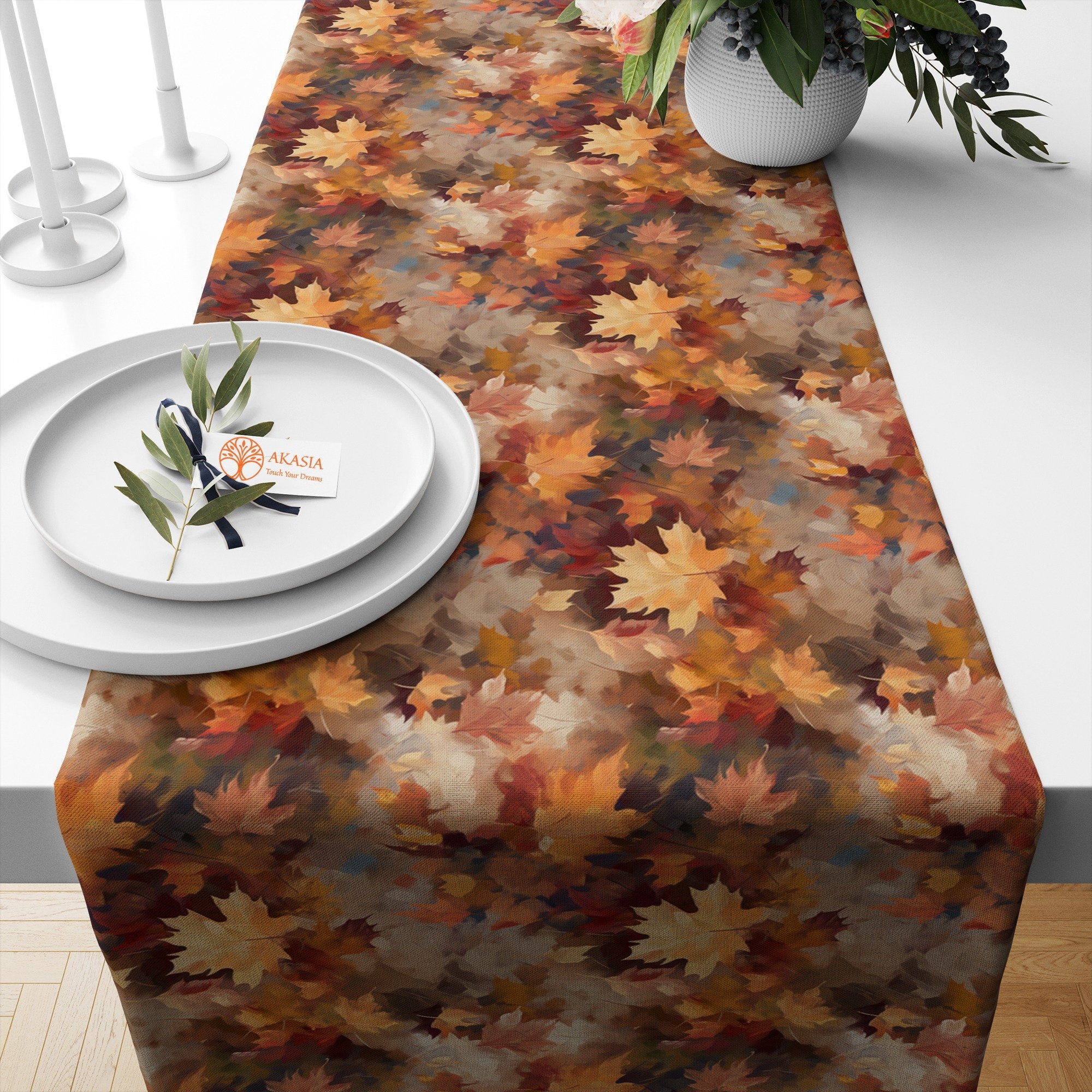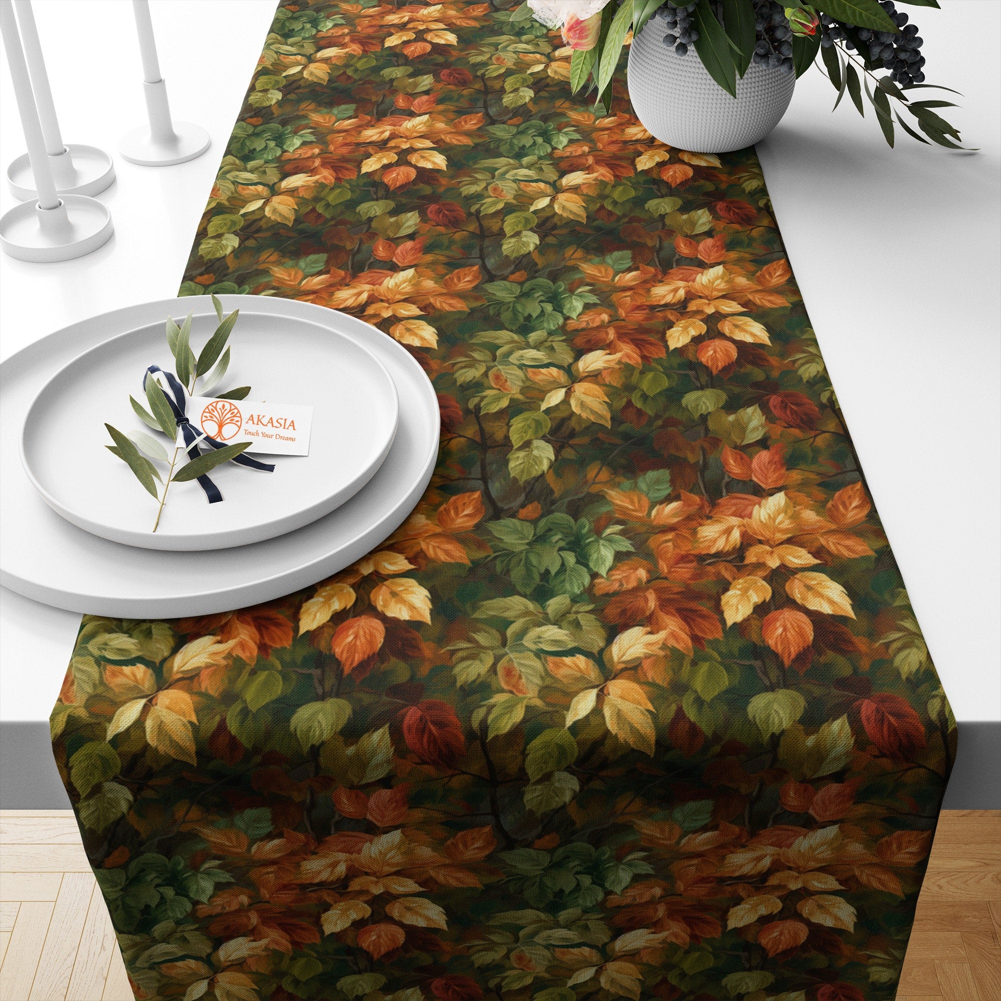 This high quality, rustic farmhouse style table decor with fall/autumn leaf print;