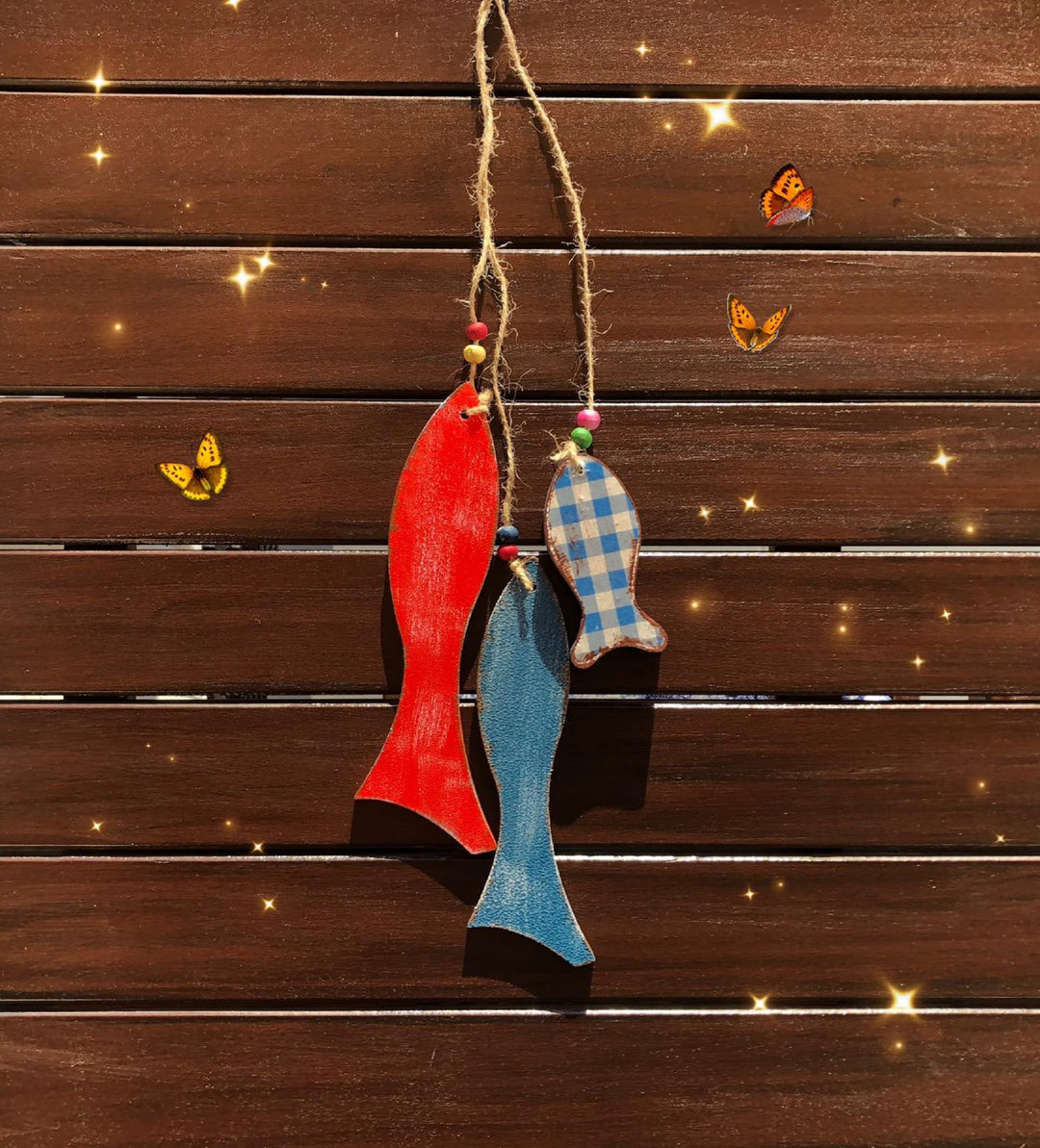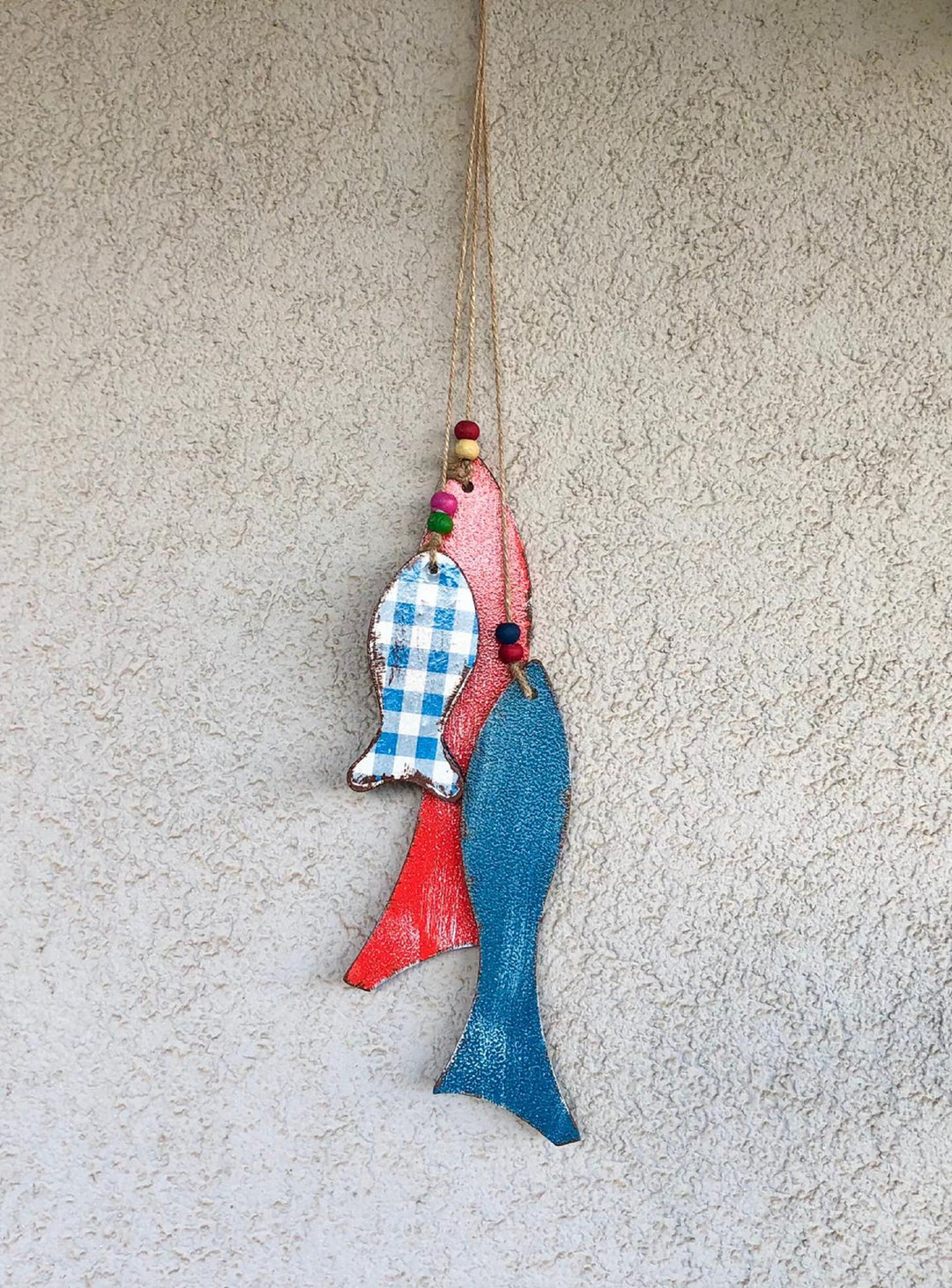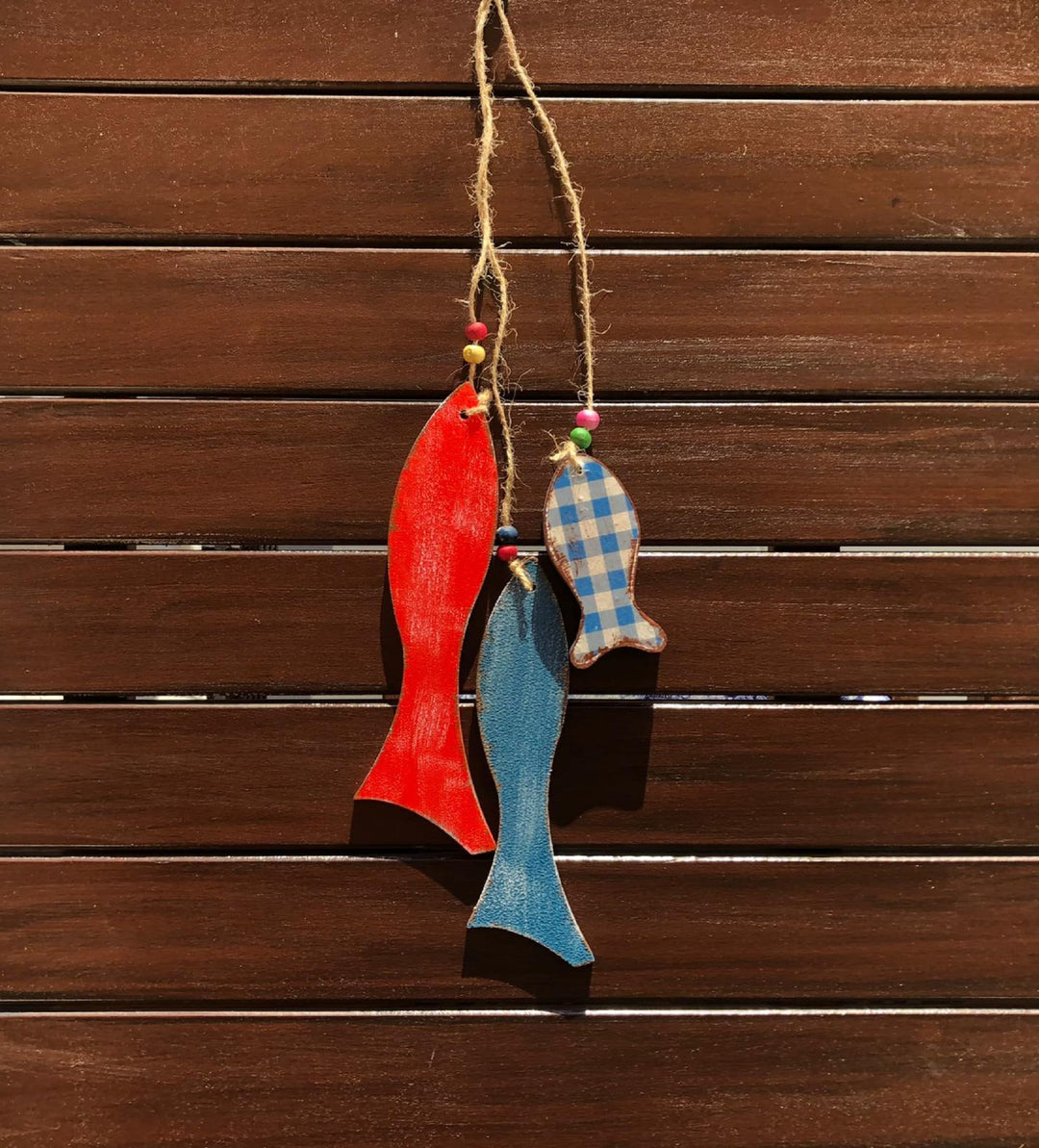 Imagine these charming "Set of 3 Hand Painted Fishes" on your wall to welcome your family and friends!