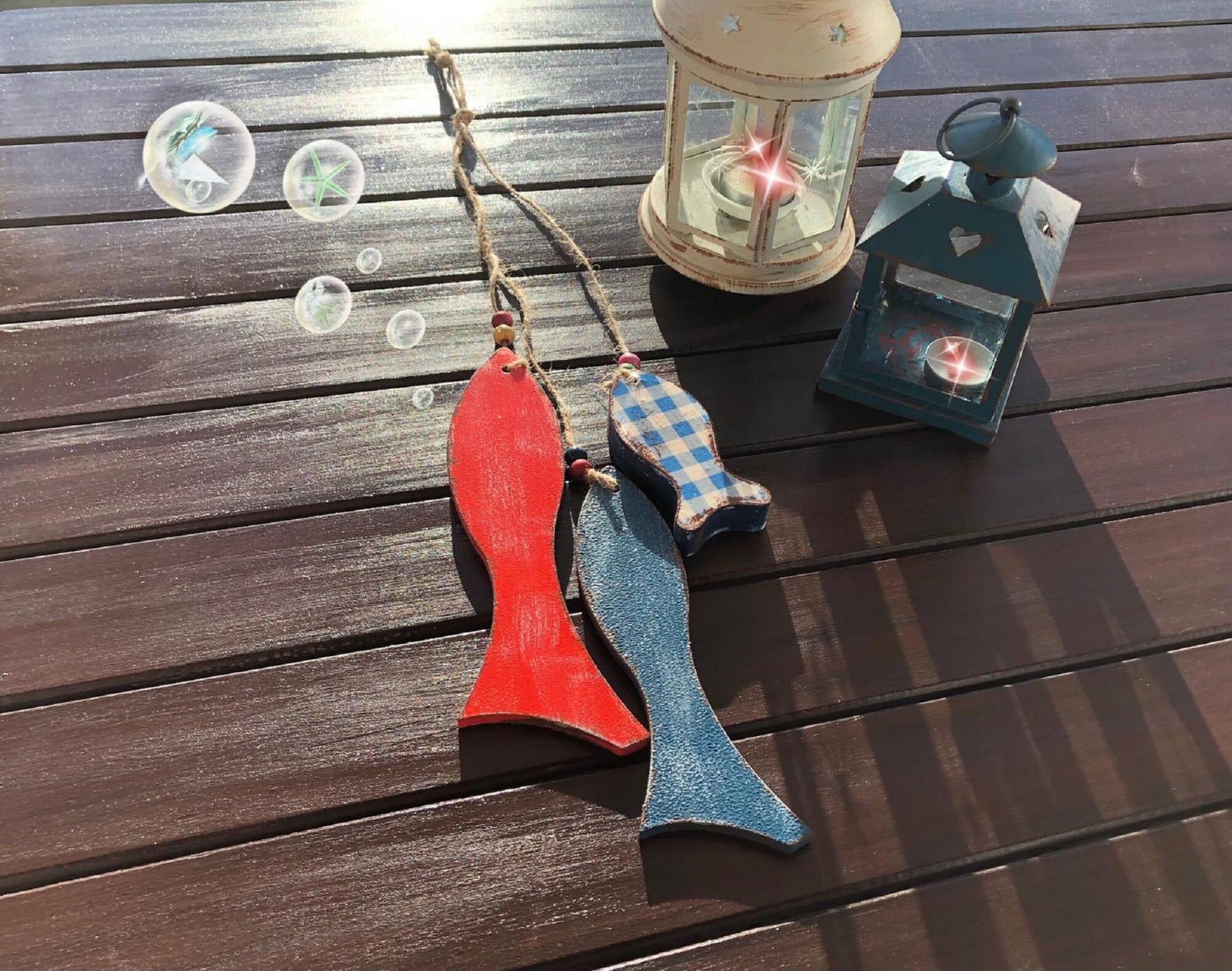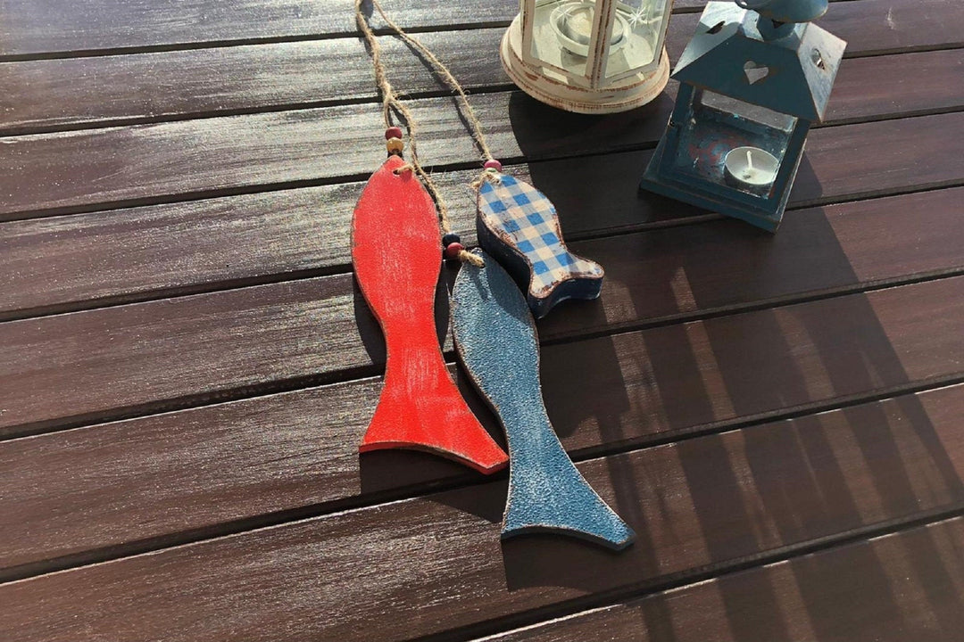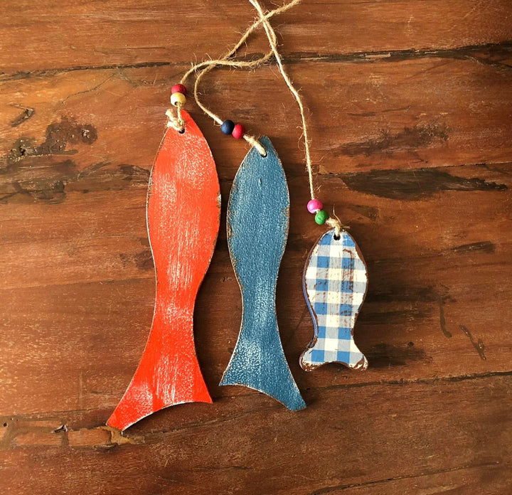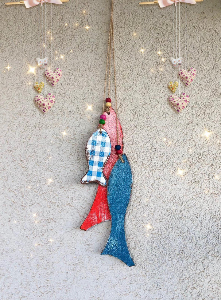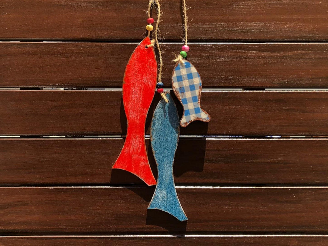 Imagine these charming "Set of 3 Hand Painted Fishes" on your wall to welcome your family and friends!