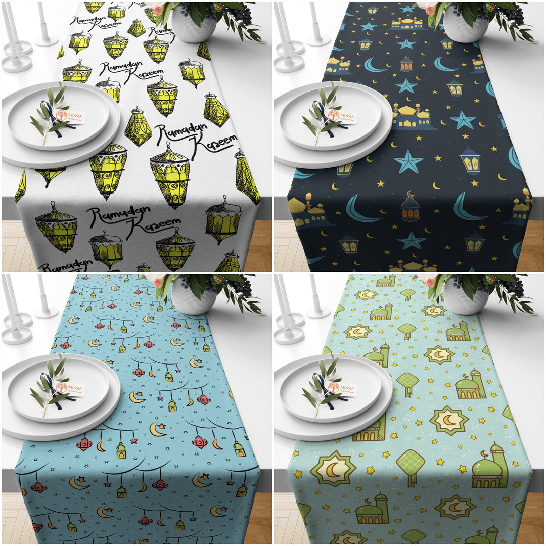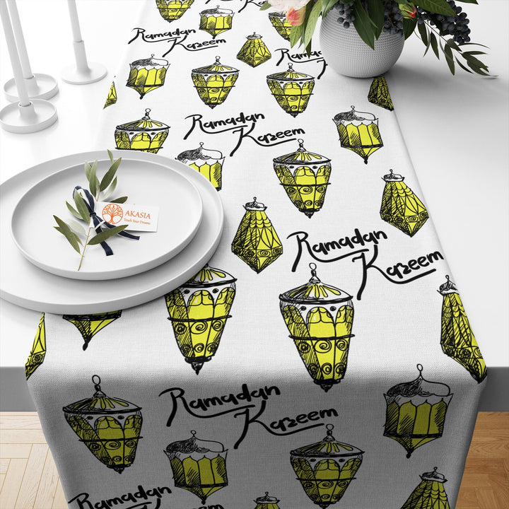 ⚓ These high quality, farmhouse style table covers with Islamic, Mosque, Ramadan Kareem, Religious, Ramadan Lantern print;