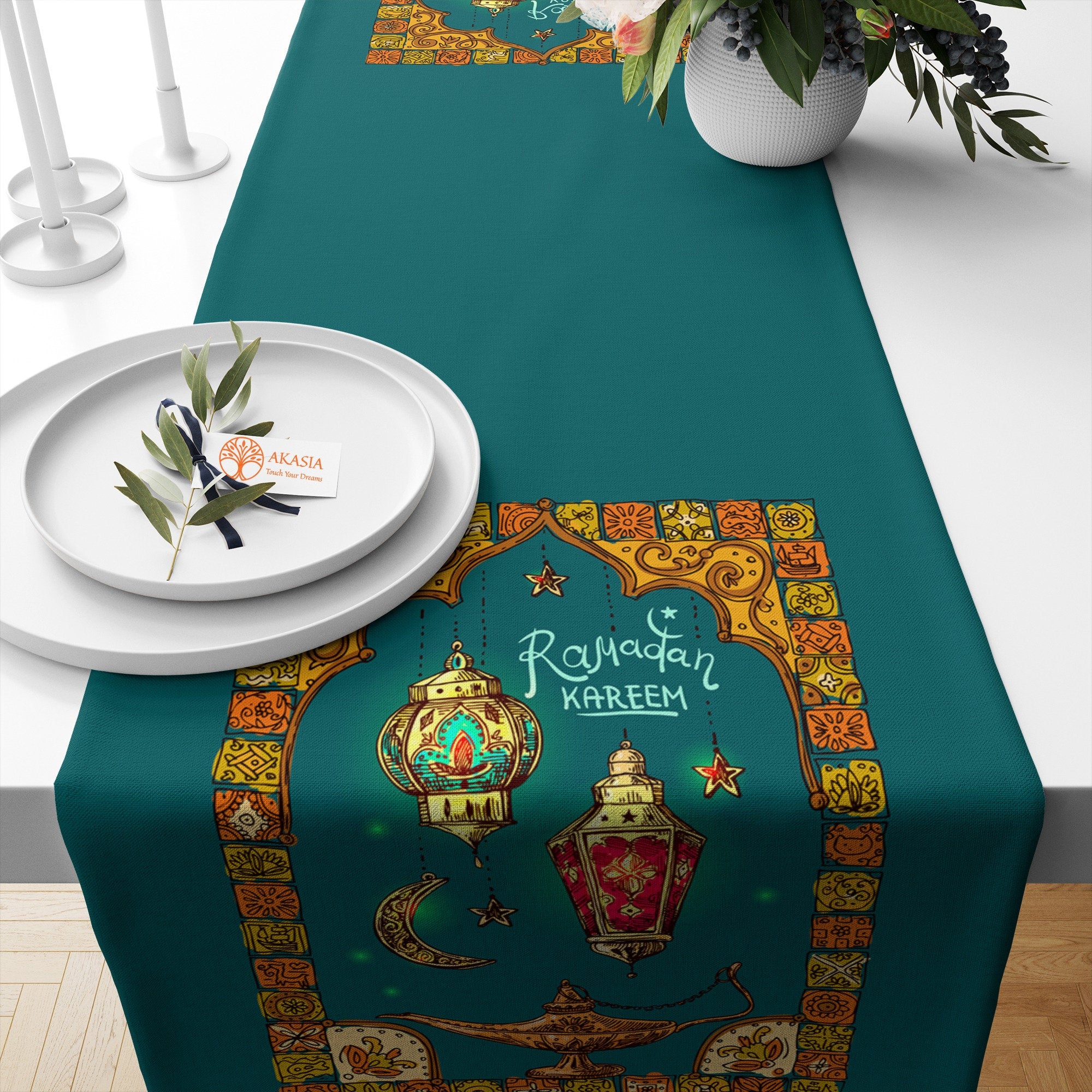 ⚓ These high quality, farmhouse style table covers with Ramadan Kareem, Islamic, Eid Mubarak, Religious, Mystic print;