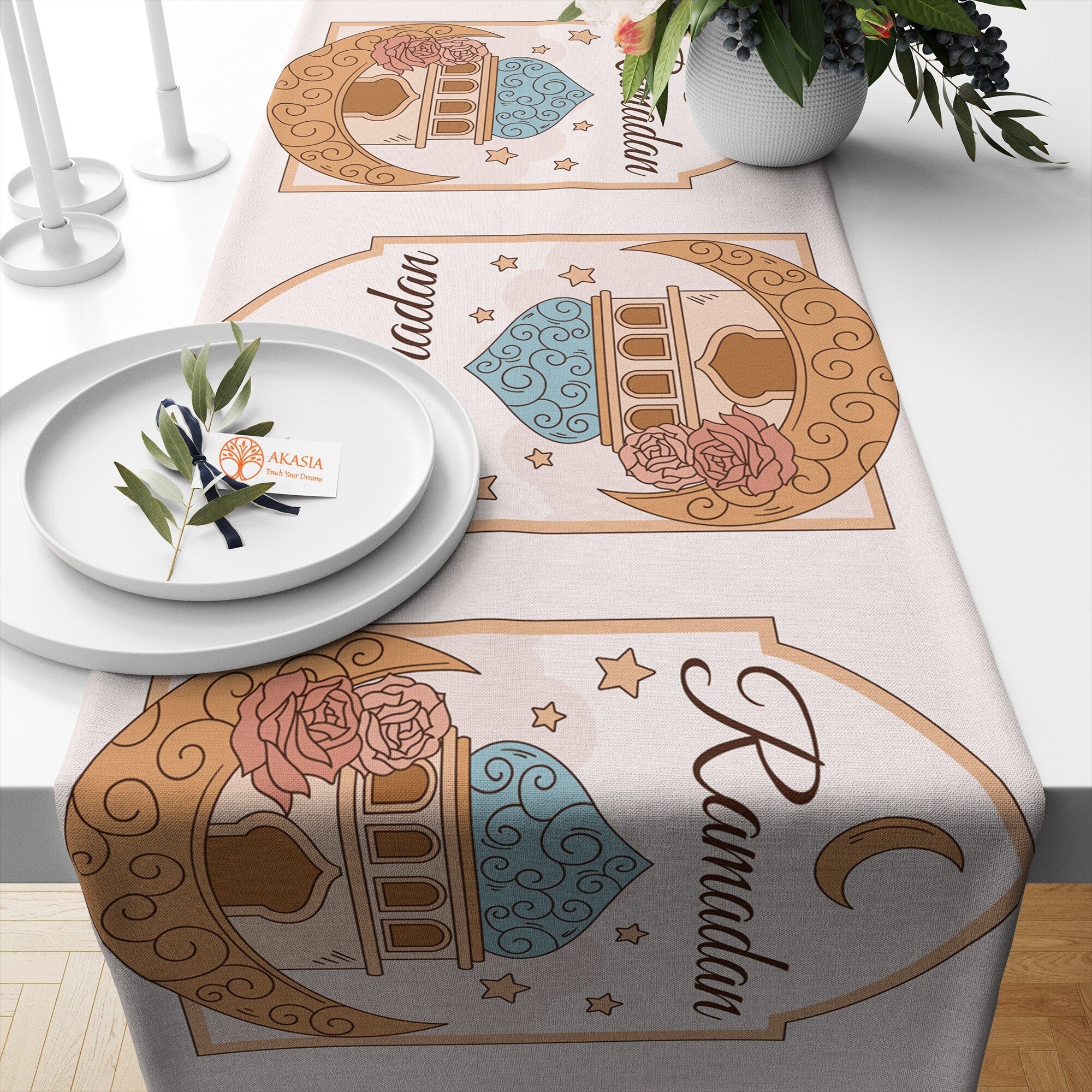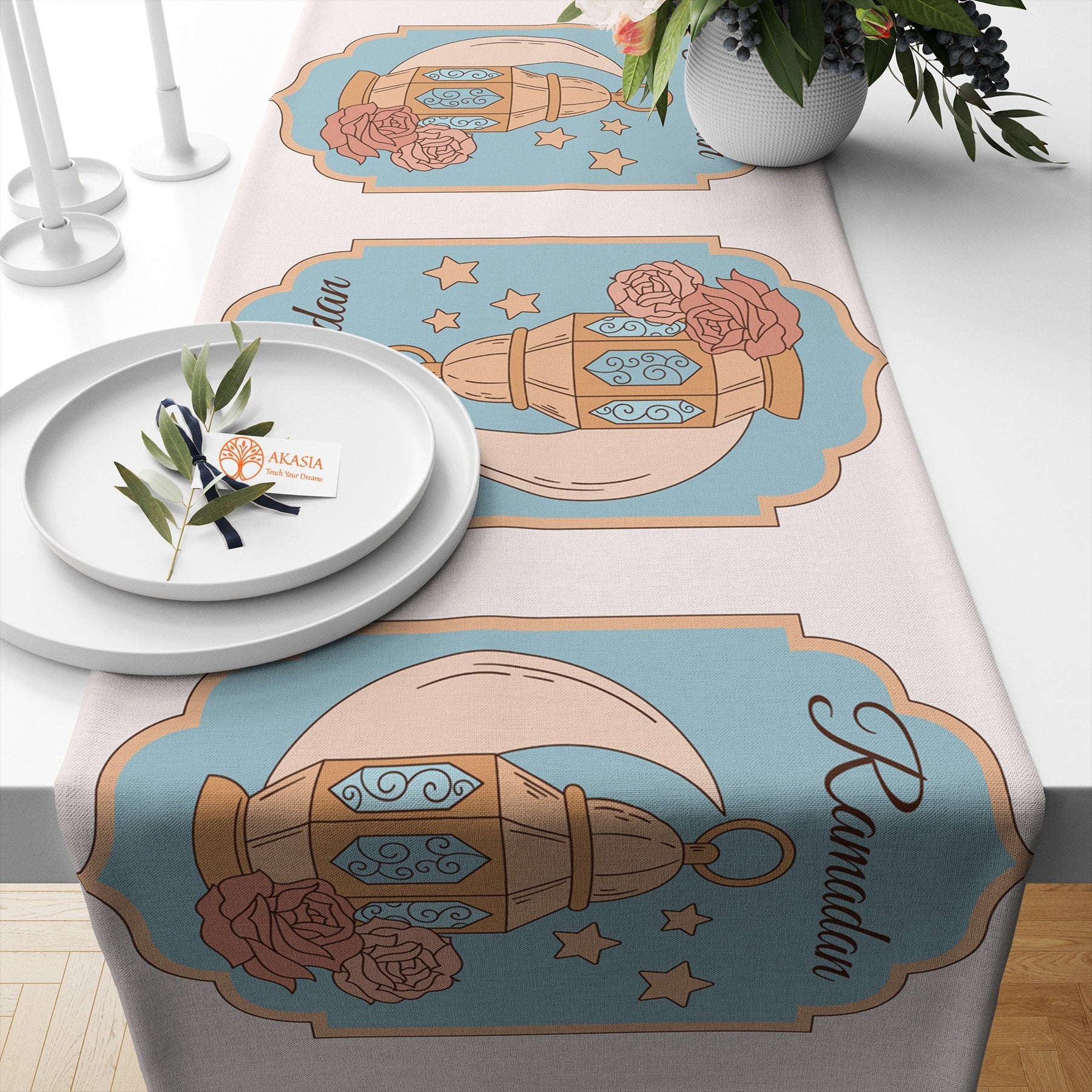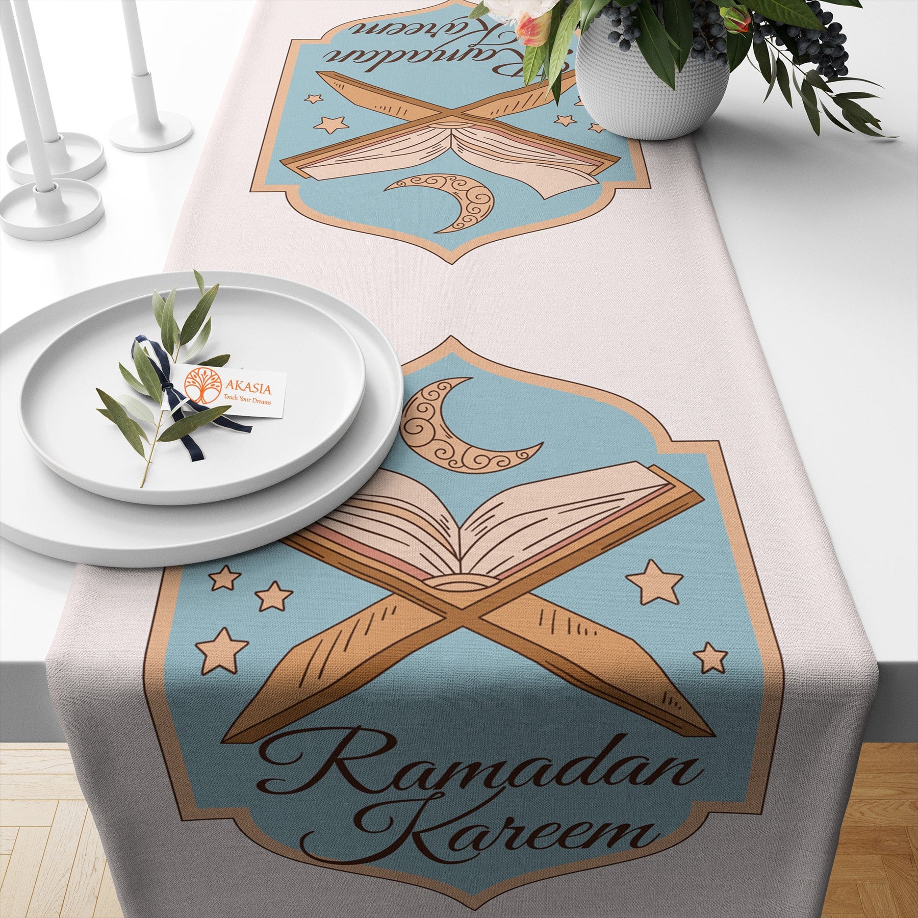 ⚓ These high quality, farmhouse style table covers with Islamic, Farmhouse, Religious, Ramadan Kareem, Bookstand, Crescent and Star print;