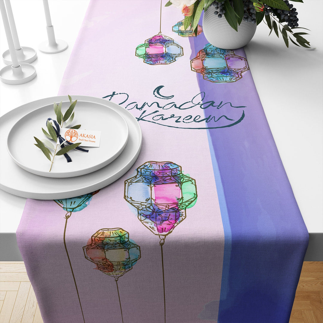 ⚓ These high quality, farmhouse style table covers with Ramadan Kareem, Ramadan Mubarak, Religious, Islamic, Lantern print;