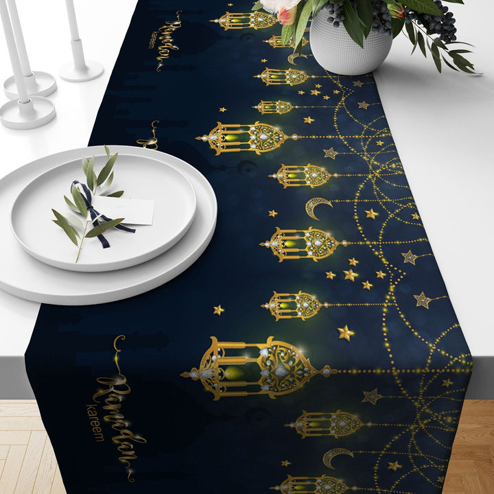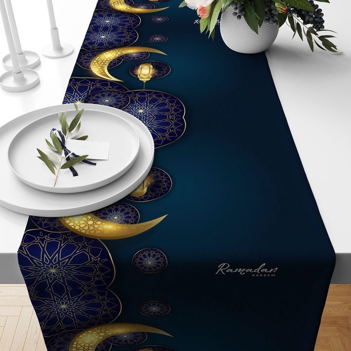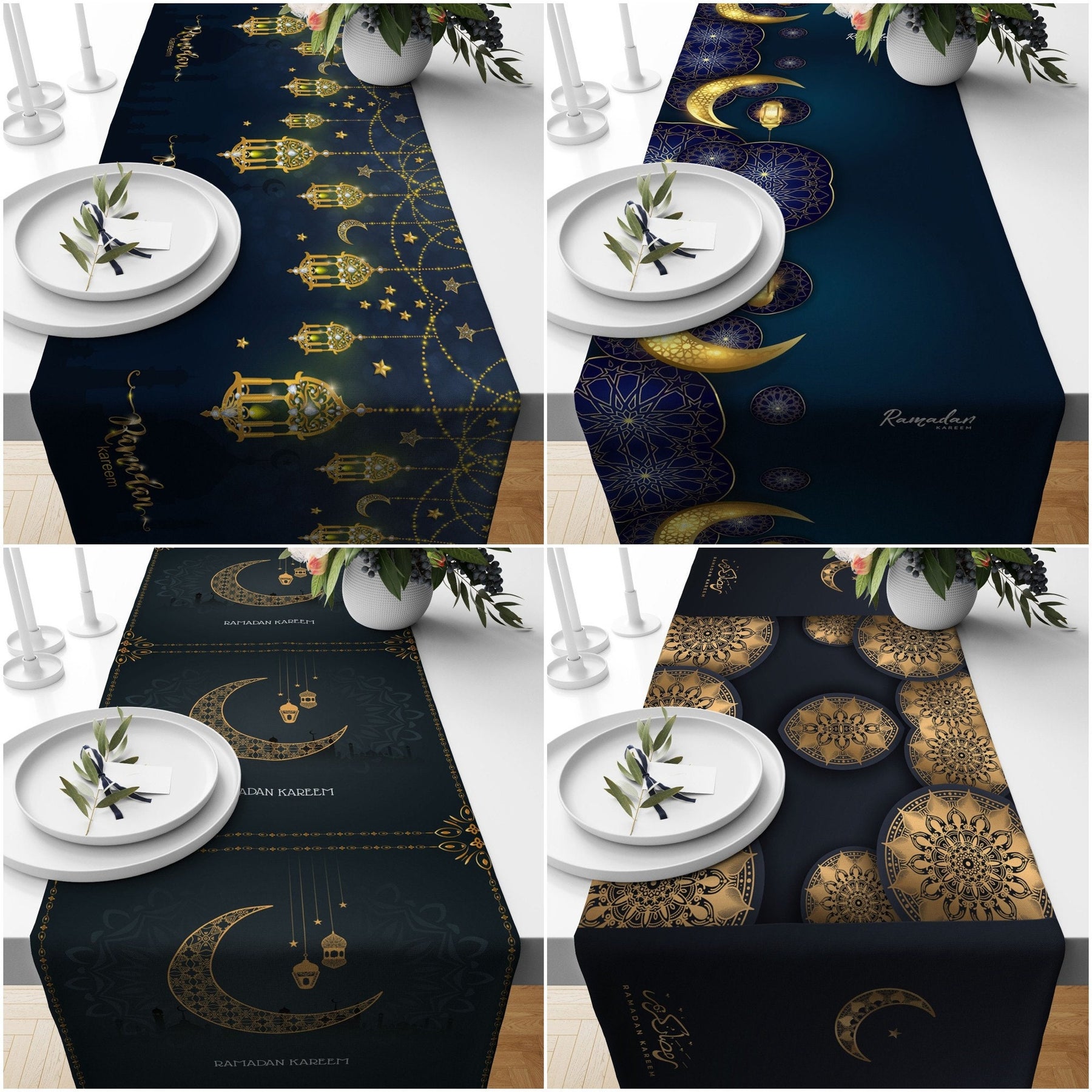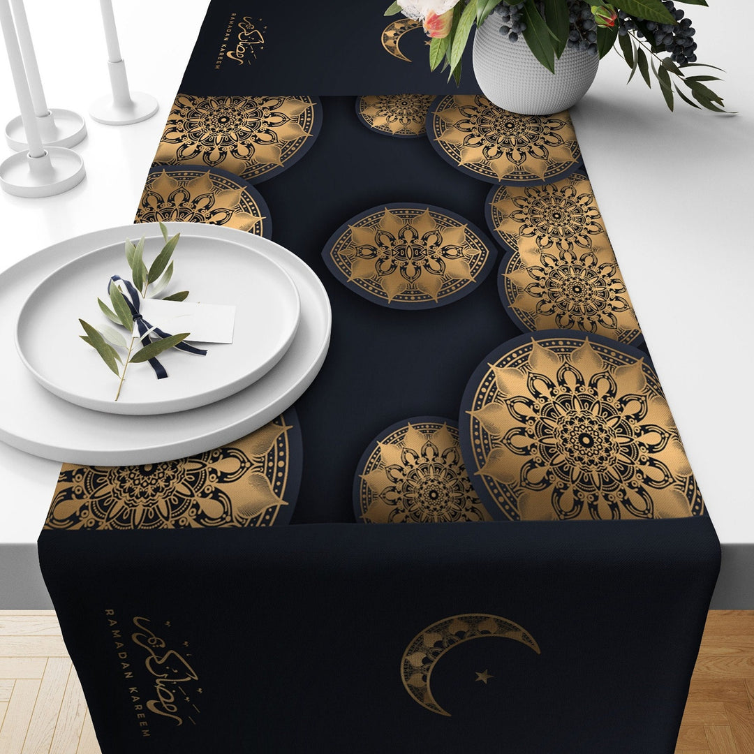 Ramadan Table Runner|Ramadan Kareem Decor|Religious Tabletop|Gift for Muslims|Islamic Tablecloth|Mystic Motif Print Table Centerpiece
