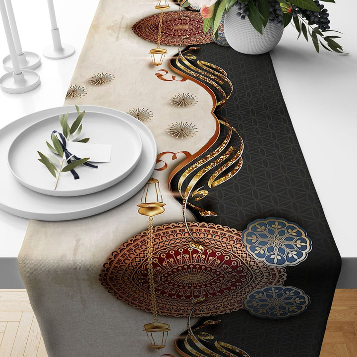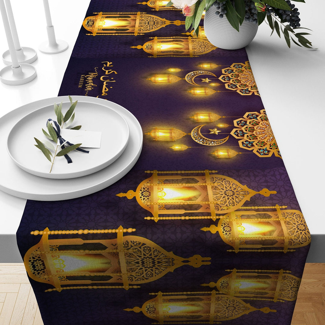 Ramadan Table Runner|Religious Tablecloth|Gift for Muslims|Eid Mubarak Tabletop|Mystic Motif Print Table Centerpiece|Ramadan Kareem Decor