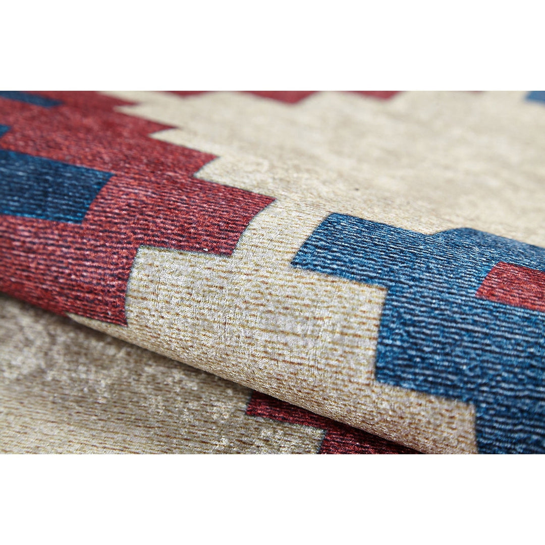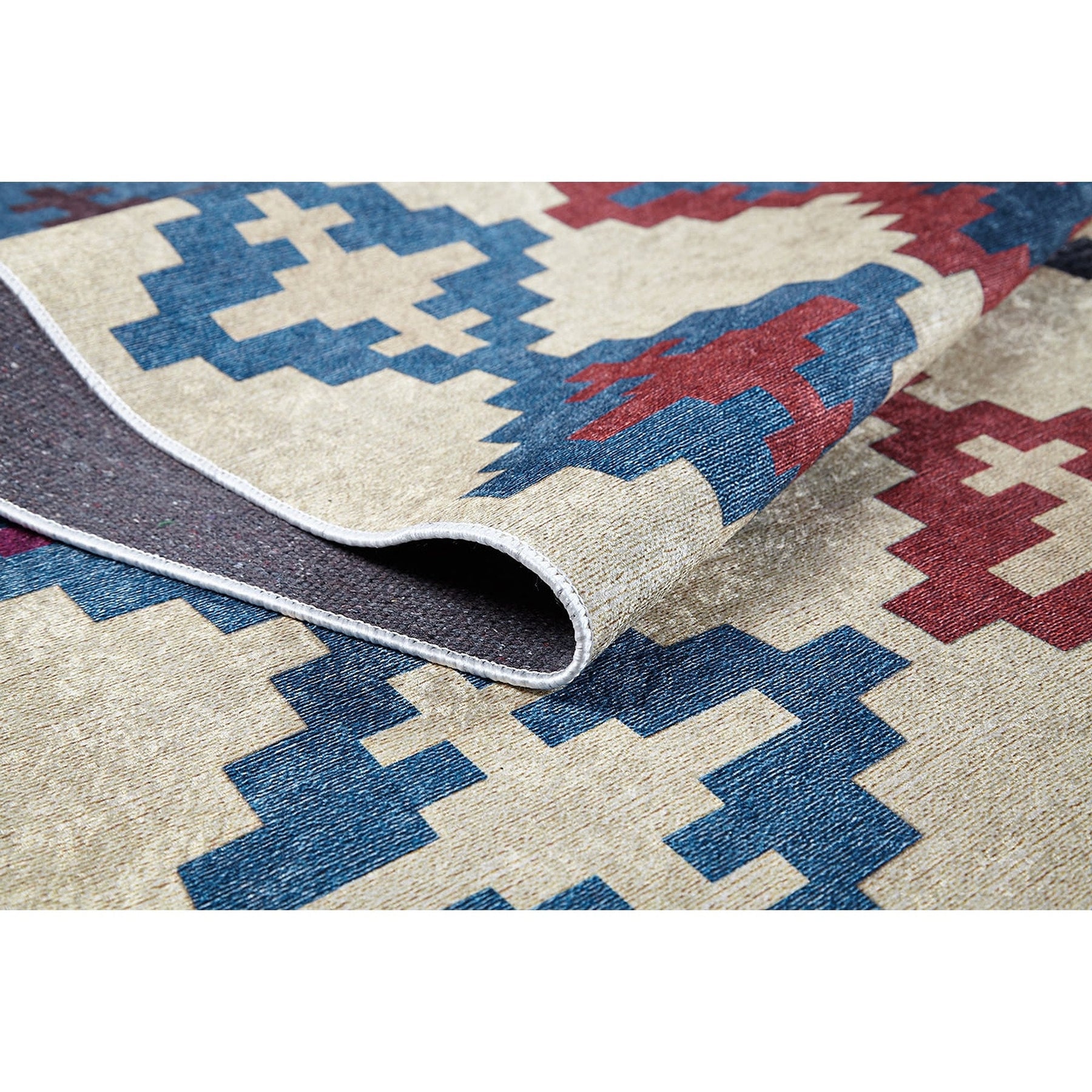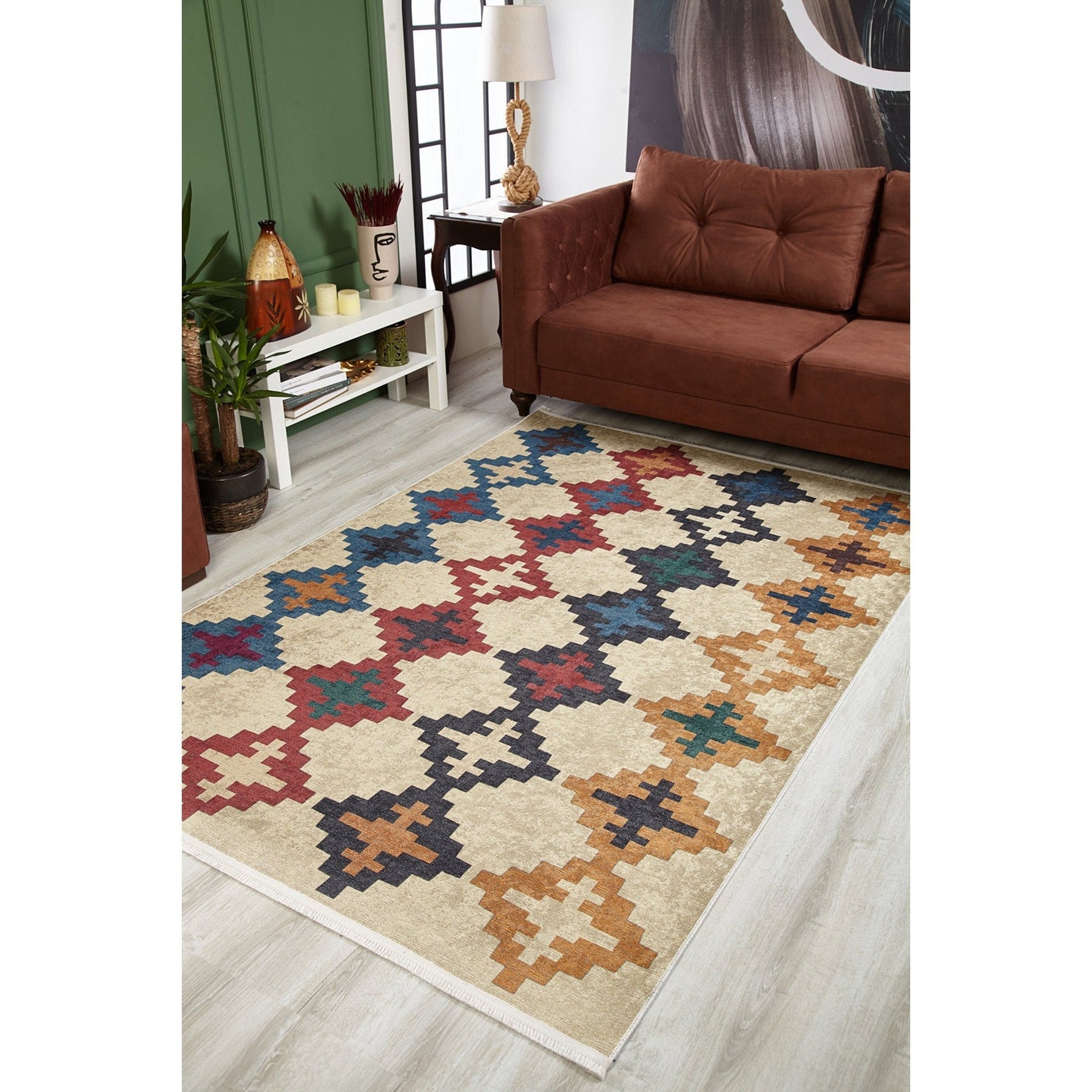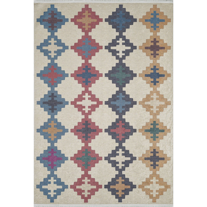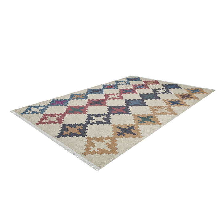 This elegant Machine-Washable floor rug with Ethnic Kilim Motif;