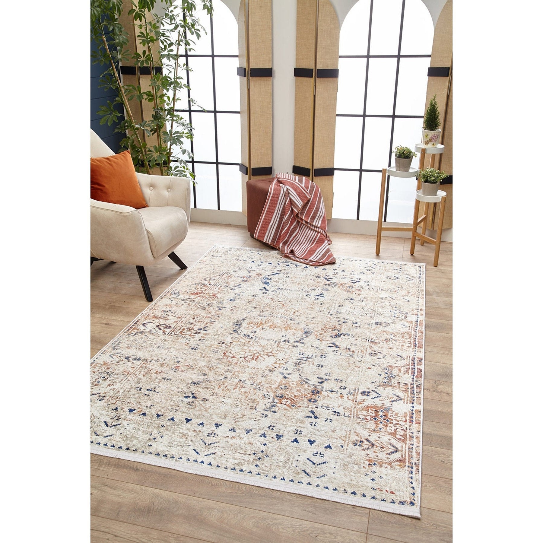 This elegant Machine-Washable floor rug with Ethnic Pattern;