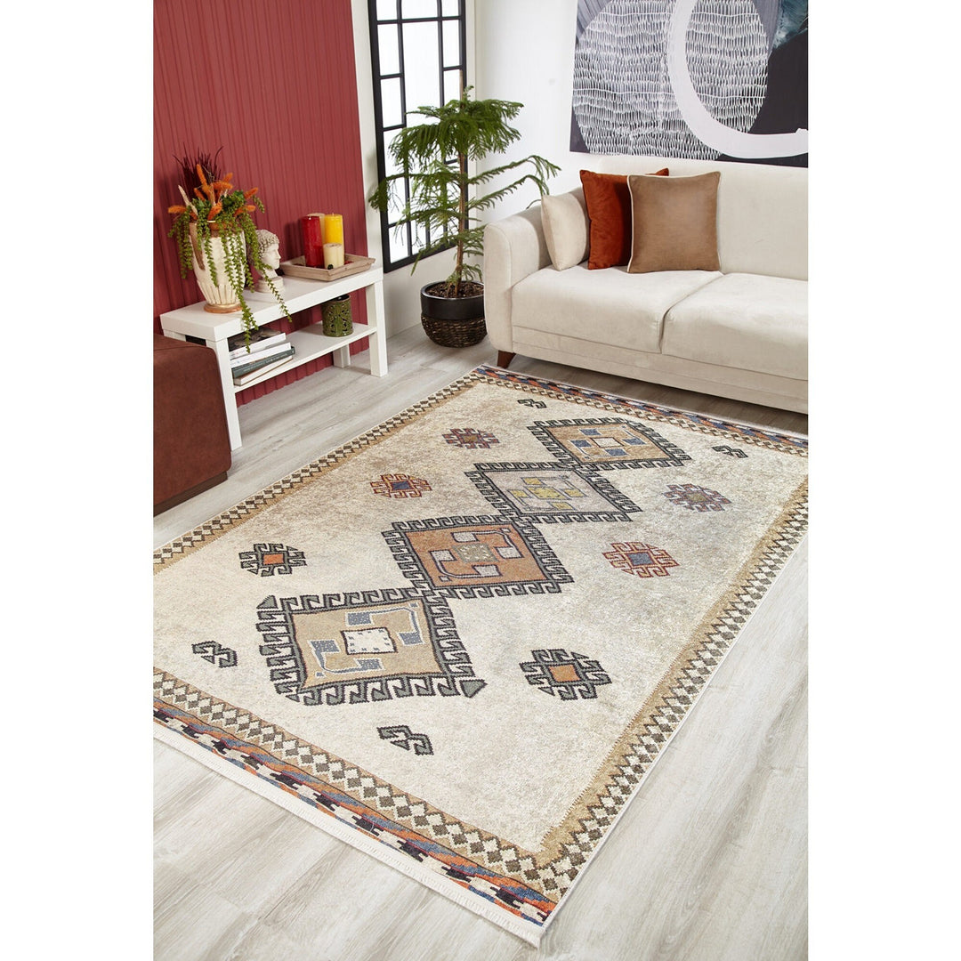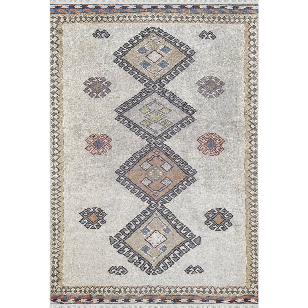 This elegant Machine-Washable floor rug with Ethnic Pattern;