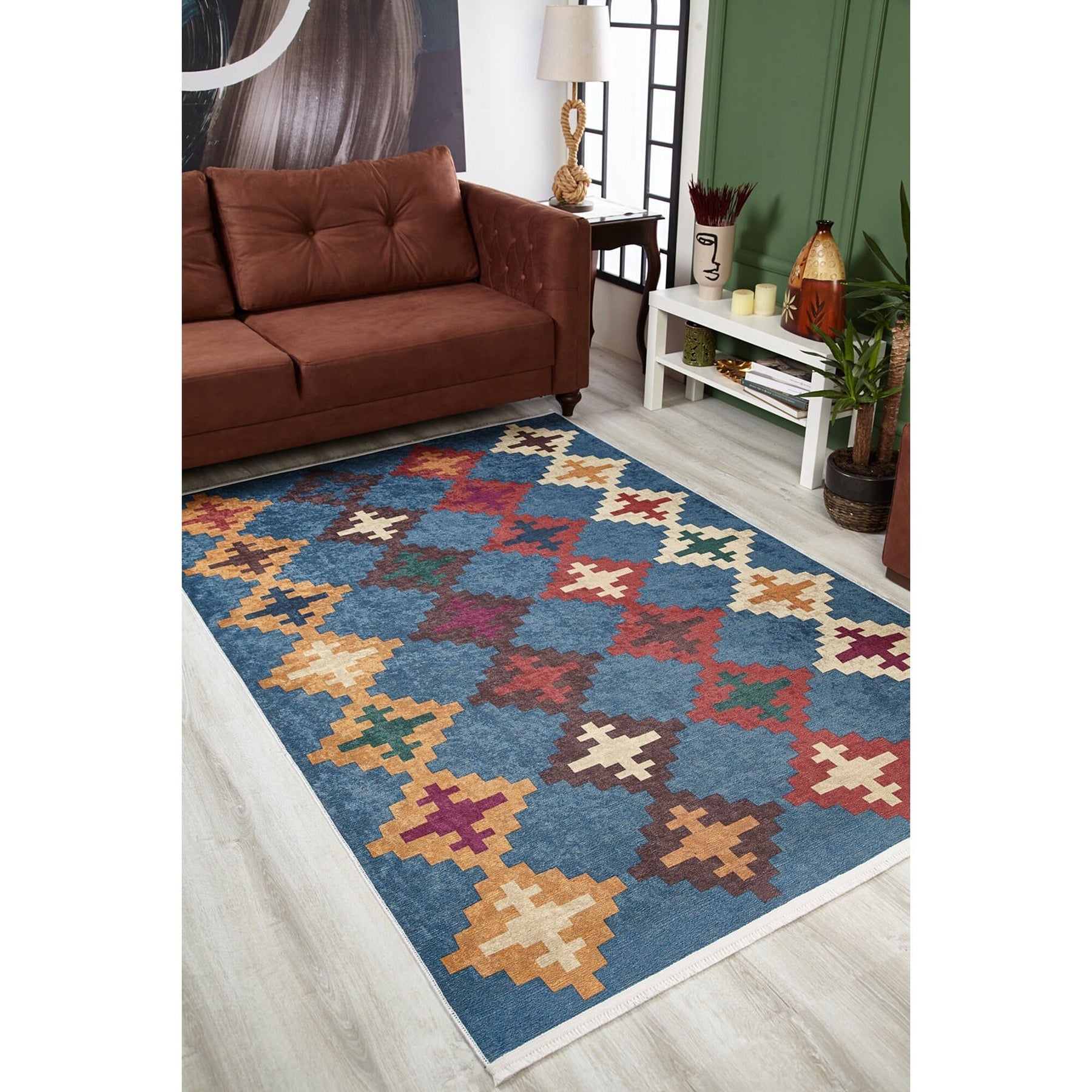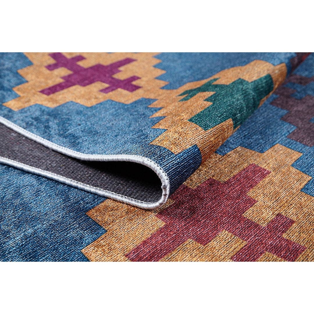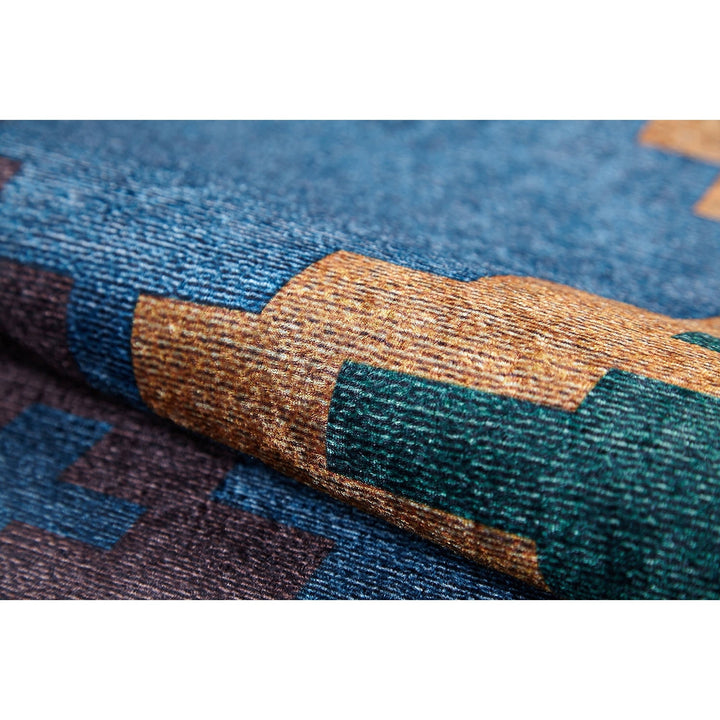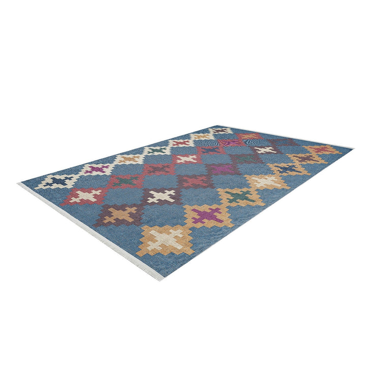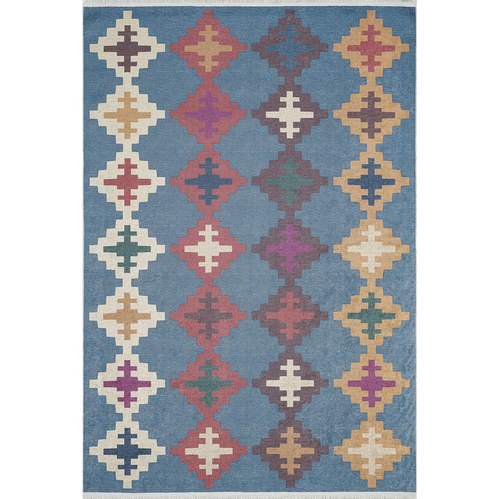 This elegant Machine-Washable floor rug with Ethnic Kilim Motif;