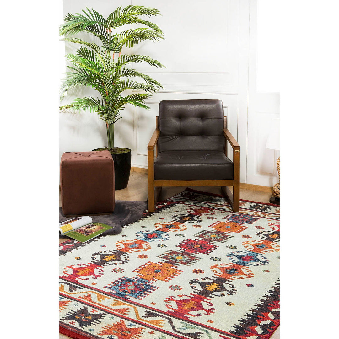 This elegant Machine-Washable floor rug with Turkish Kilim Pattern;