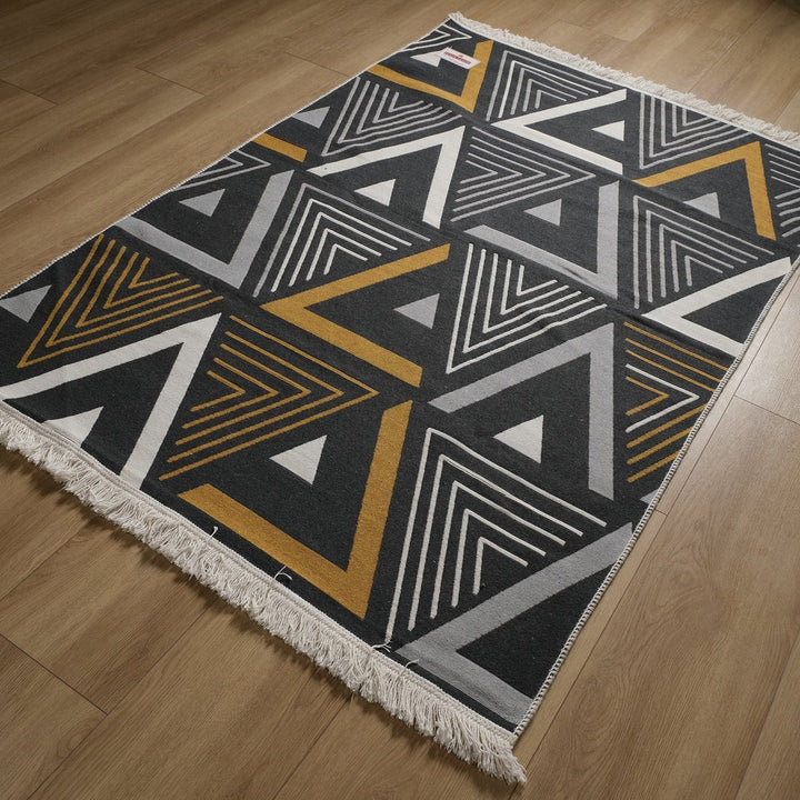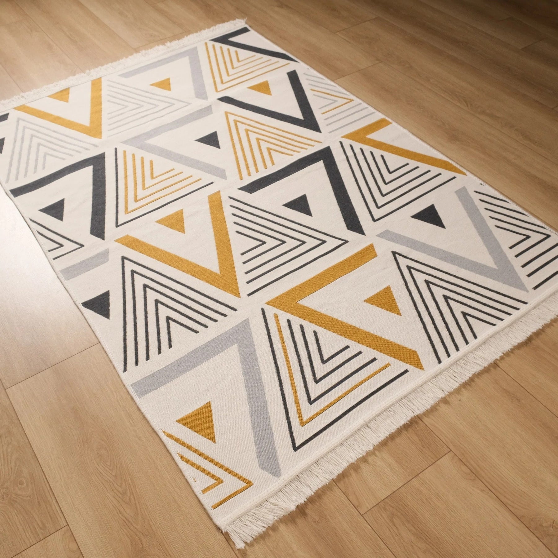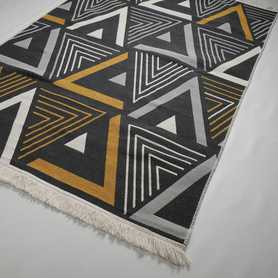 This elegant Machine Woven and Machine-Washable reversible floor rug with Triangle Pattern;
