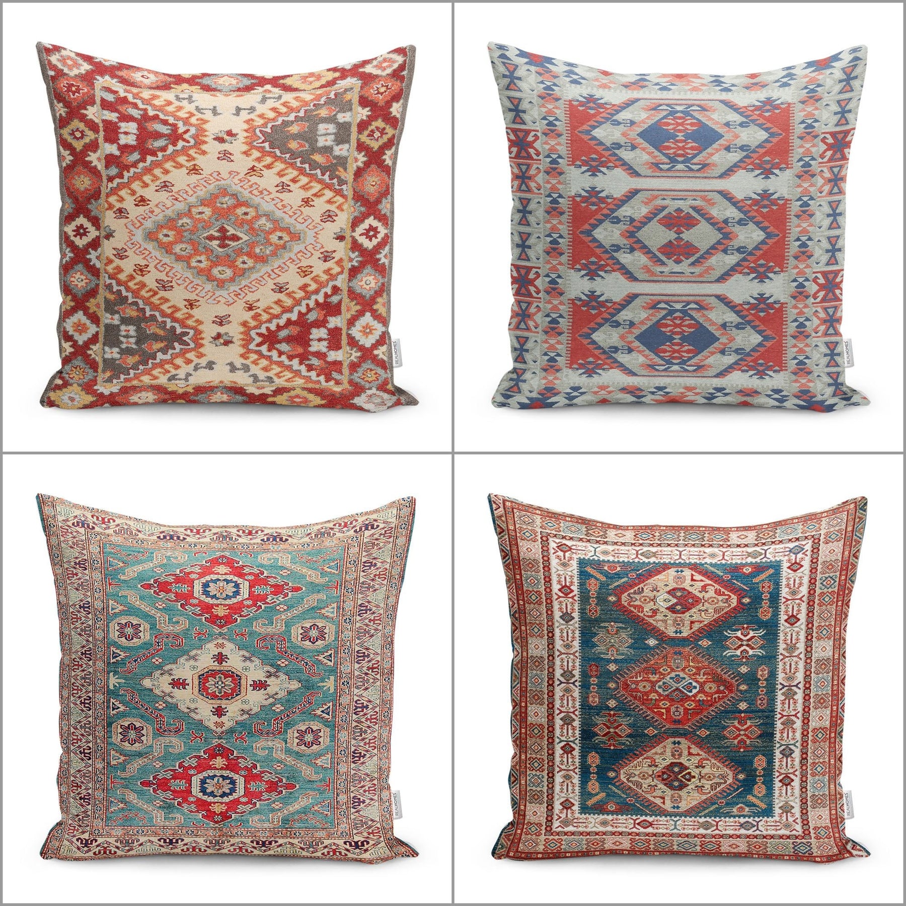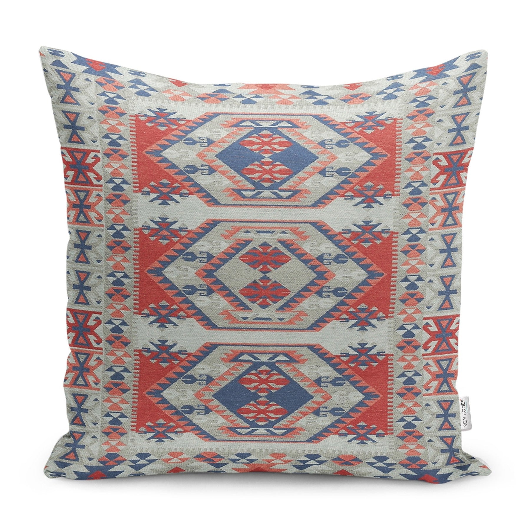 Kilim Pattern Pillow Cover|Rug Design Cushion Case|Boho Bedding Pillow|Ethnic Anatolian Home Decor|Farmhouse Geometric Outdoor Pillowtop