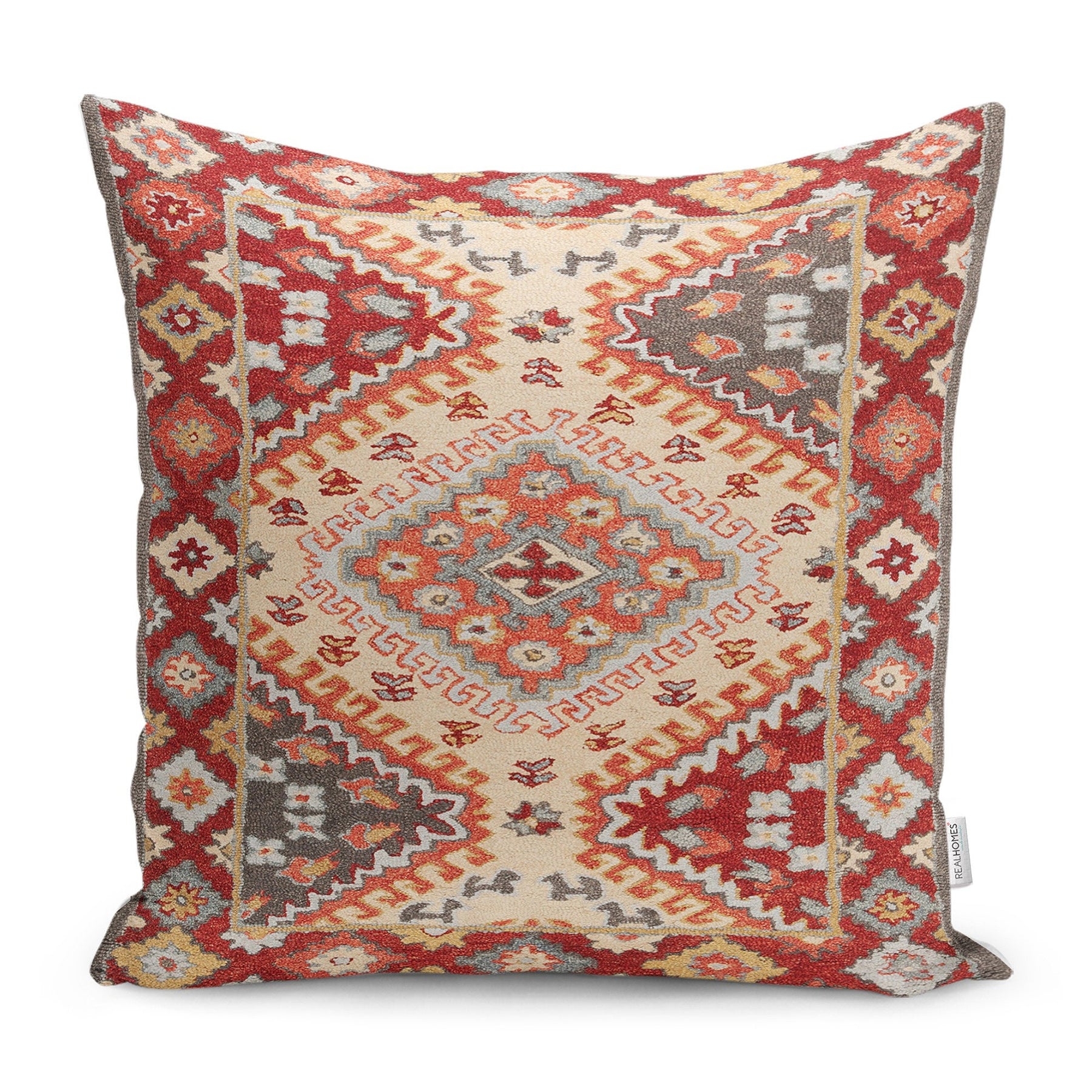These elegant square decorative farmhouse throw pillow covers with Turkish Kilim Pattern;