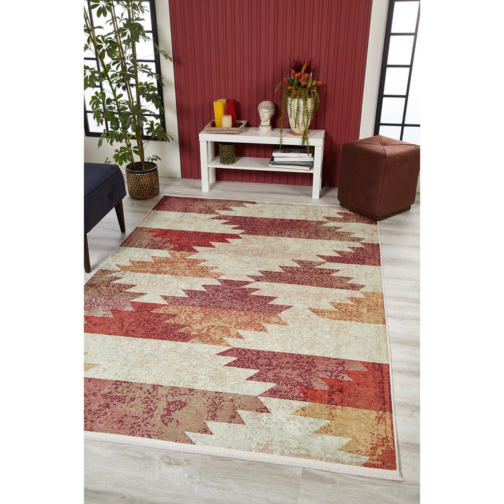 This elegant Machine-Washable floor rug with Ethnic Kilim Pattern;