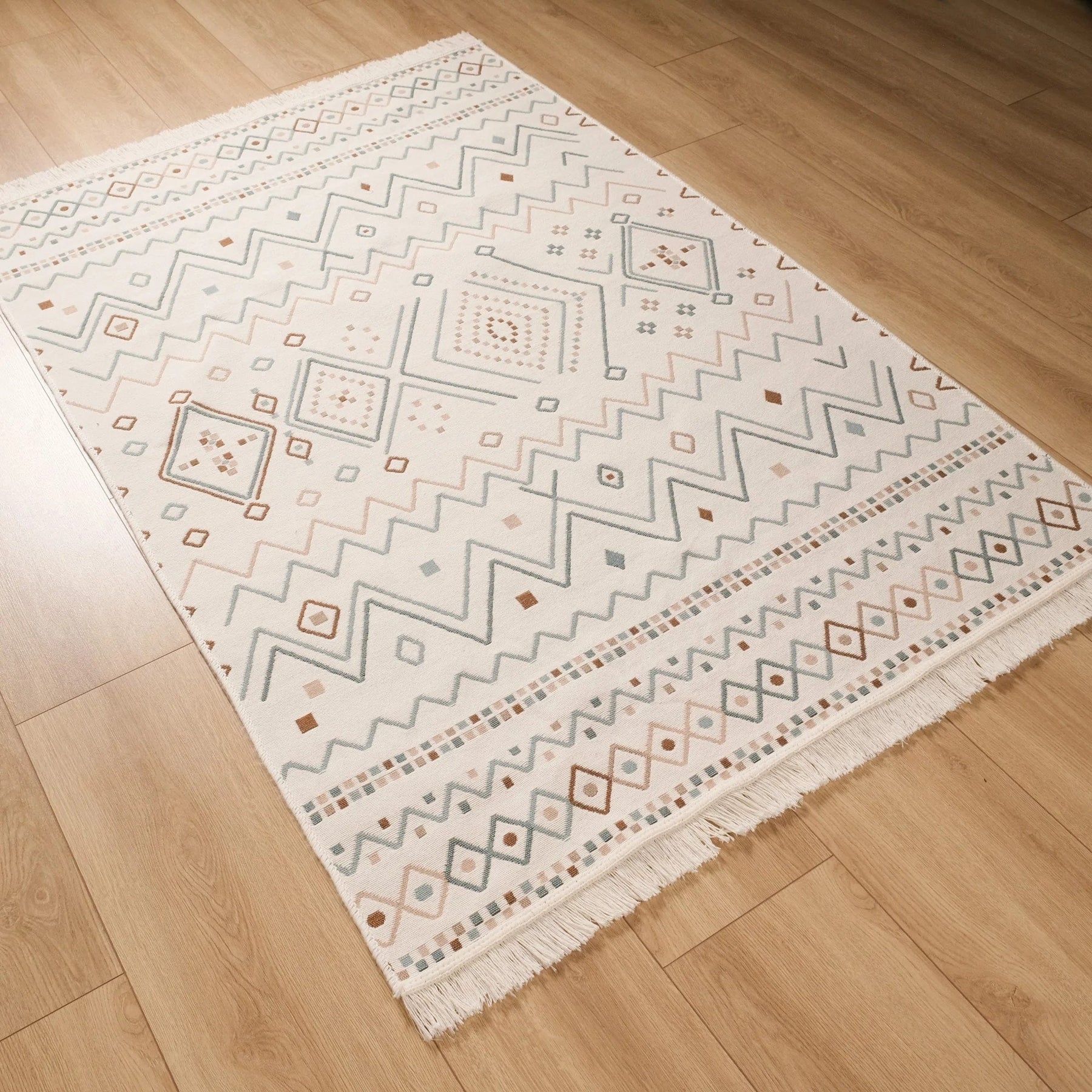 This elegant Machine Woven and Machine-Washable reversible floor rug with Nordic Scandinavian Design;