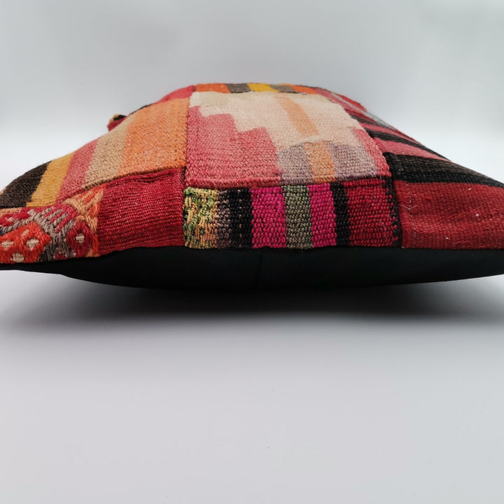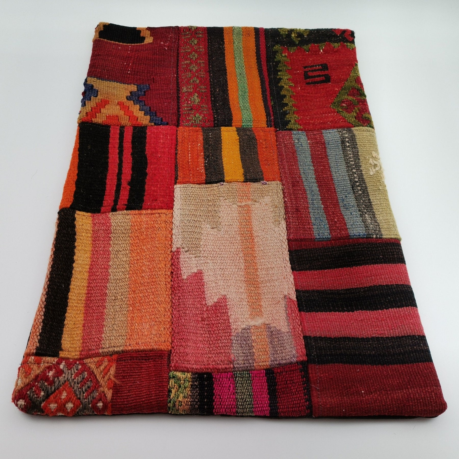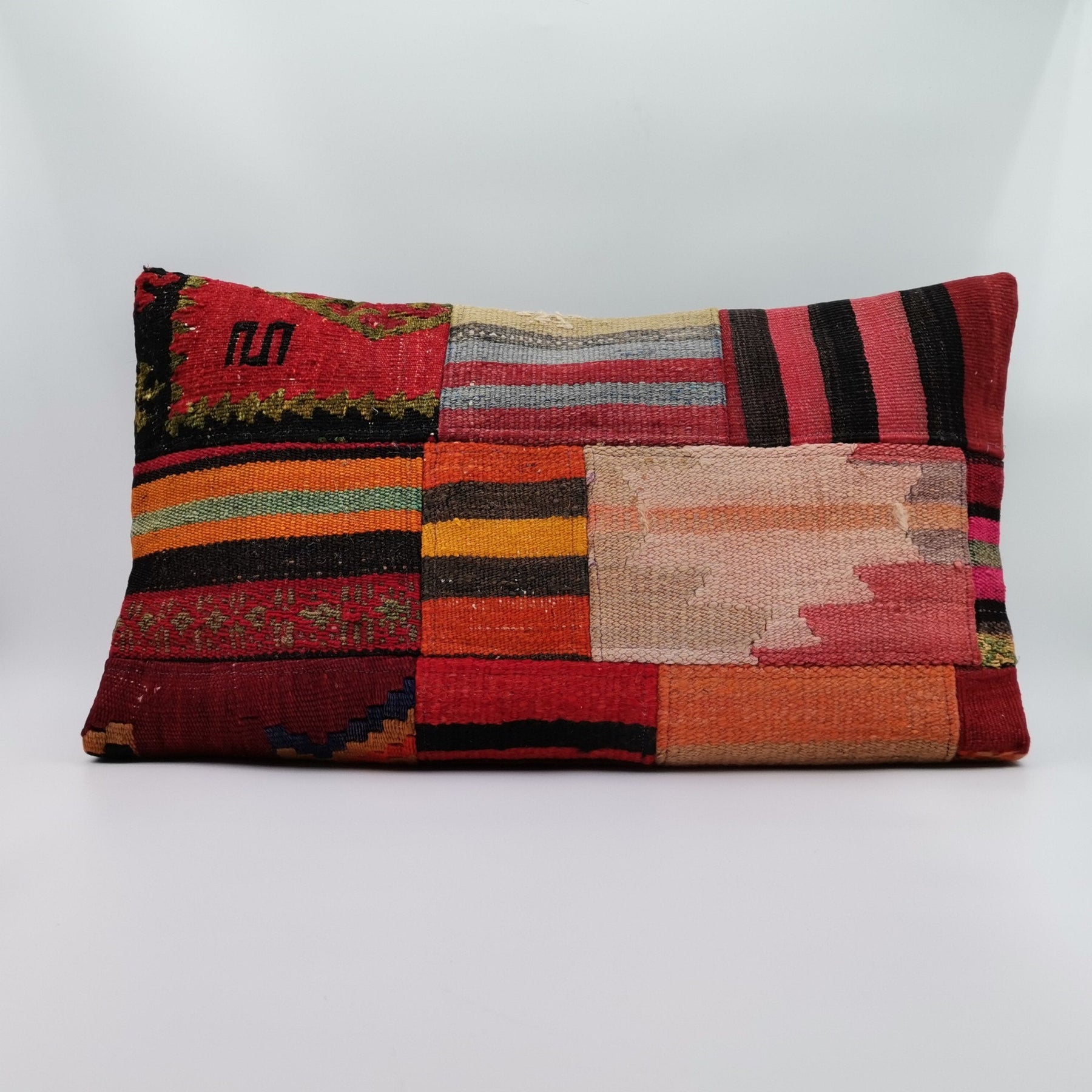 Vintage Kilim Pillow Cover|Antique Upholstery Lumbar Pillow Top|Ottoman Kilim Decor|Handwoven Patchwork Rug Cushion|Cozy Home Decor 16x24
