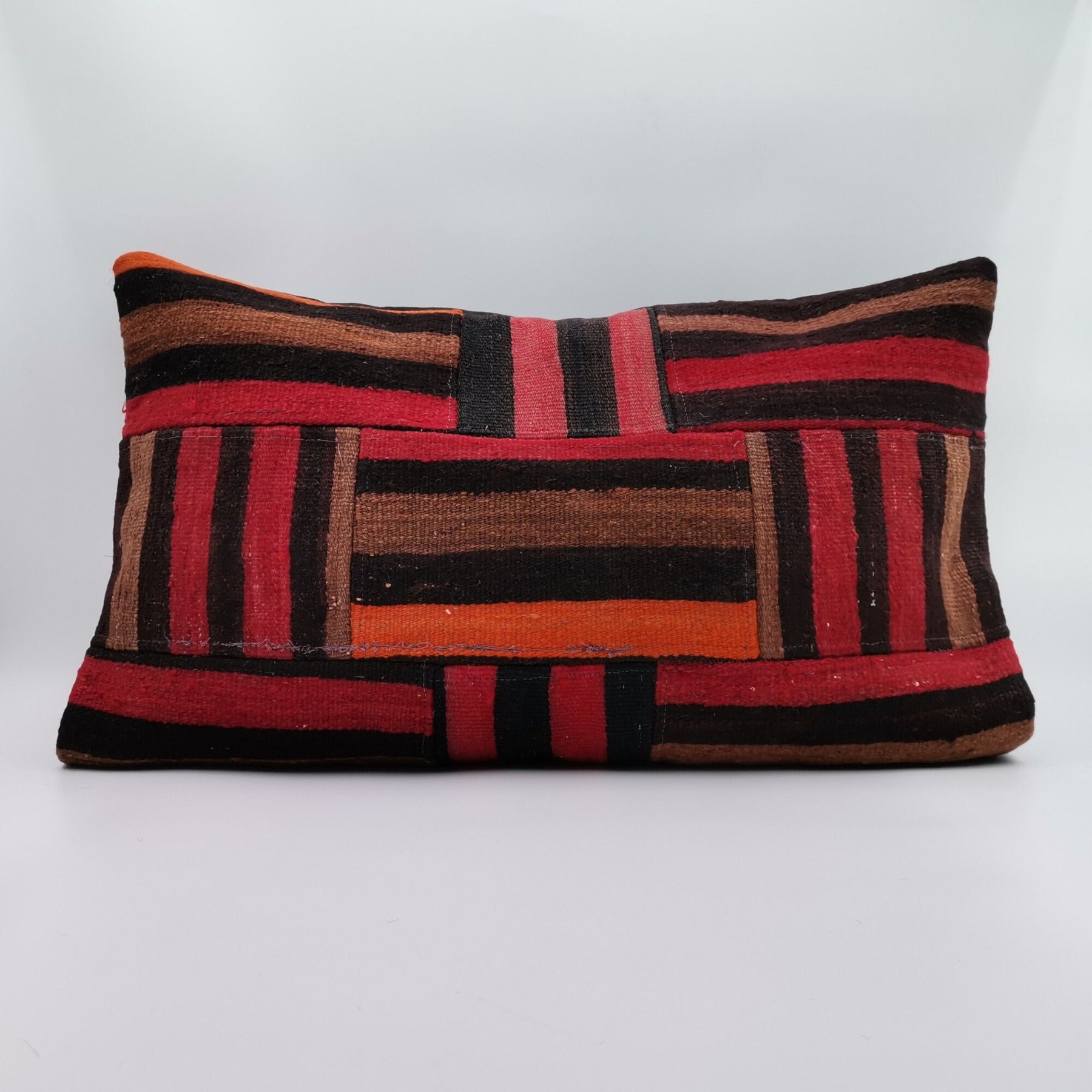 Vintage Kilim Pillow Cover|Ottoman Kilim Decor|Antique Farmhouse Lumbar Pillow Top|Boho Bedding Decor|Handwoven Patchwork Rug Cushion 16x24