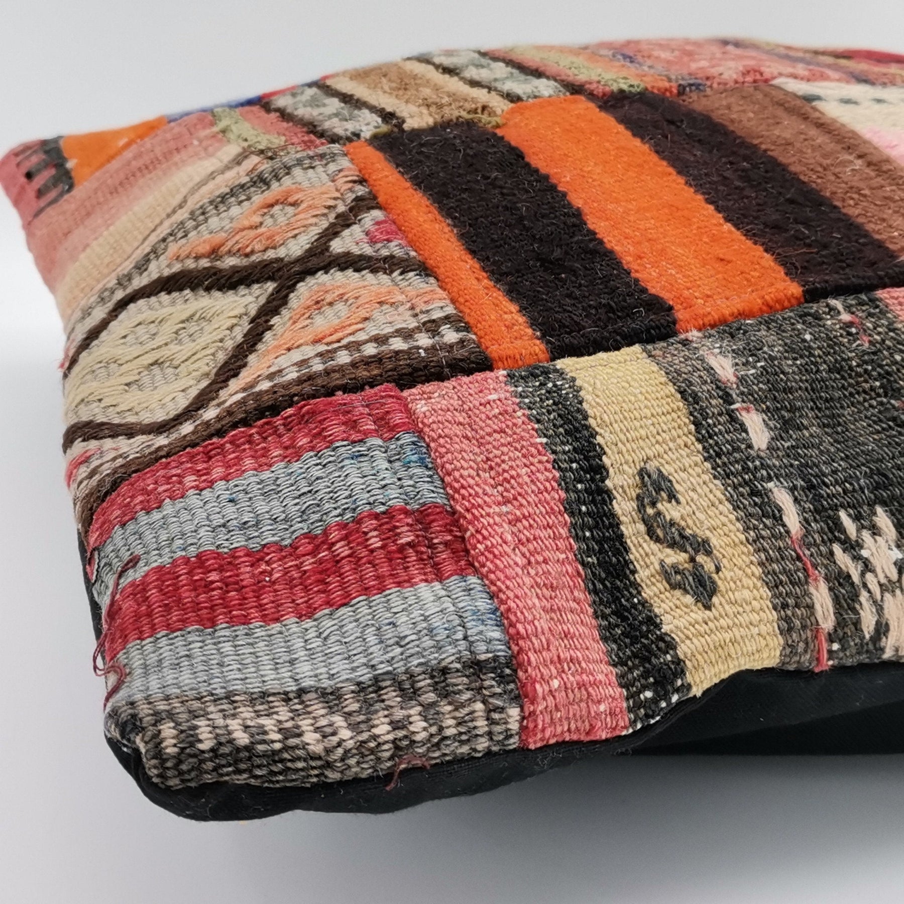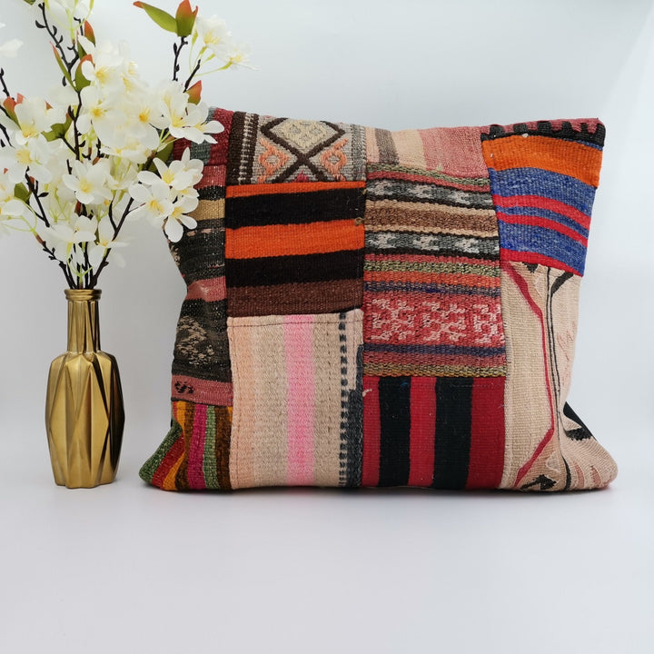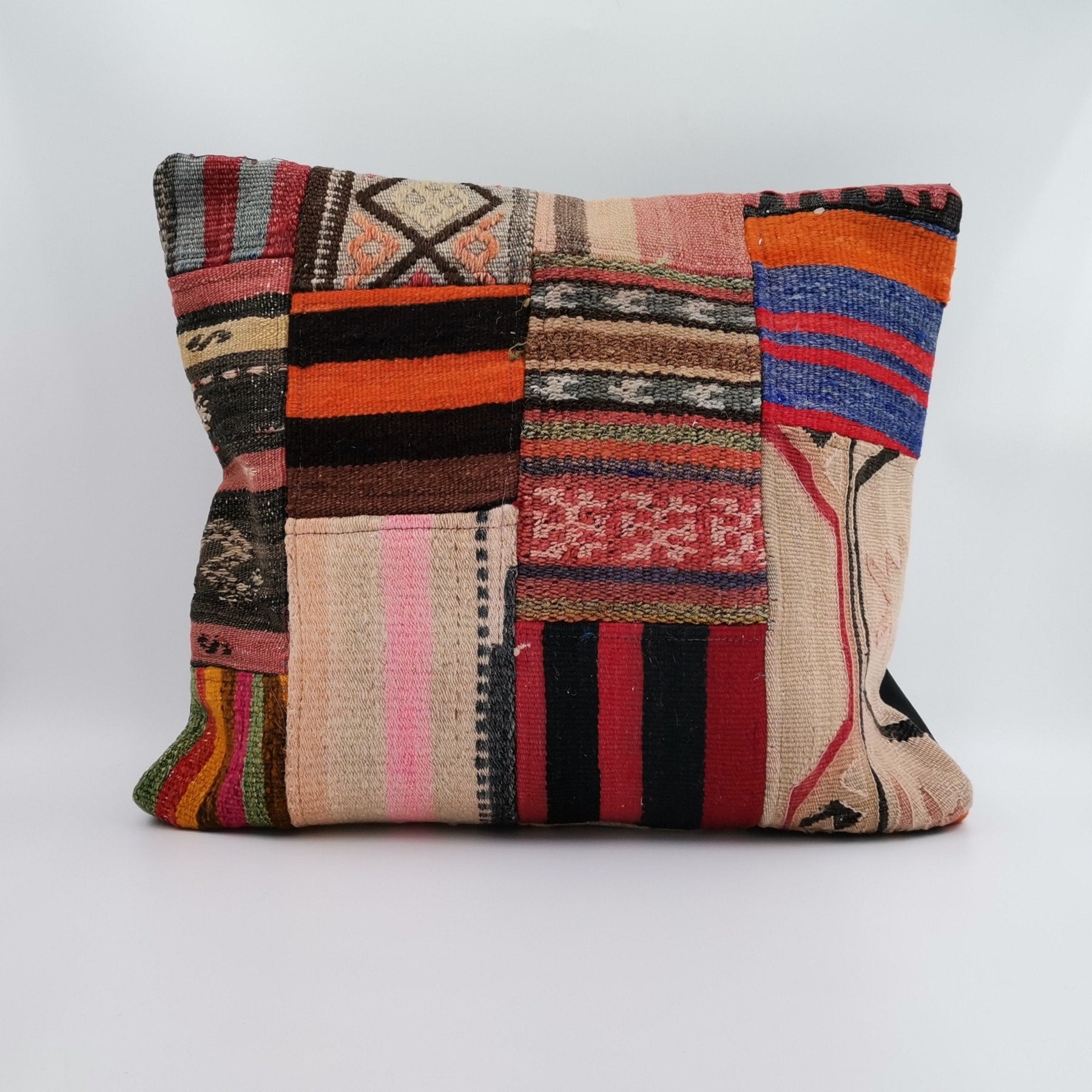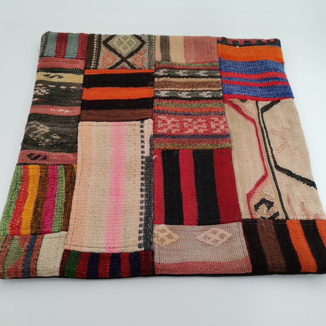 Vintage Kilim Pillow Cover|Turkish Kilim Cushion Case|Ethnic Ottoman Throw Pillow|Boho Bedding Decor|Handwoven Patchwork Rug Cushion 20x20