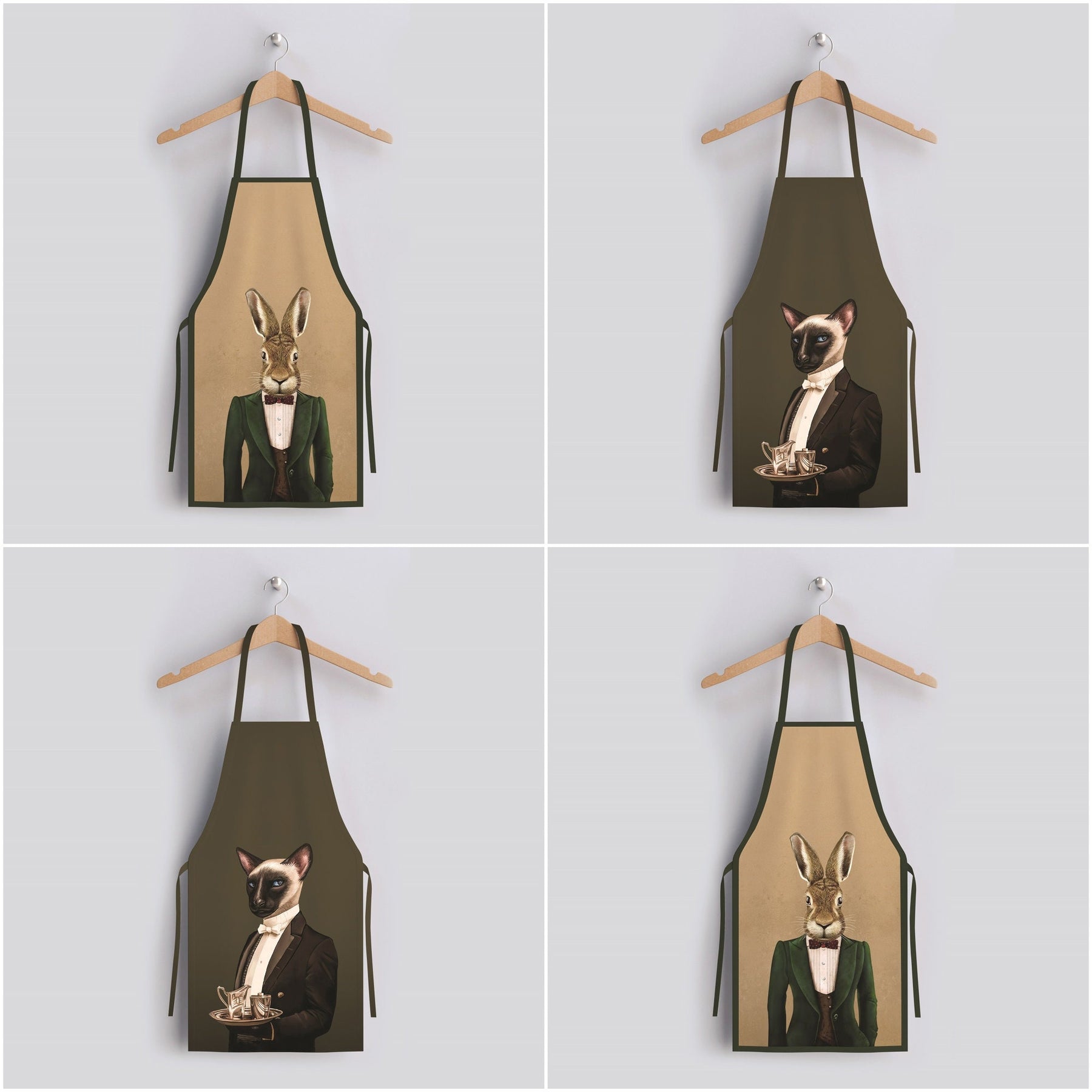 These elegant decorative aprons with Mr Rabbit and Mr Cat;
