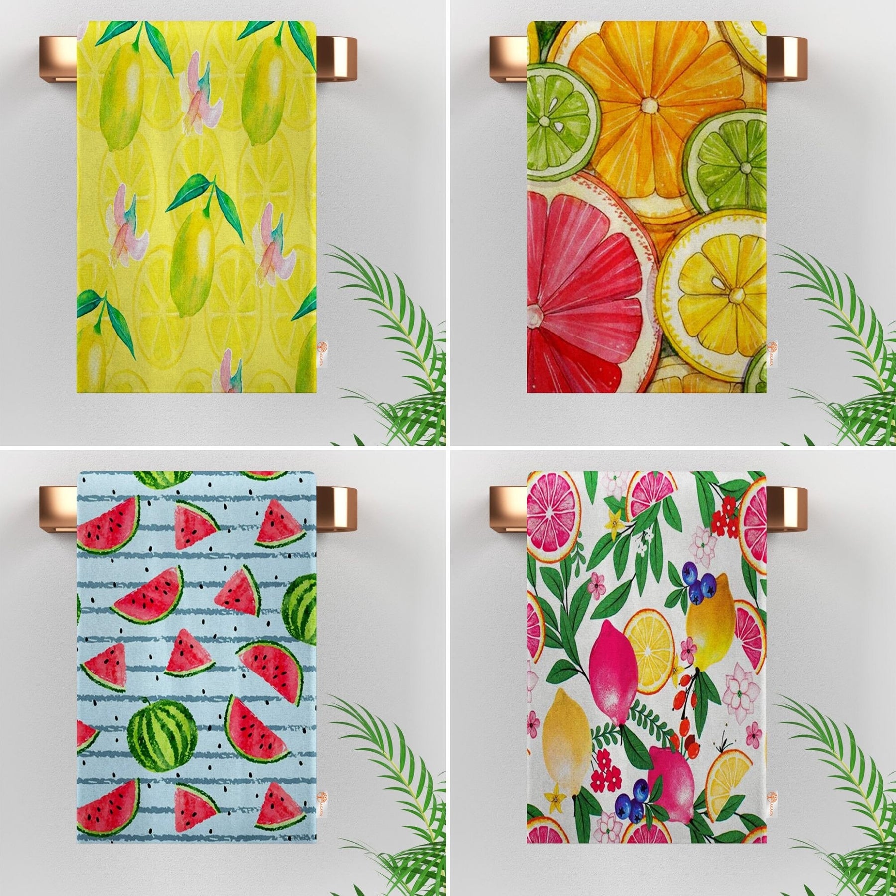 These elegant decorative rectangle kitchen/dish/hand/tea towels with Fruit, Fresh Citrus, Watermelon prints;