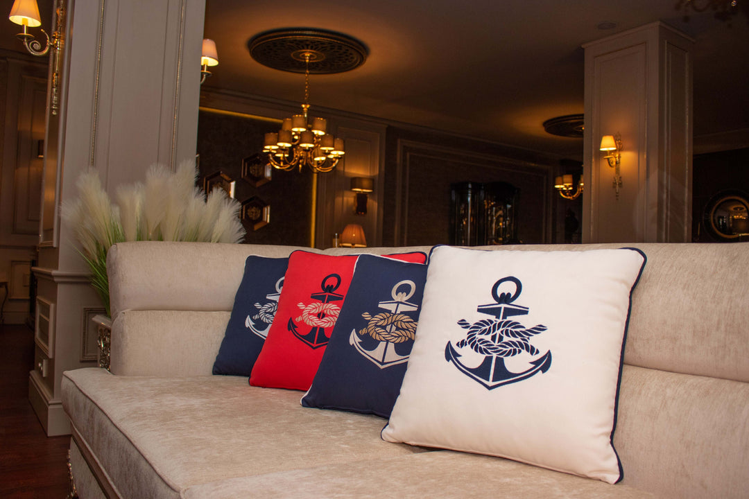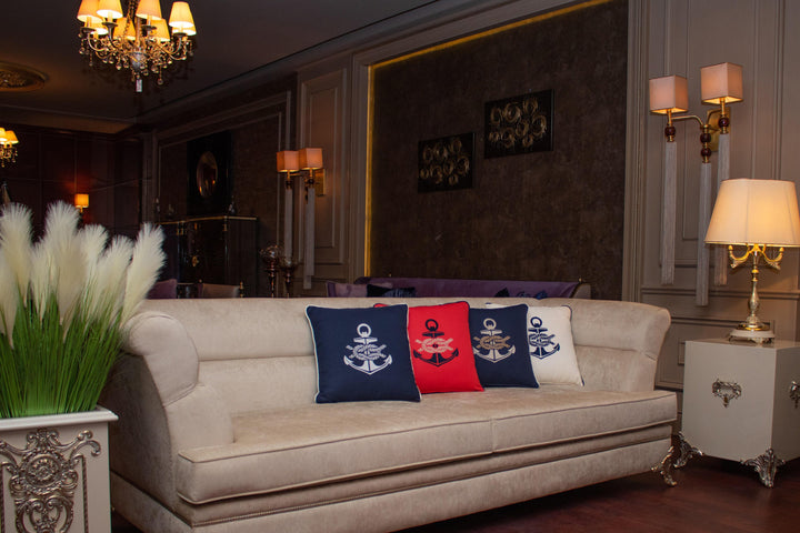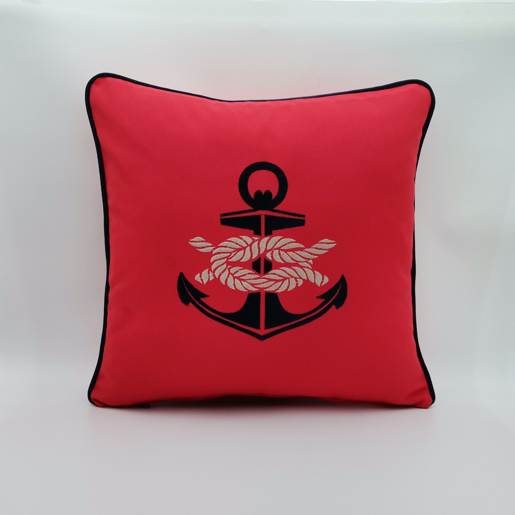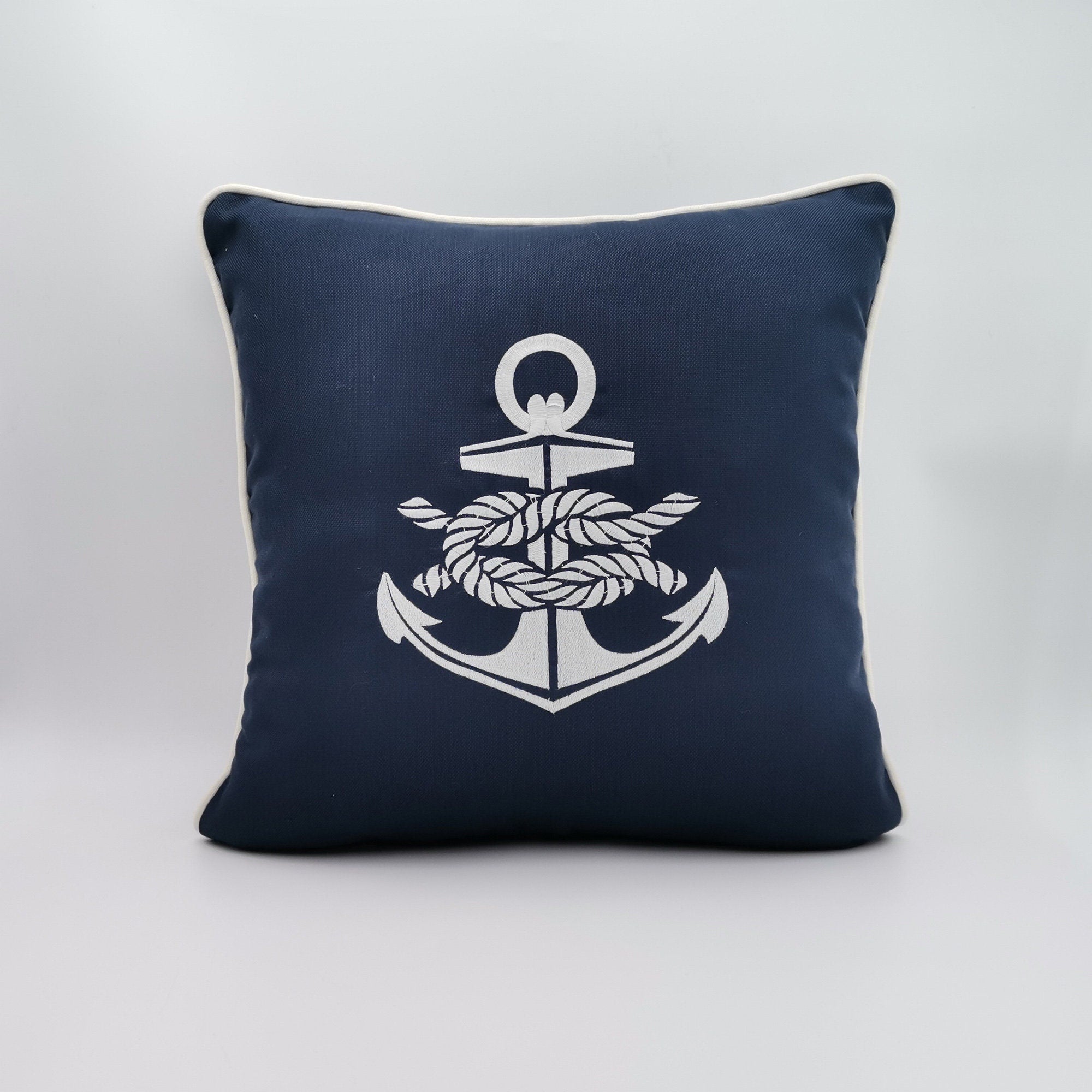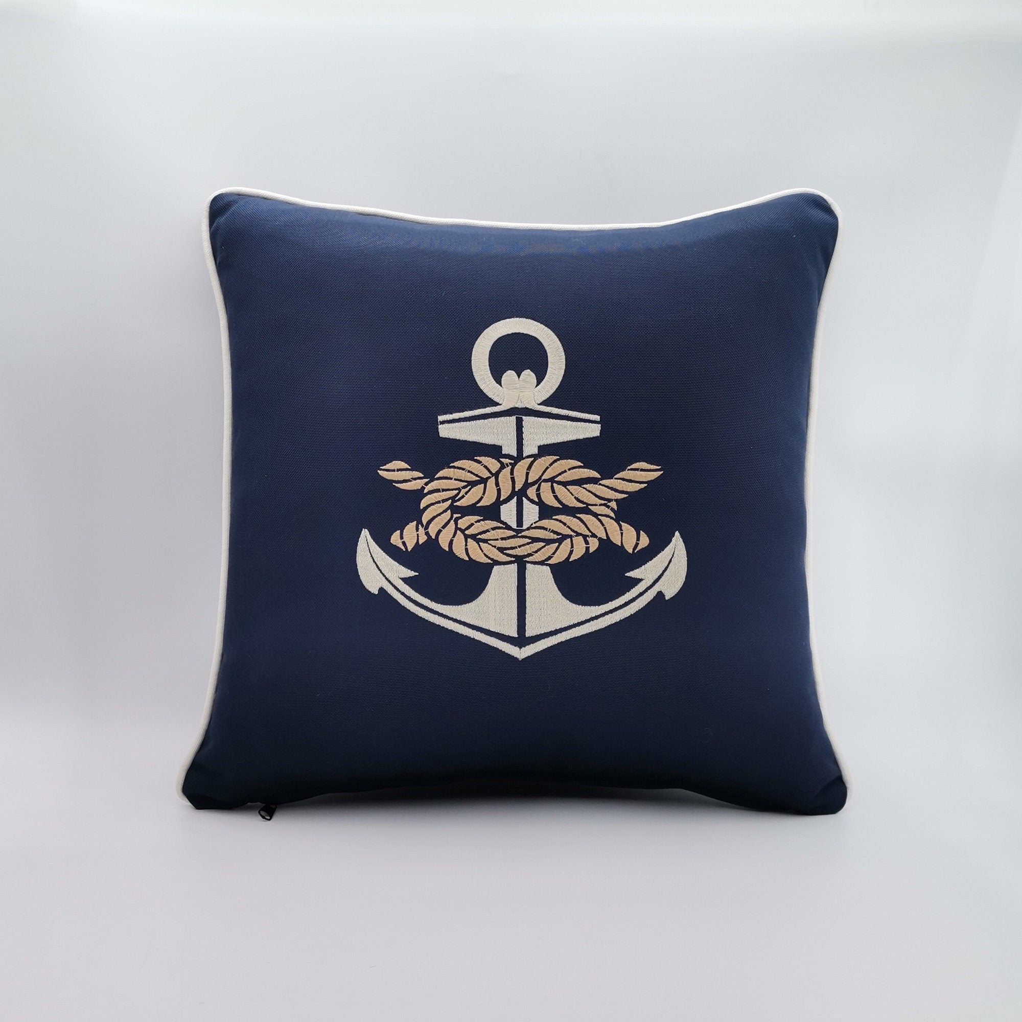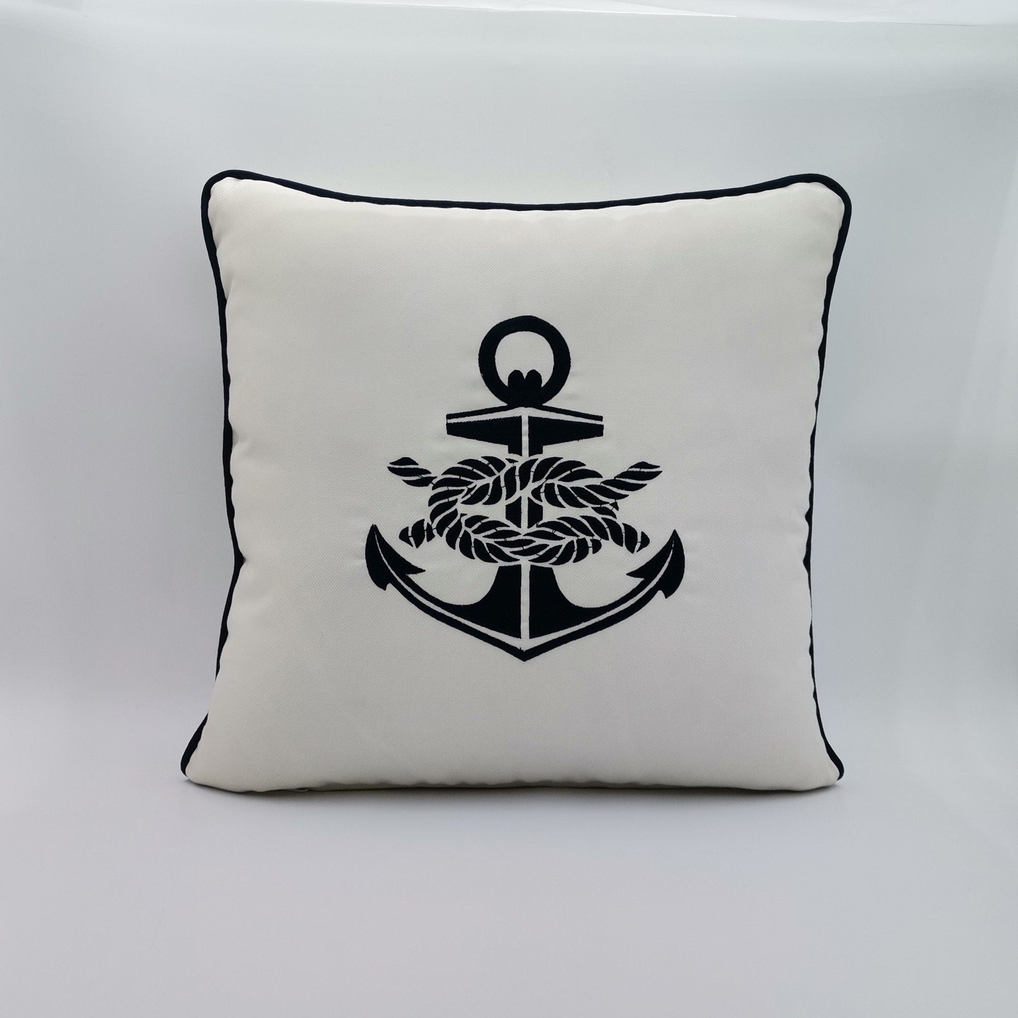 These elegant stylish and high quality embroidered square outdoor/indoor throw pillow covers with special hand sewn anchor;