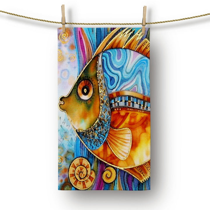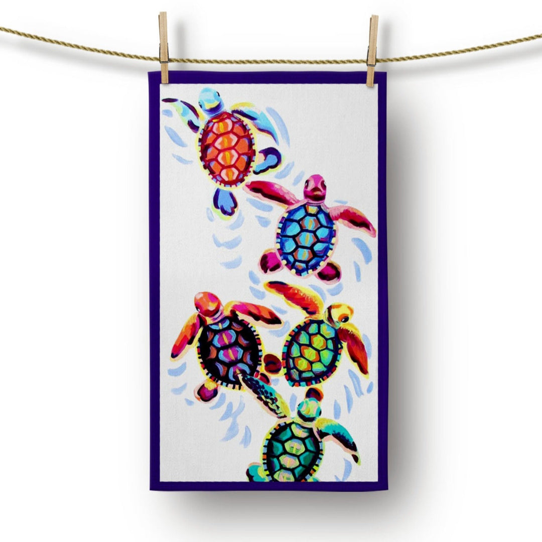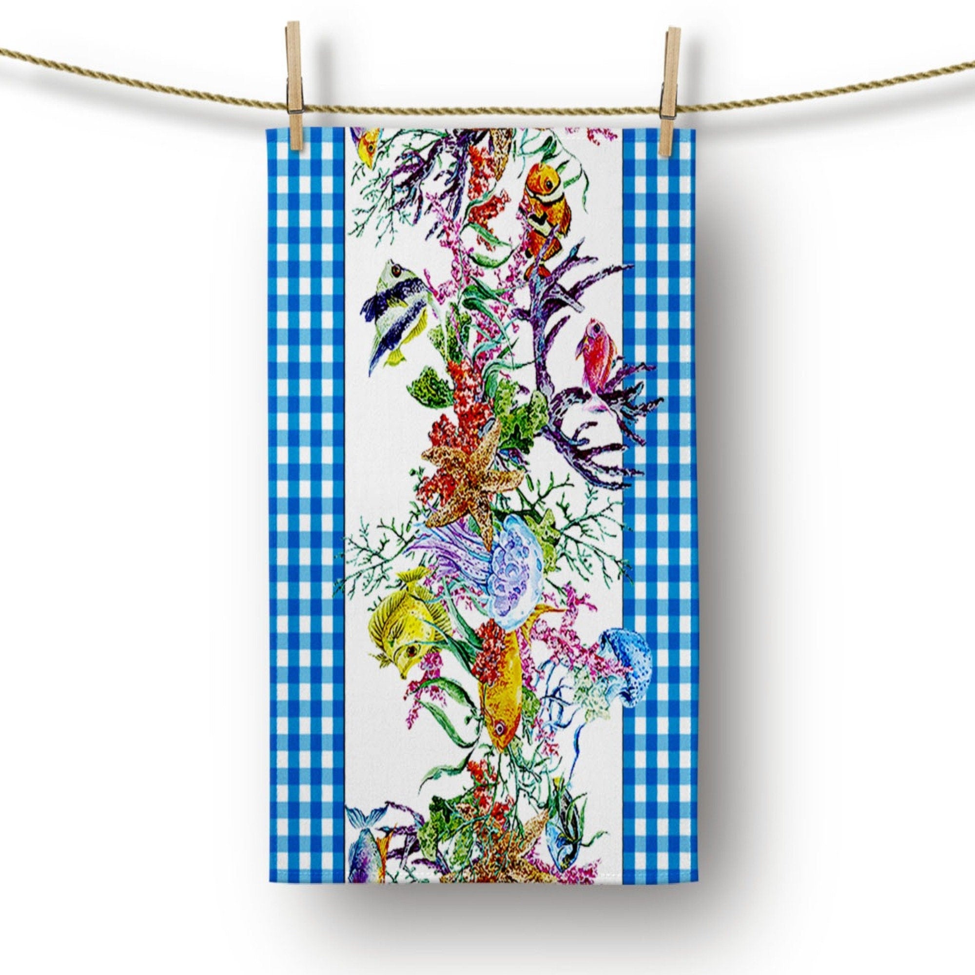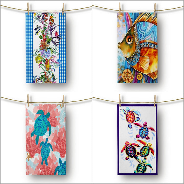These elegant decorative rectangle kitchen/dish/hand/tea towels with colorful fish, jellyfish and sea turtle prints;