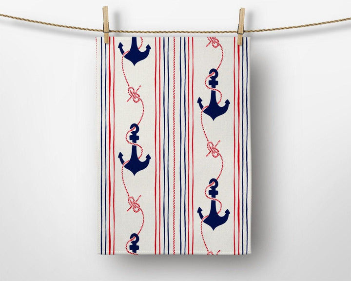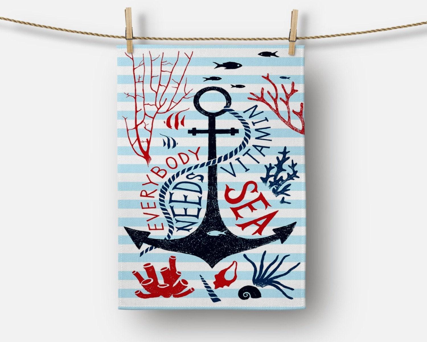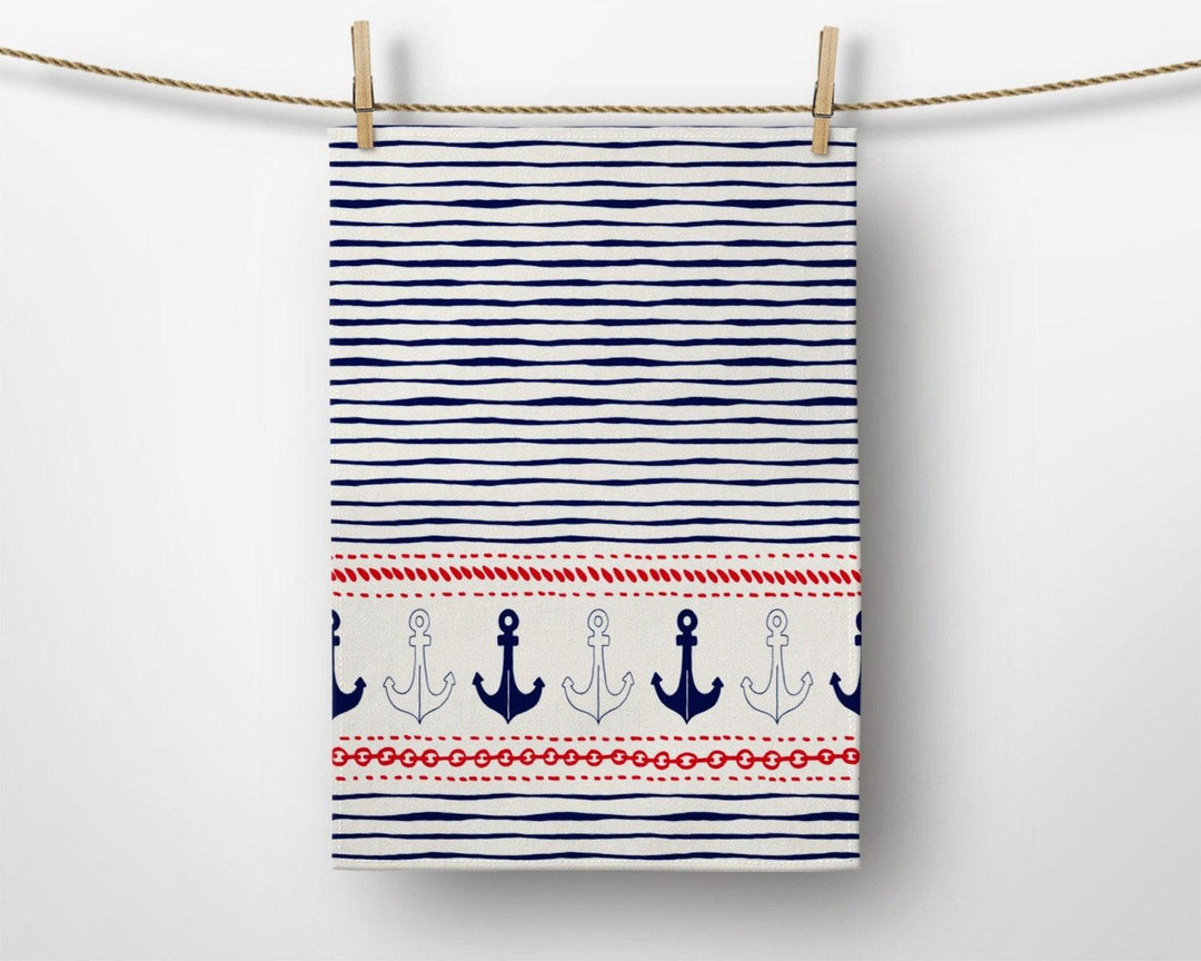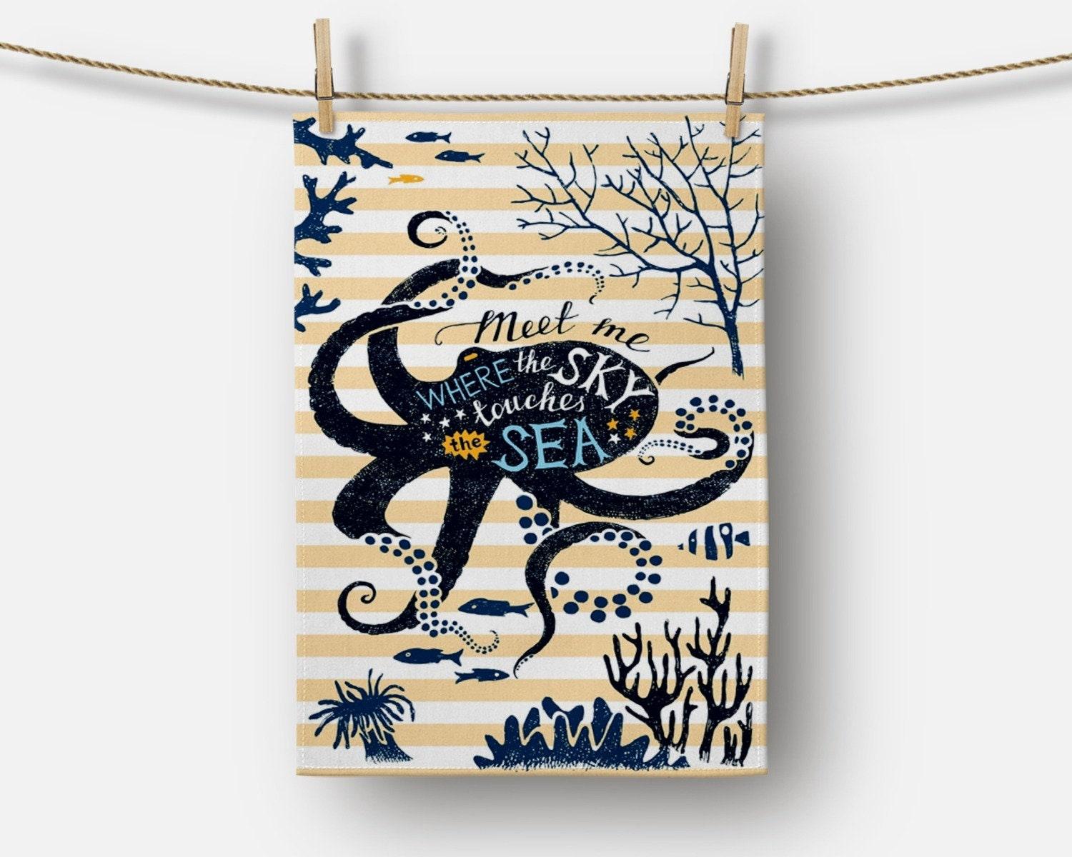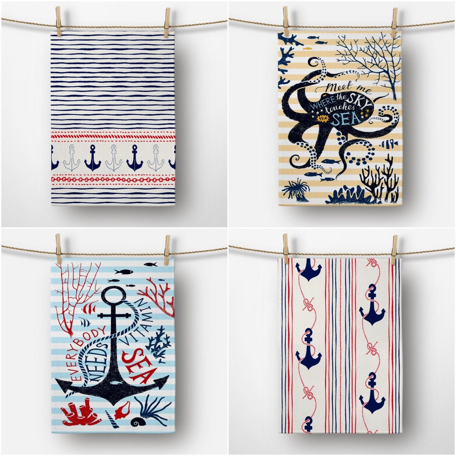 These elegant decorative rectangle kitchen/dish/hand/tea towels with navy anchor and octopus;