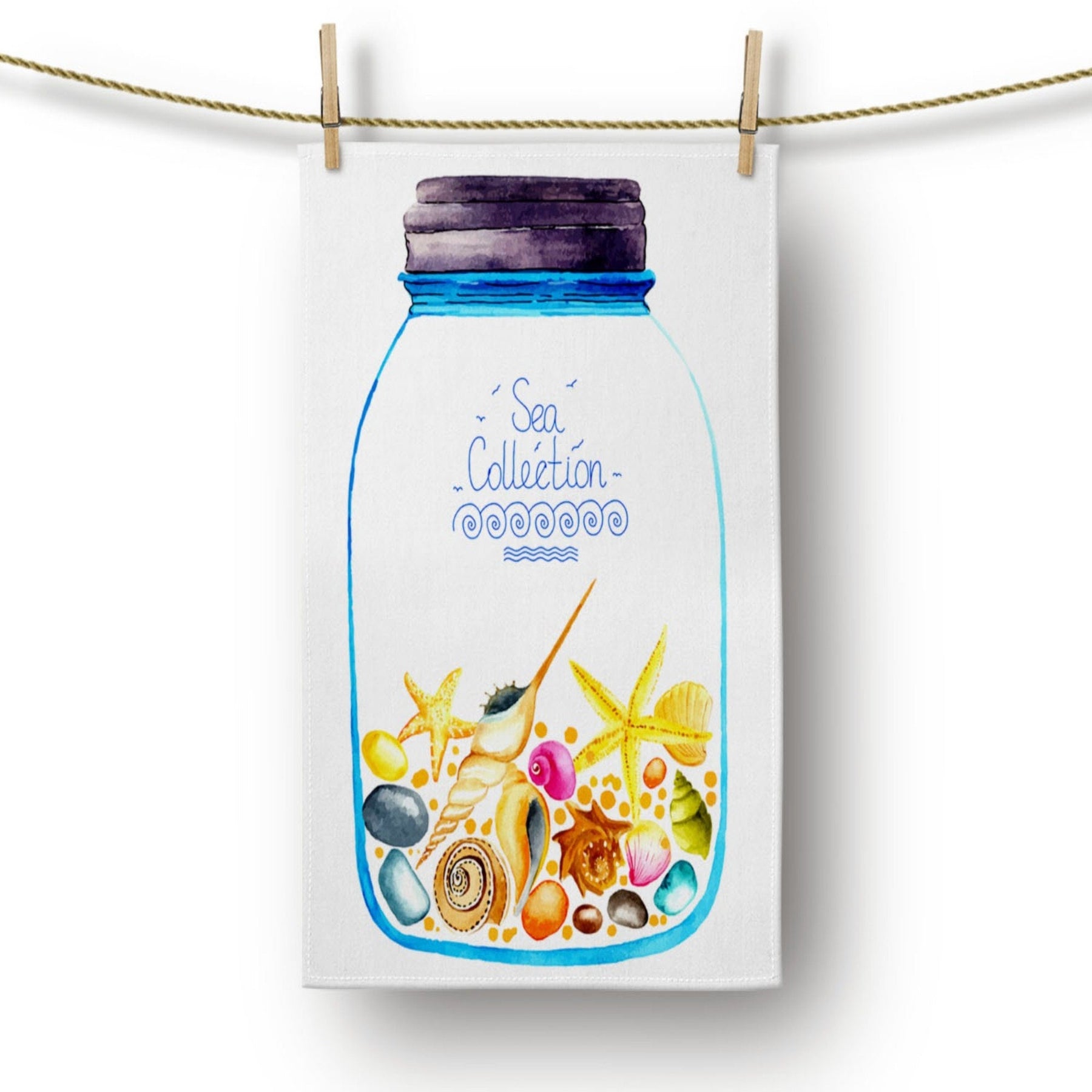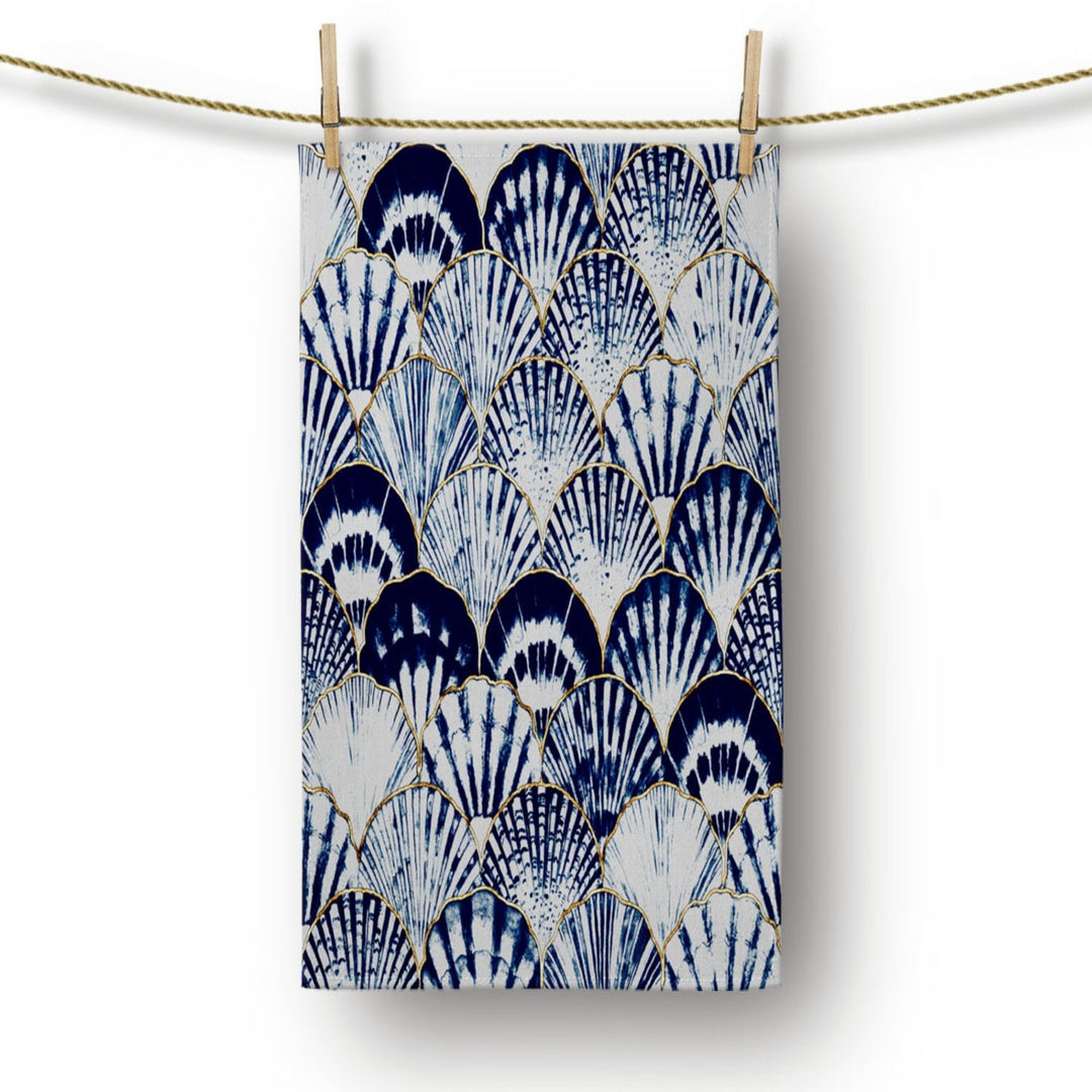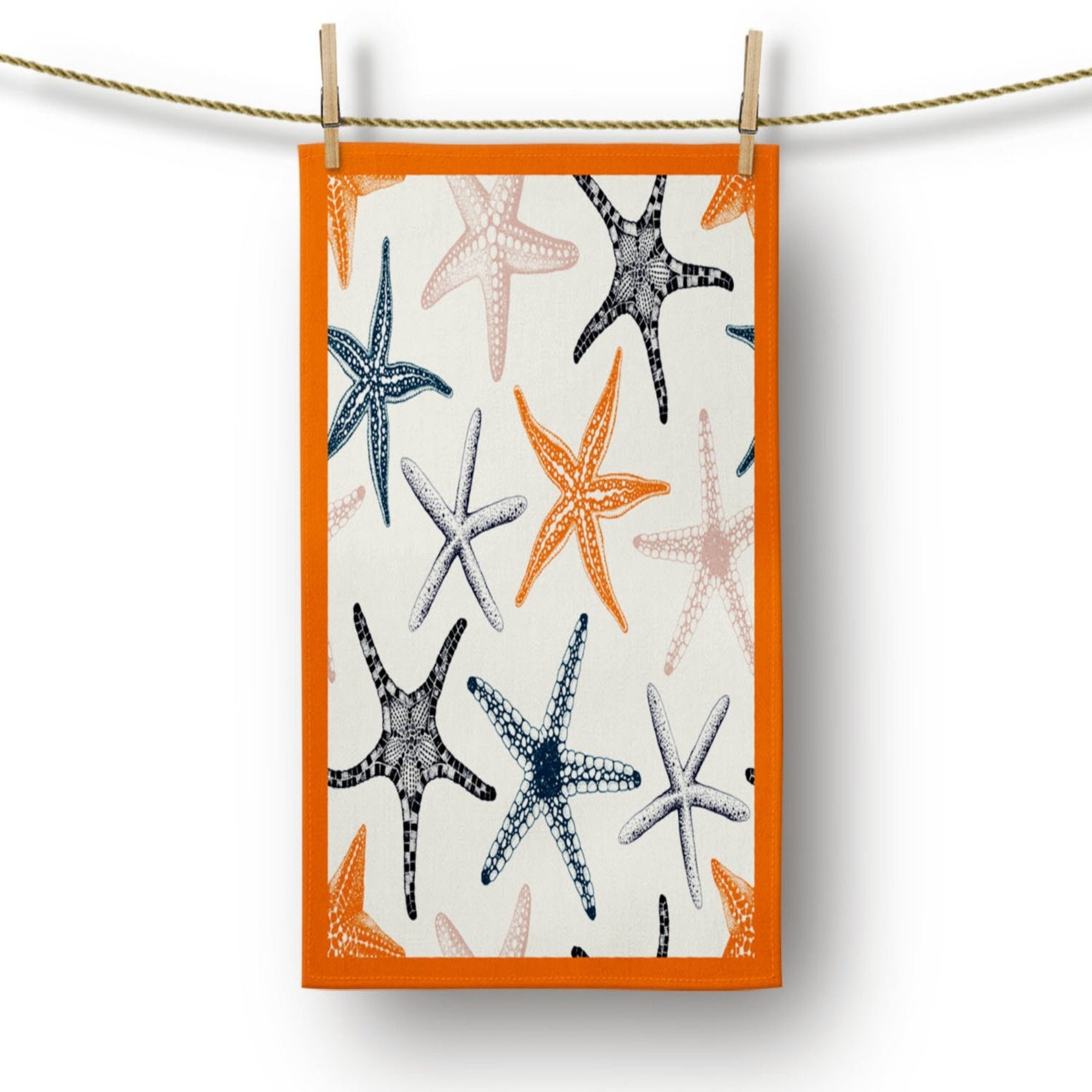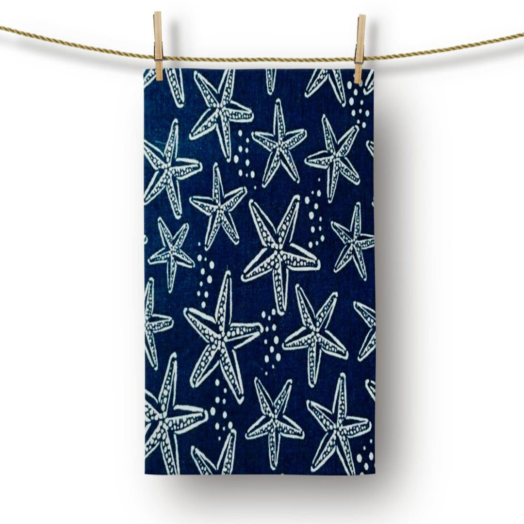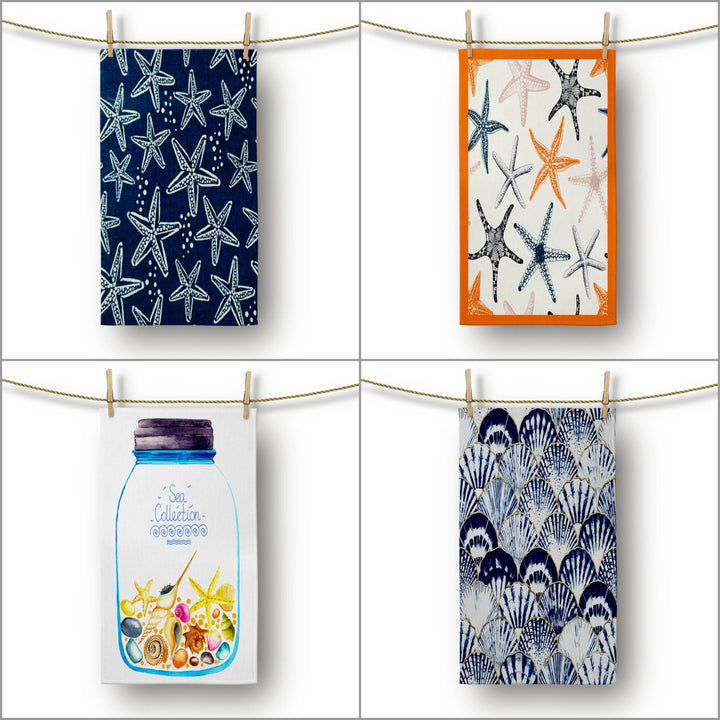 These elegant decorative rectangle kitchen/dish/hand/tea towels with colorful starfish, oyster and sea shell prints;