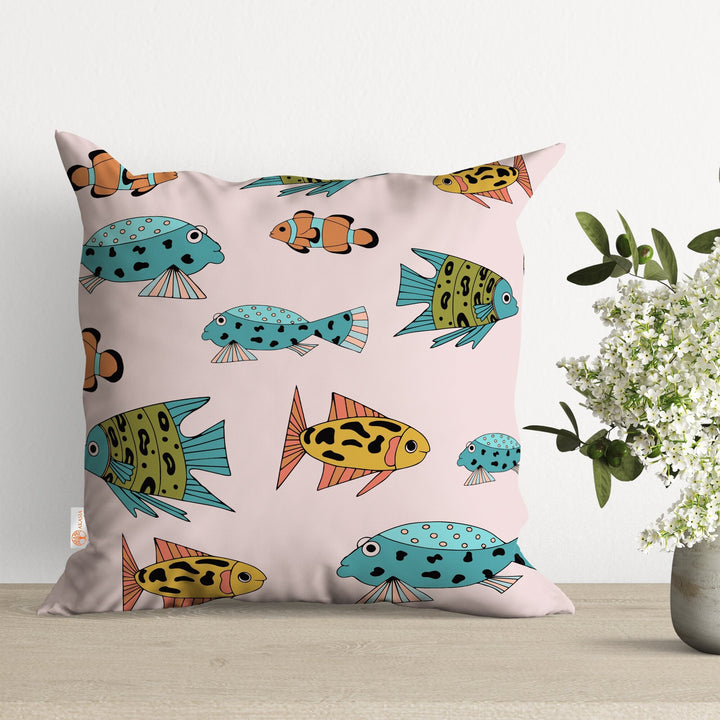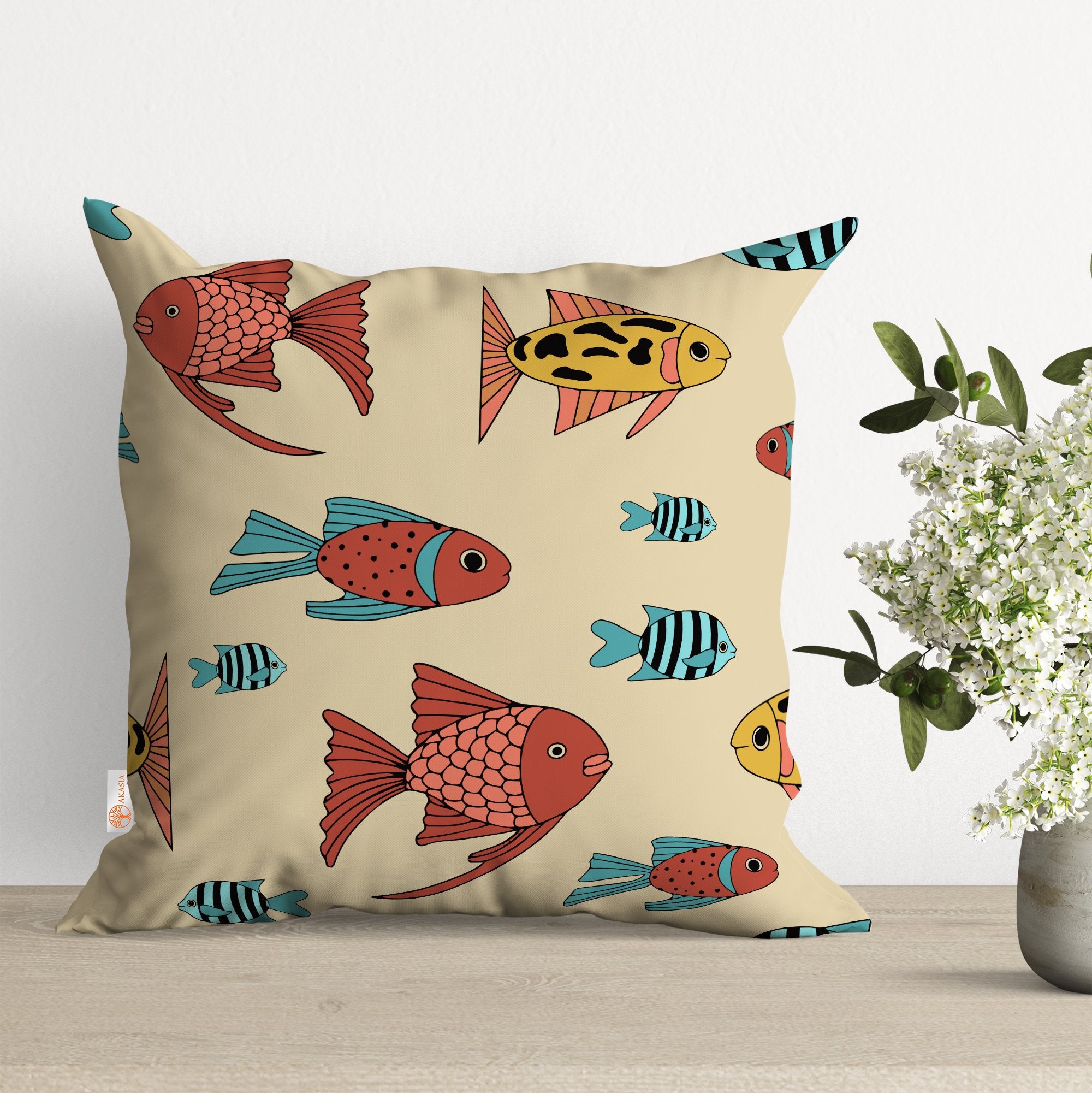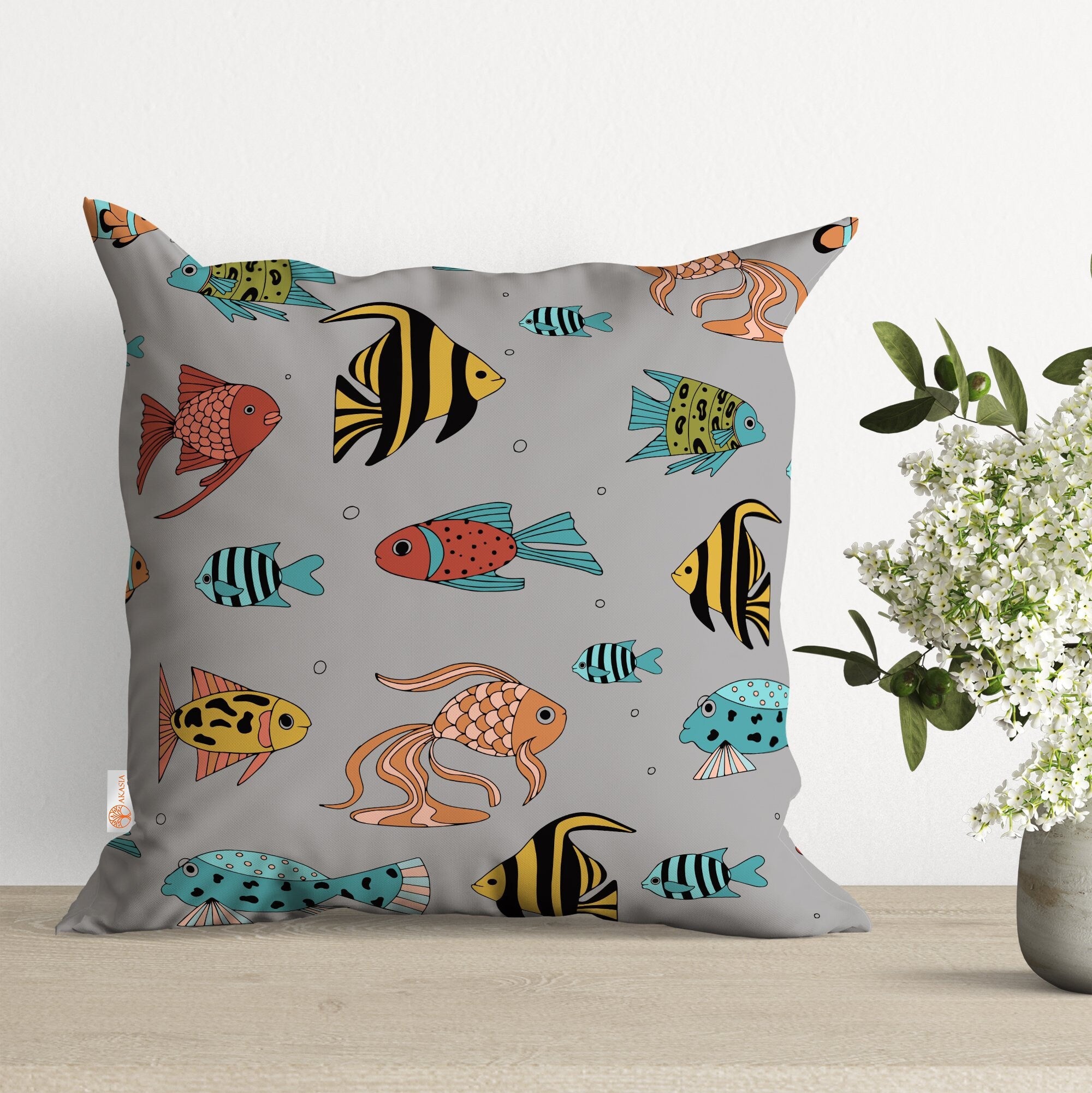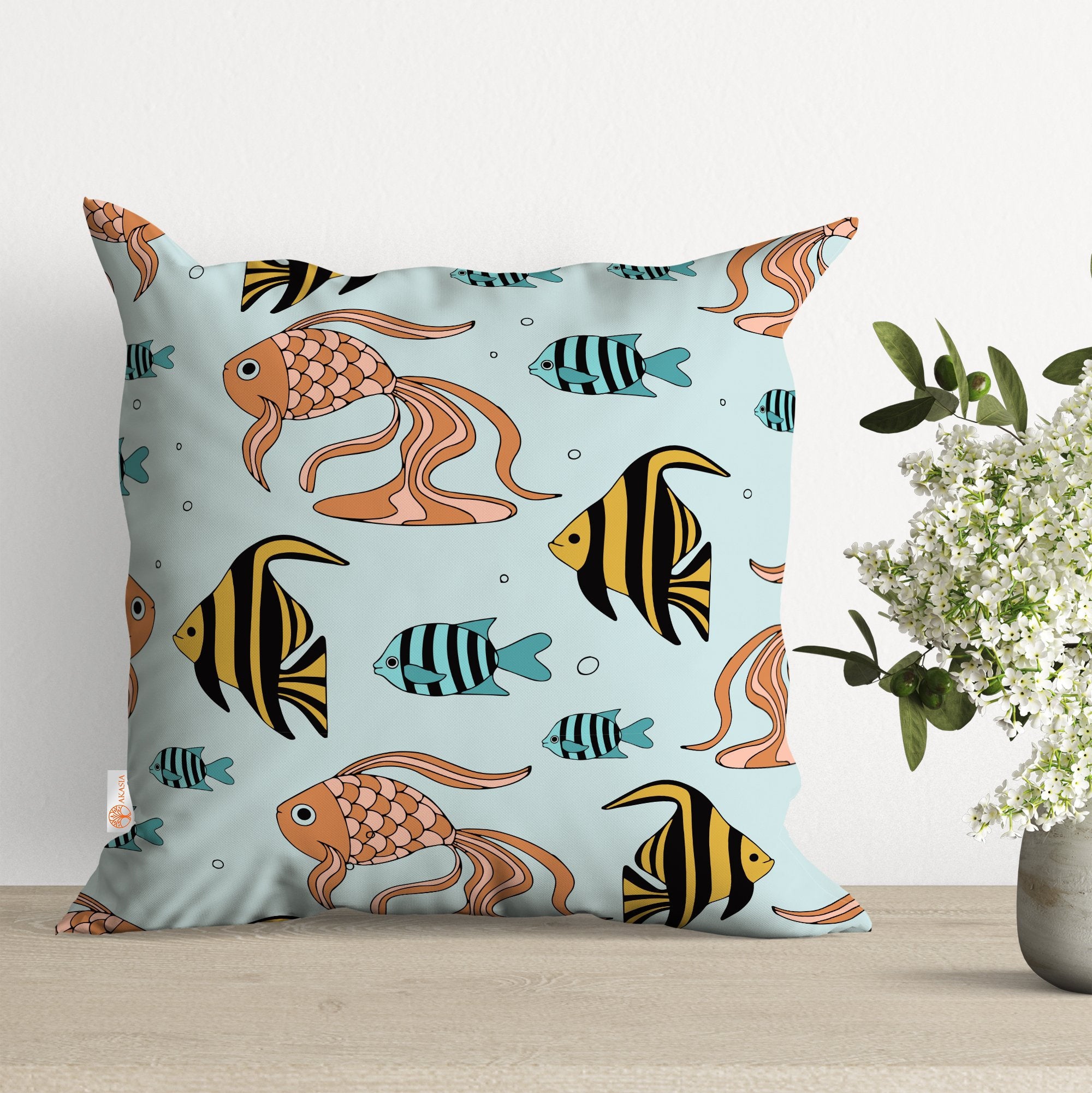 These elegant square decorative farmhouse throw pillow covers with colorful fish print;