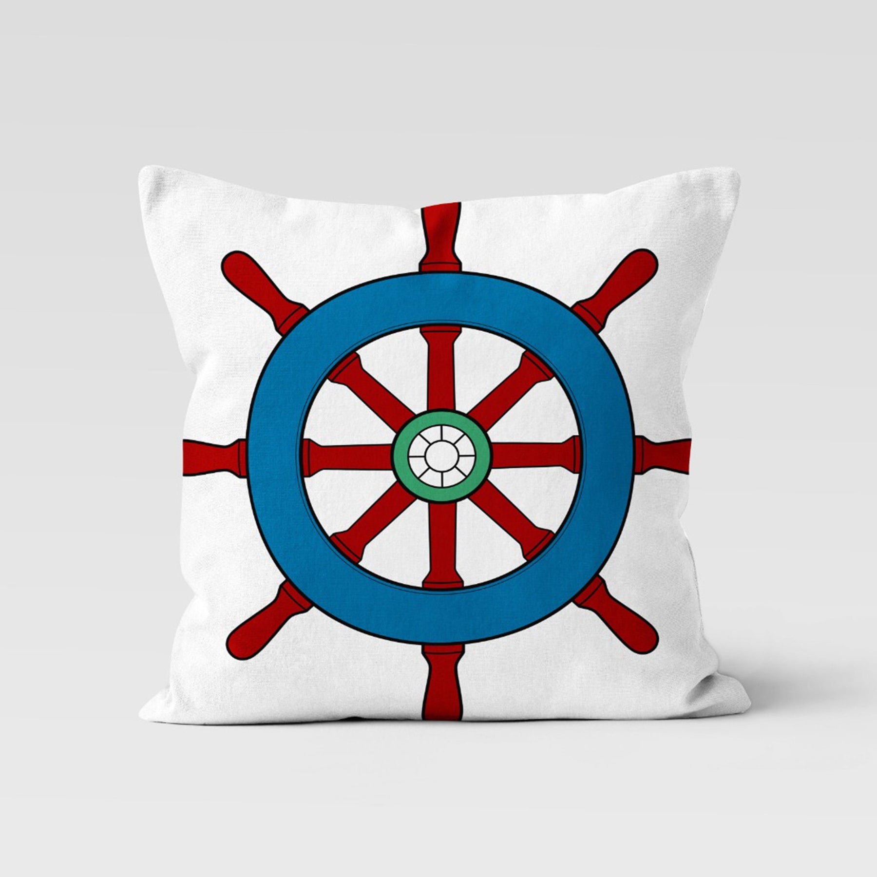These square decorative farmhouse/beach house striped throw pillow covers with wheel prints and matching striped design;