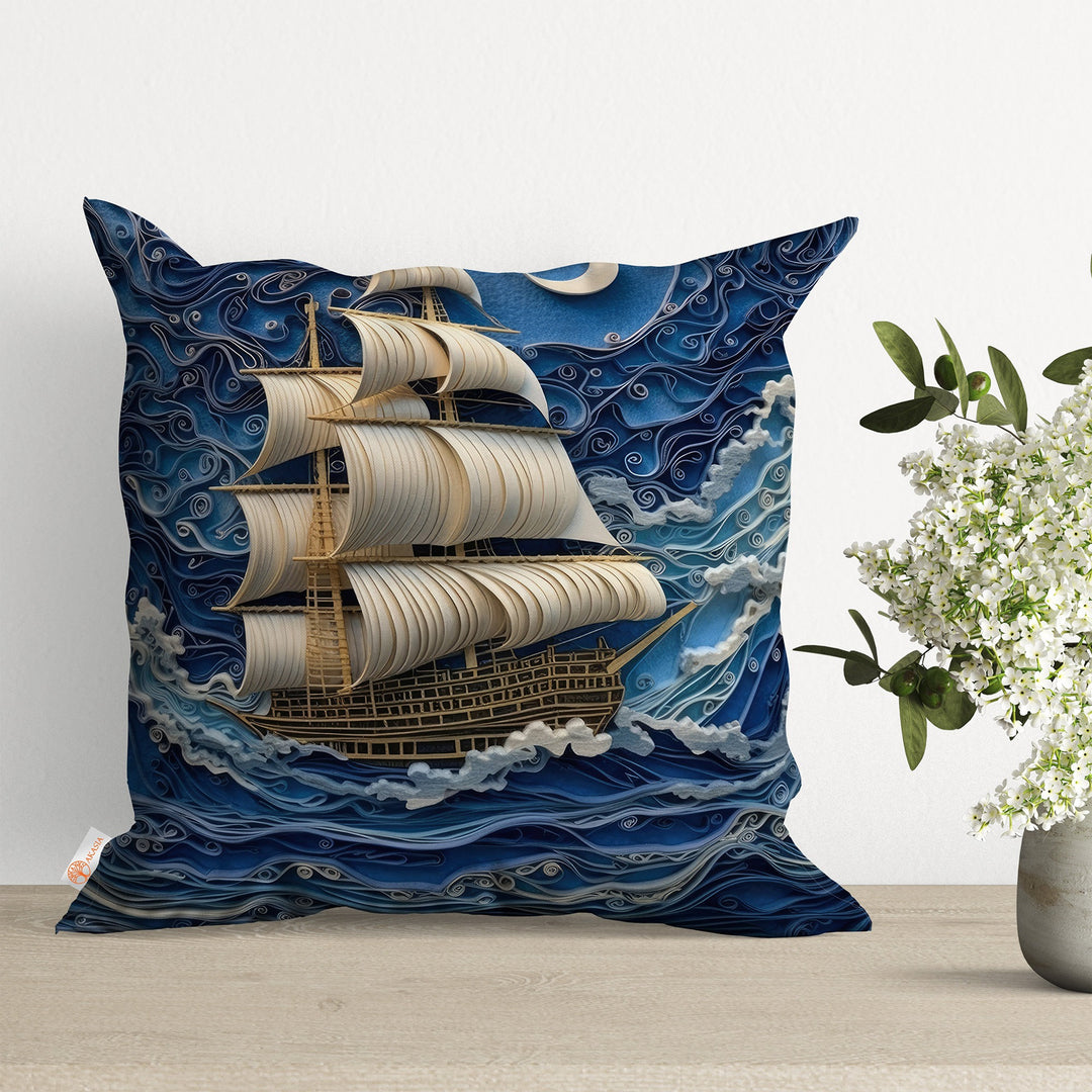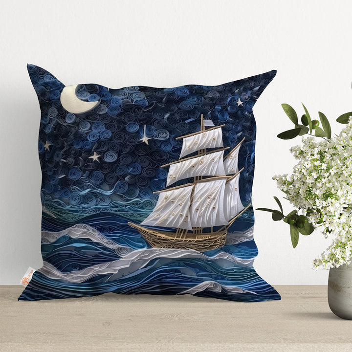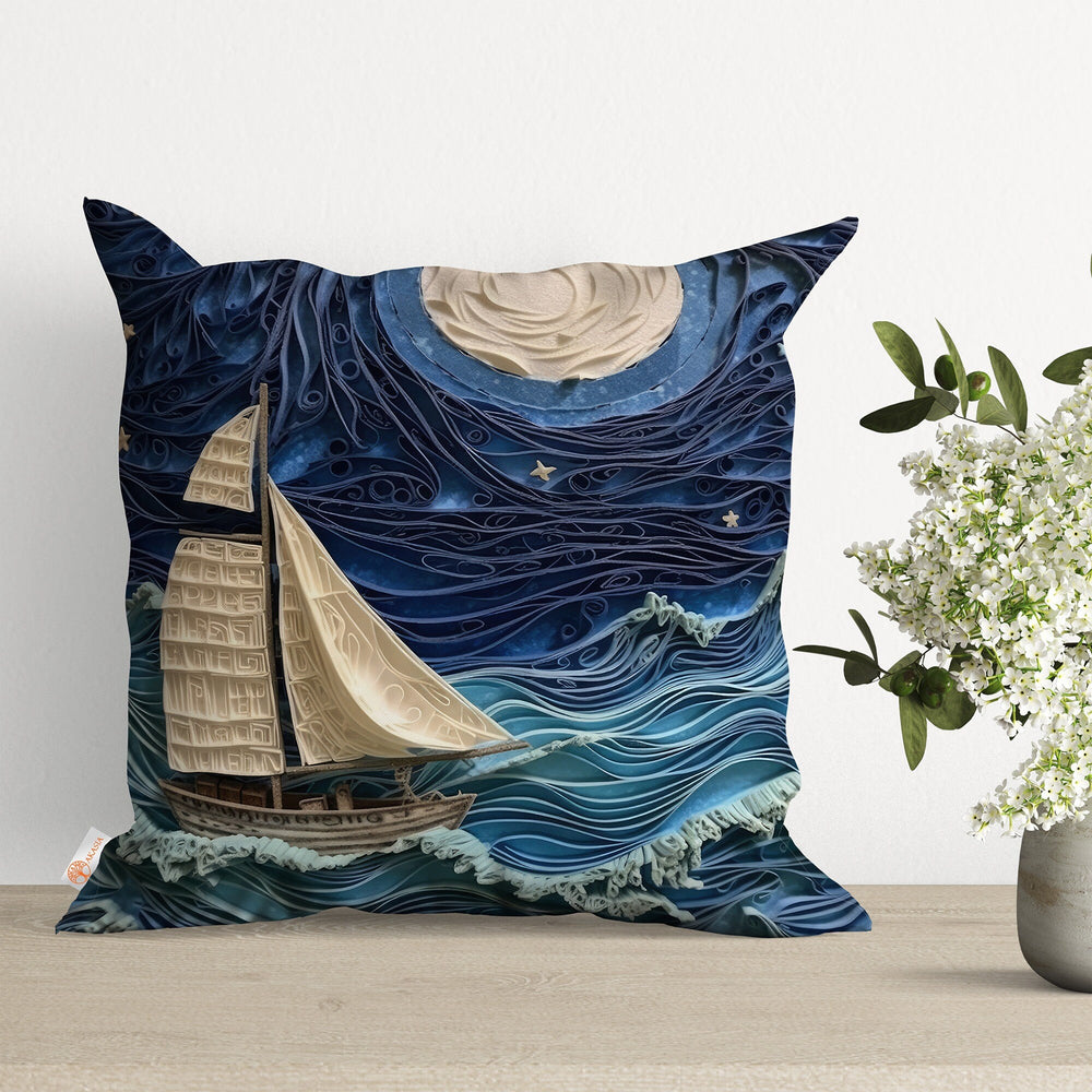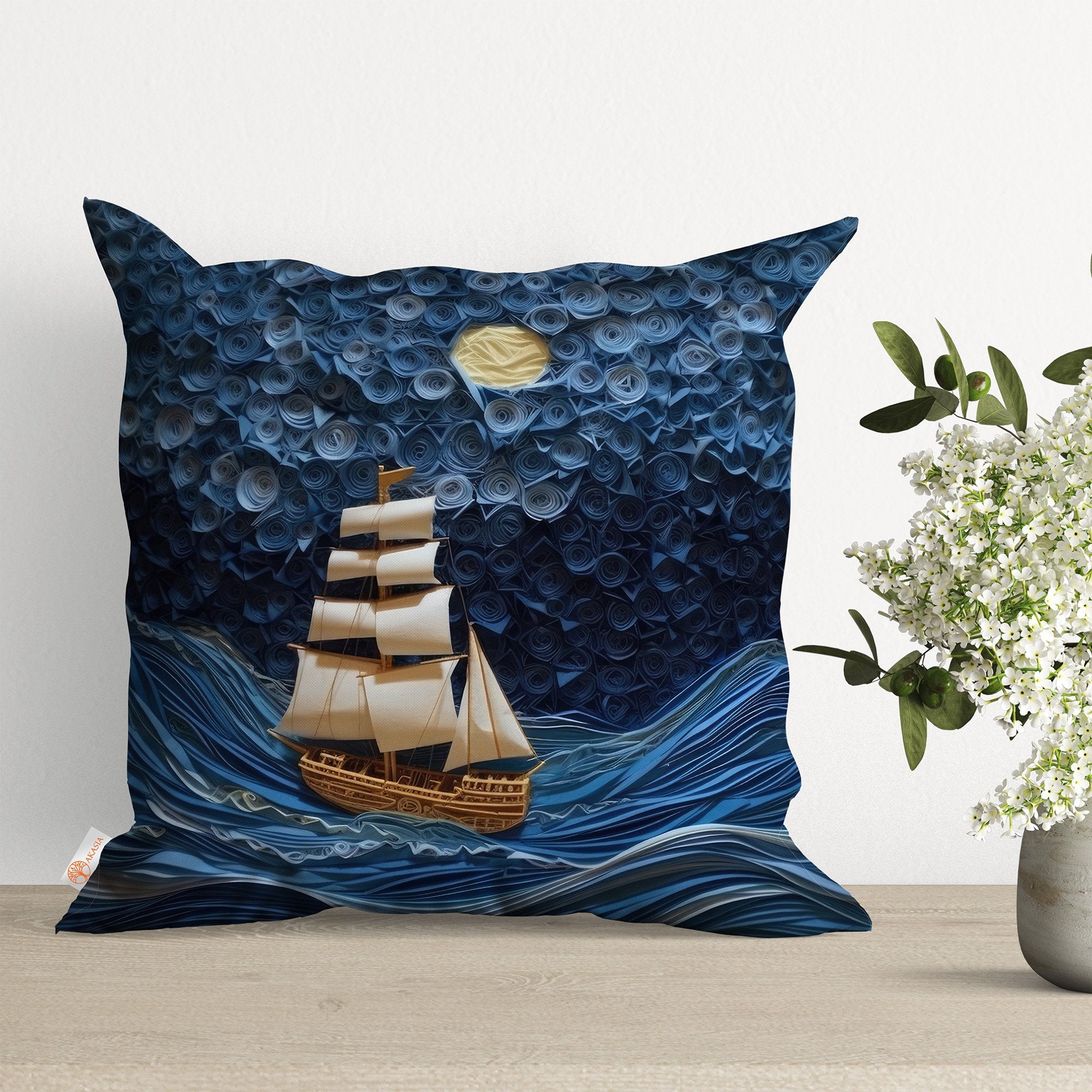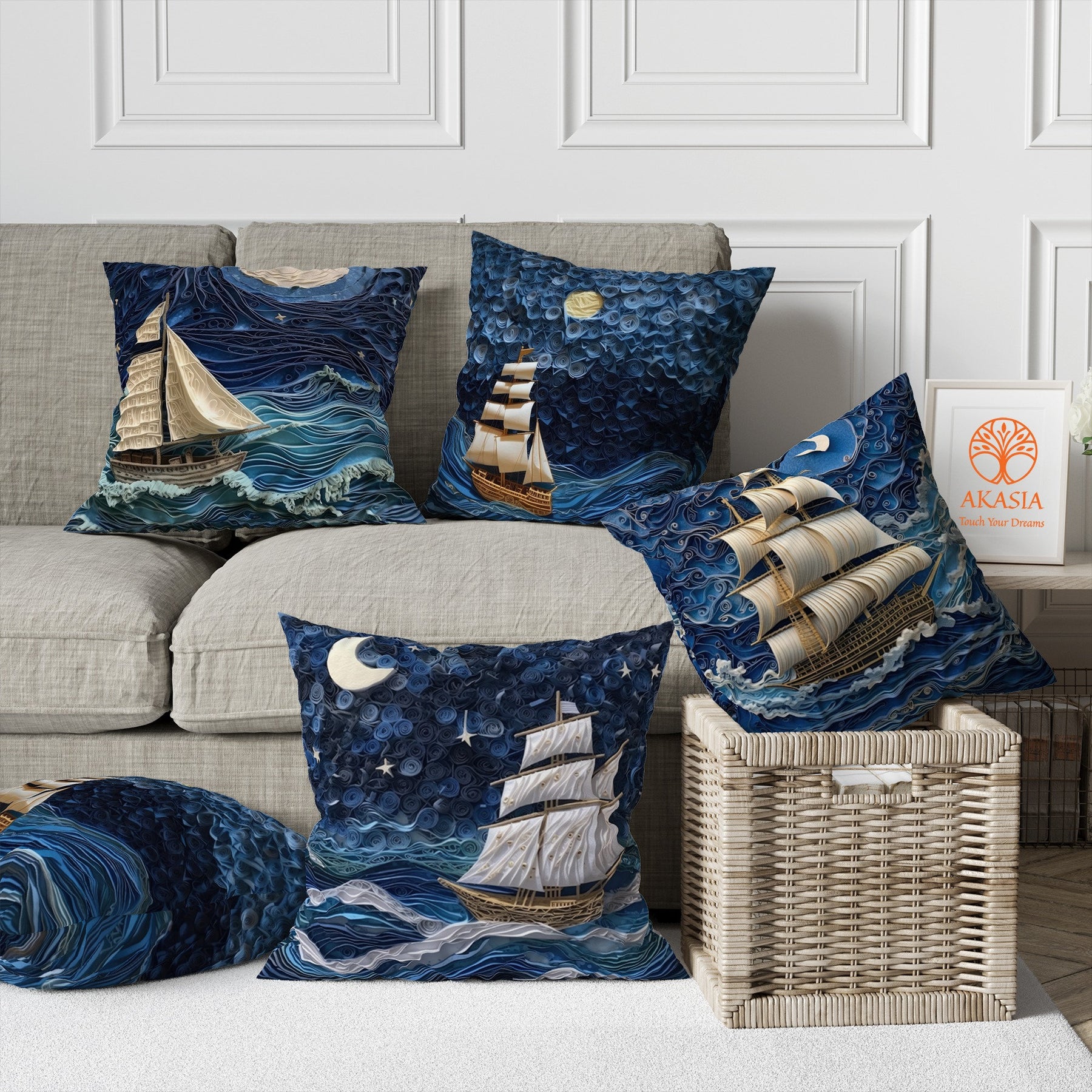 ⚓ These elegant square decorative throw pillow covers with sea, moon, sailing vessel prints;