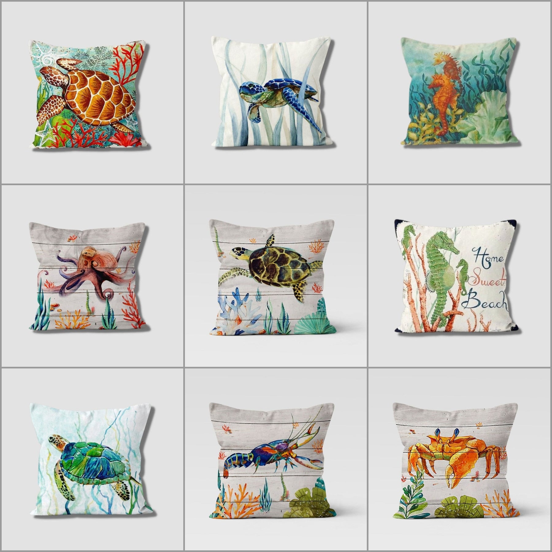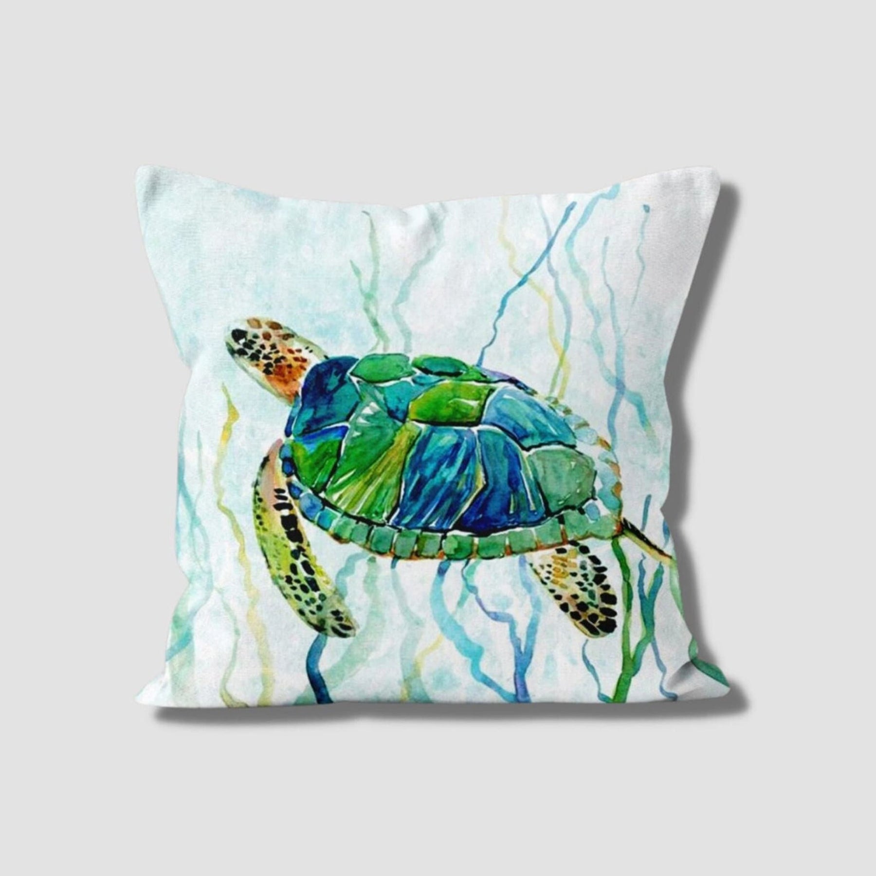 These square decorative beach house throw pillow covers with Sea Turtle print;
