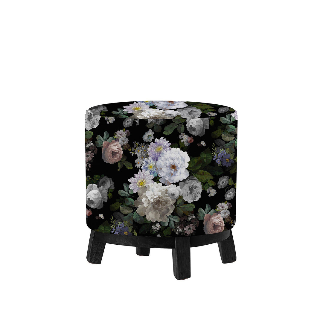 This elegant wooden frame decorative footstool/pouf with floral design with flowers and 4 wooden legs;