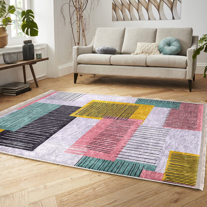 This elegant Machine-Washable floor rug with Abstract/Geometric design;